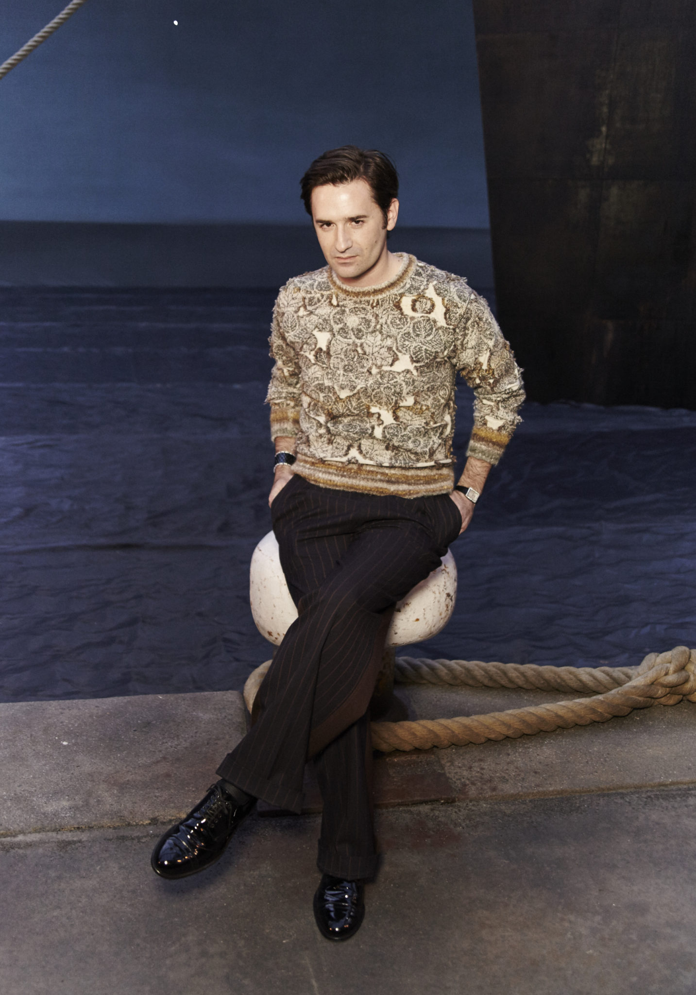 Nicolas Maury, Comédien, portait une manchette « Ultra » en céramique noire et diamants CHANEL Joaillerie et une montre « Boy.Friend » en or blanc 18K et diamants CHANEL Horlogerie.