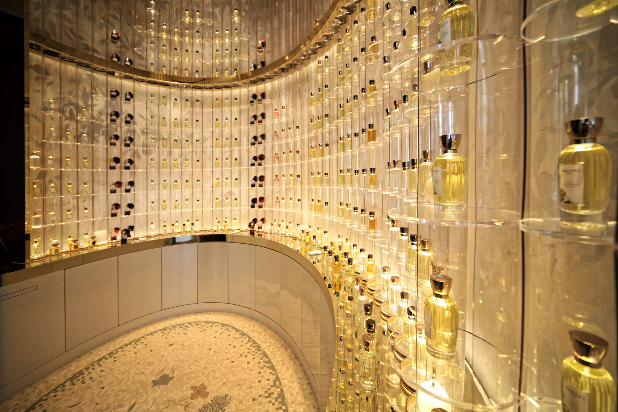 Le visiteur découvre un monde de douceur olfactive, accueillante et mystérieuse, au cœur d’un immeuble classé. dans ce palais des senteurs, des faisceaux lumineux où dansent le feuillage, une futaie qui s’élance vers le ciel, les reflets dans l’eau content les histoires des forêts : c’est cette multitude d’évocations oniriques qui a insufflé aux architectes le concept de cette création.
