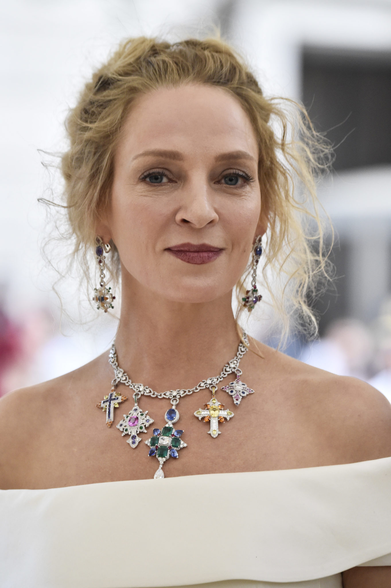 NEW YORK, NY – MAY 07: Uma Thurman attends the Heavenly Bodies: Fashion & The Catholic Imagination Costume Institute Gala at The Metropolitan Museum of Art on May 7, 2018 in New York City. (Photo by Frazer Harrison/FilmMagic)
