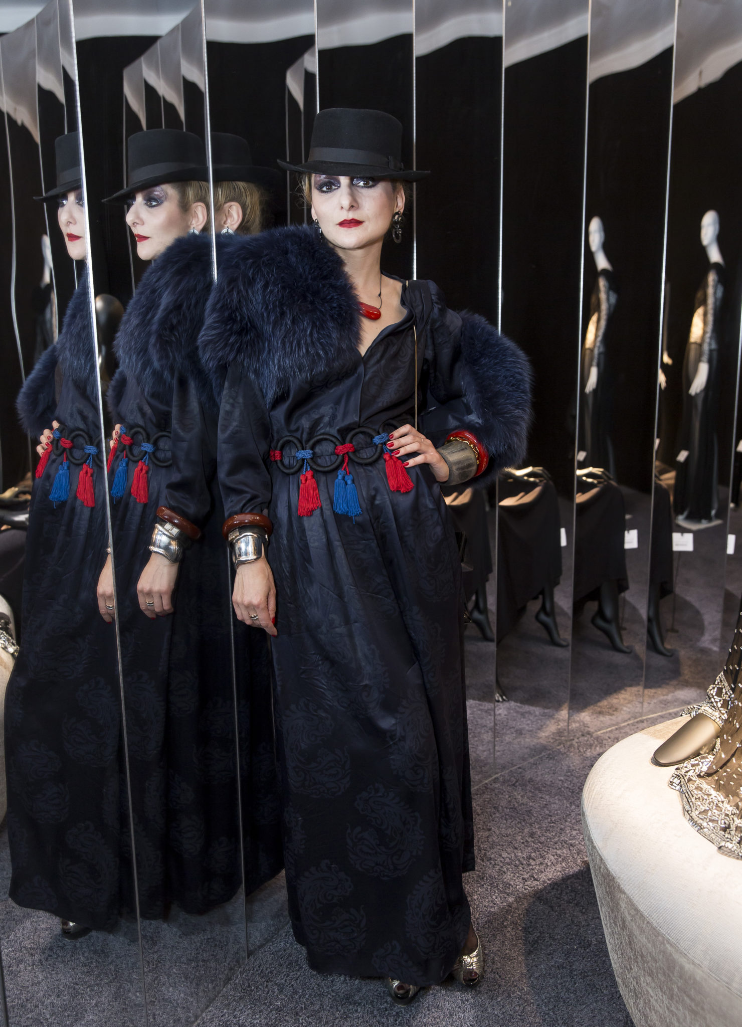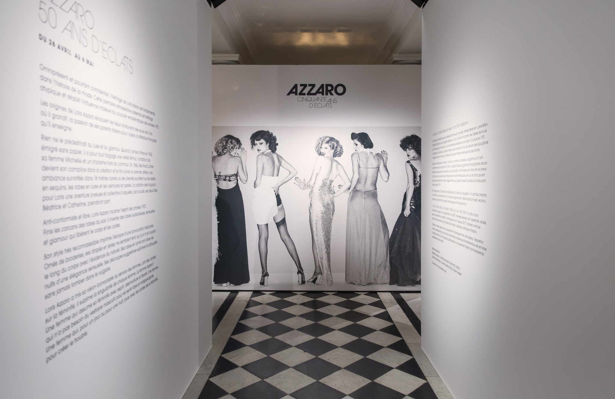 Mercredi 25 avril 2018, a eu lieu l’inauguration de la rétrospective Azzaro « 50 ans d’éclats » au Hall des Maréchaux – Musée des Arts Décoratifs, à Paris.
