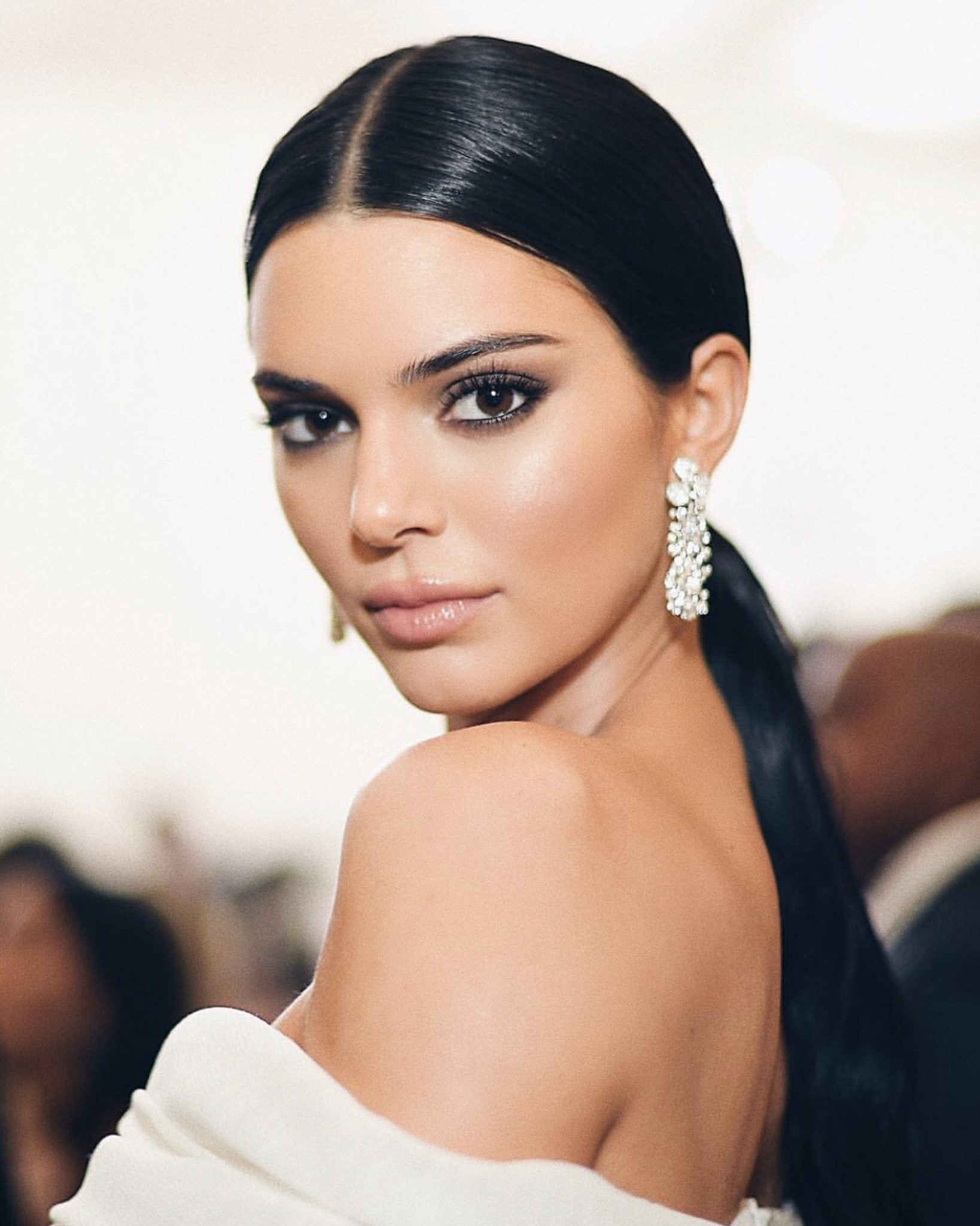 Model Kendall Jenner accented her Off-White gown with diamond earrings from the all-new Tiffany Paper Flowers™ Collection and Tiffany T rings.