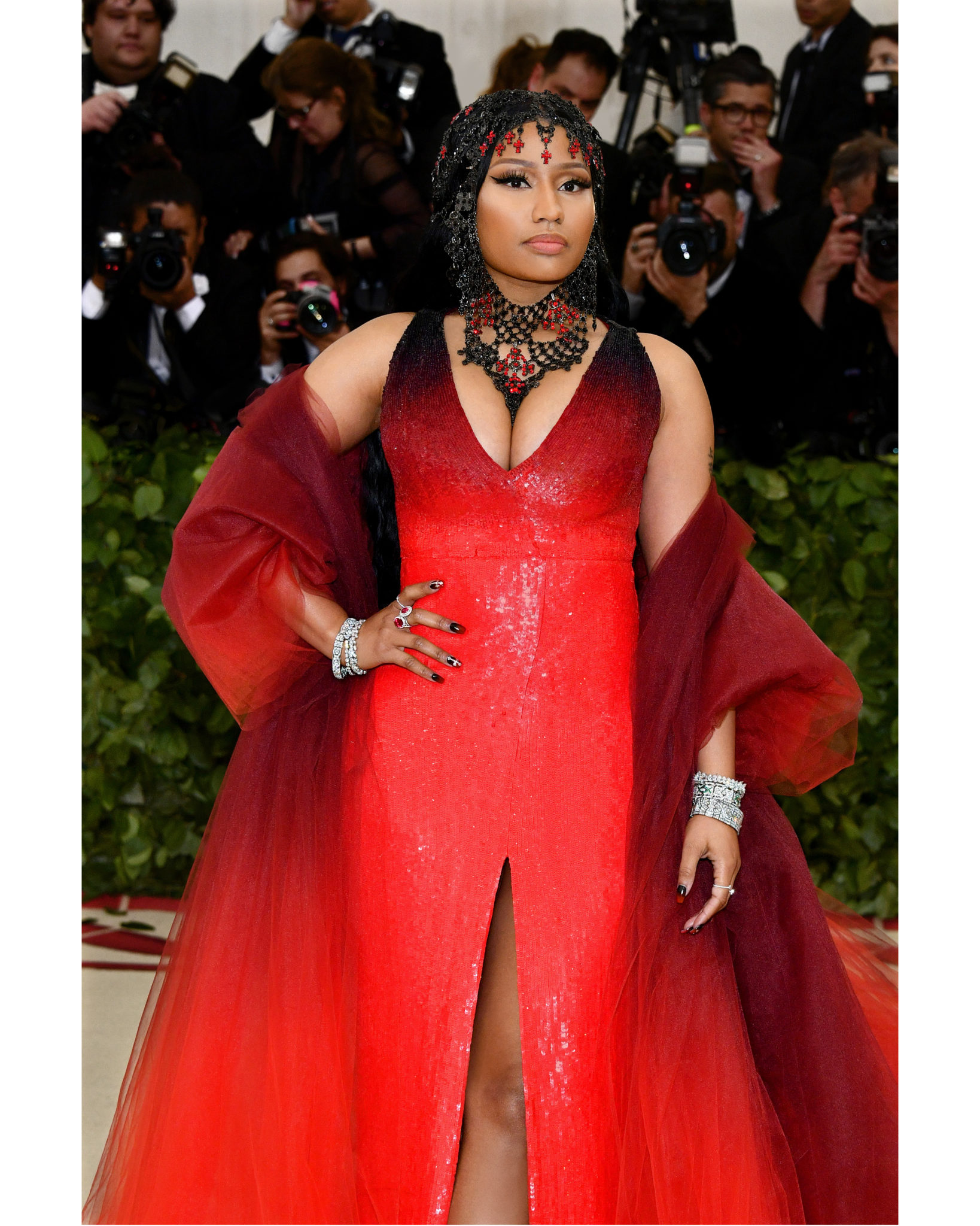 Singer Nicki Minaj accented her Oscar de la Renta dress with nearly $1million of Tiffany diamond bracelets and rings.