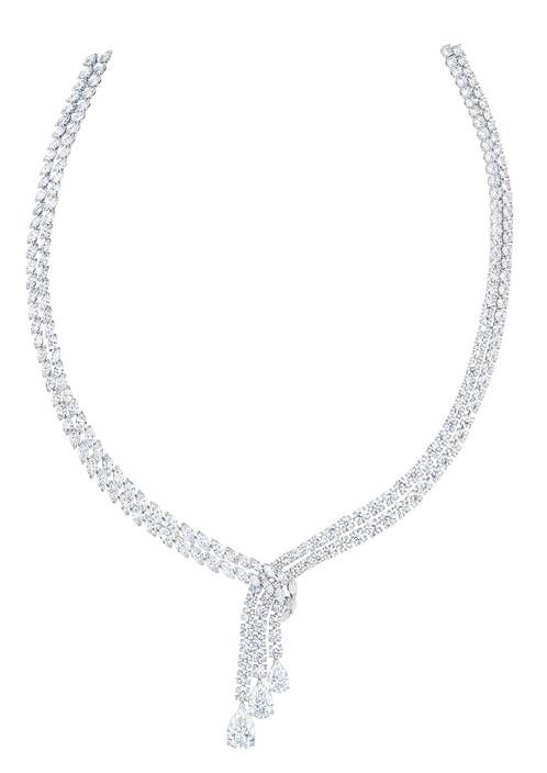 Collier London by De Beers Thames Path – or blanc, diamants blancs, diamant central : 5.06 carats, poids total : 63.76 carats.