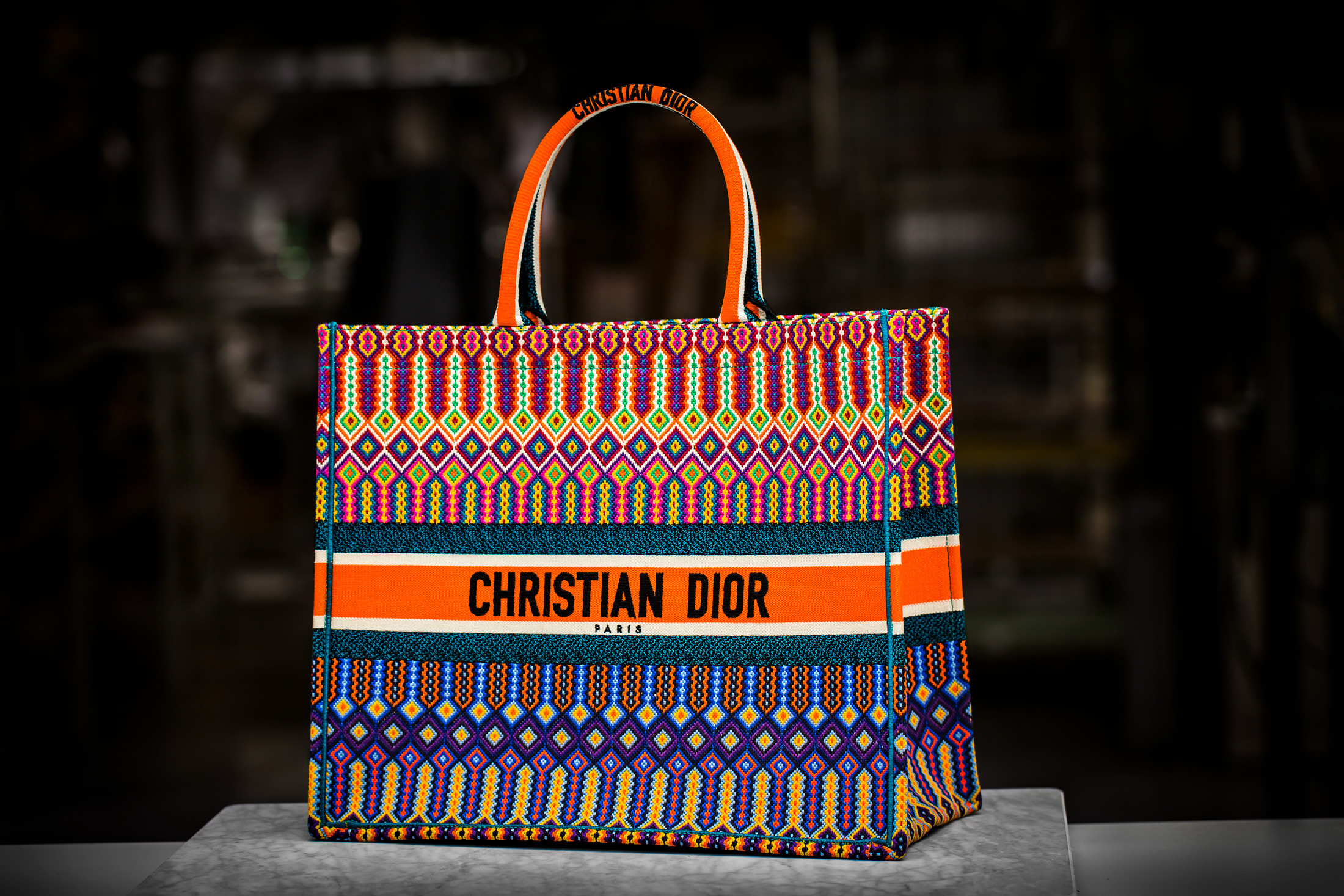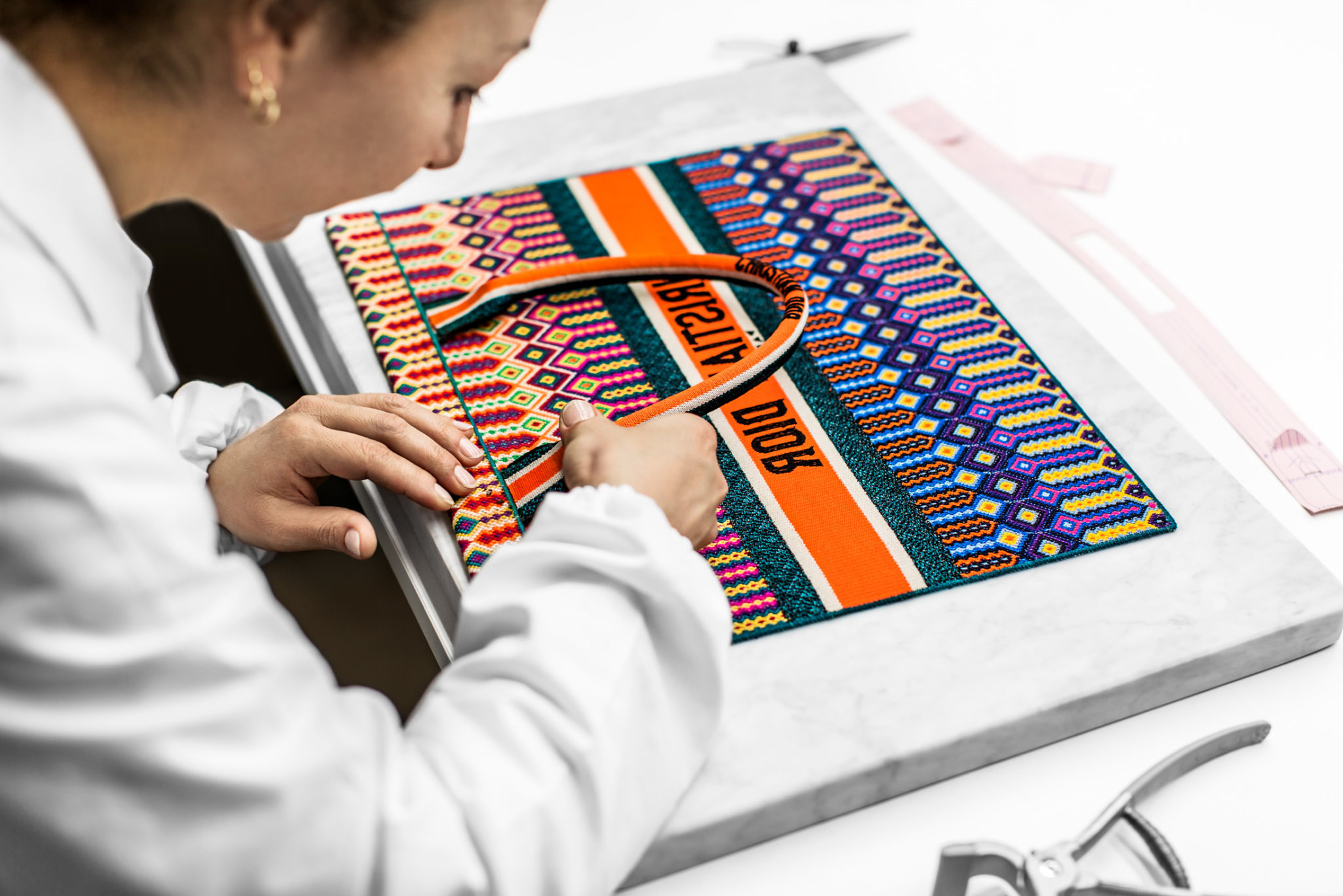 PRÉSENTÉ LORS DU DÉFILÉ DE PRÊT-À-PORTER PRINTEMPS-ÉTÉ 2018, CE MODÈLE DE SACDIOR BOOK TOTEPORTÉ À BOUT DE BRAS PAR L’UNE DES MANNEQUINS INSUFFLE UNE ALLURE DÉCONTRACTÉE ET ESTIVALE.SES COULEURS CHATOYANTES ET SES MOTIFS GRAPHIQUES SONT INSPIRÉS DE L’ARTISANAT MEXICAIN. AU TOTAL, PLUS DE QUINZE NUANCES DE VERT, ORANGE, ROUGE, FUCHSIA, VIOLET ET BLEU S’ENTRECHOQUENT ET SE MÉLANGENT POUR FORMER UN DESSIN HYPNOTIQUE UNIQUE.IMAGINÉ ET DESSINÉ DANS LE STUDIO DE CRÉATION DE LA MAISON, À PARIS, CE SAC ENTIÈREMENT BRODÉ A ÉTÉ RÉALISÉ DANS UN ATELIER FAMILIAL SITUÉ DANS LA RÉGION DE L’OMBRIE, AUSSI APPELÉE «LE CŒUR VERT DE L’ITALIE».À LUI SEUL, IL A EXIGÉ PLUS DE TRENTE-DEUX HEURES DE TRAVAIL ET PLUS D’UN MILLION DEUX CENT MILLE POINTS DE COUTURE. AUTRE SUBTILITÉ, CE MODÈLE A DEMANDÉ TROIS POINTS DE BRODERIE DIFFÉRENTS