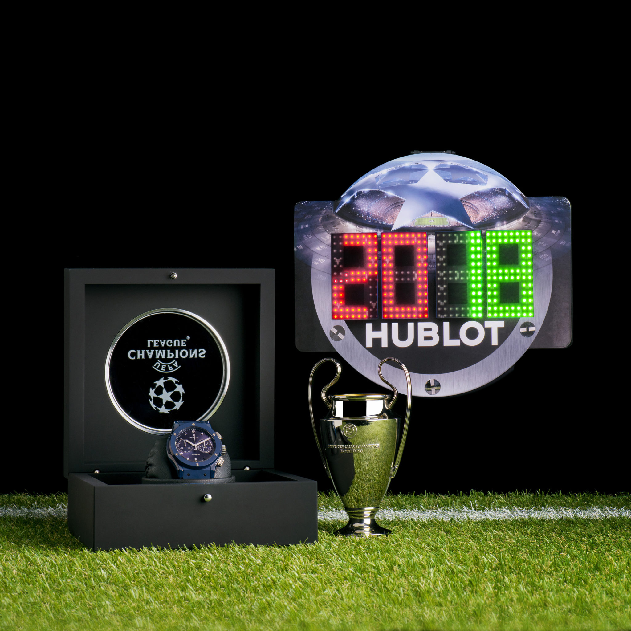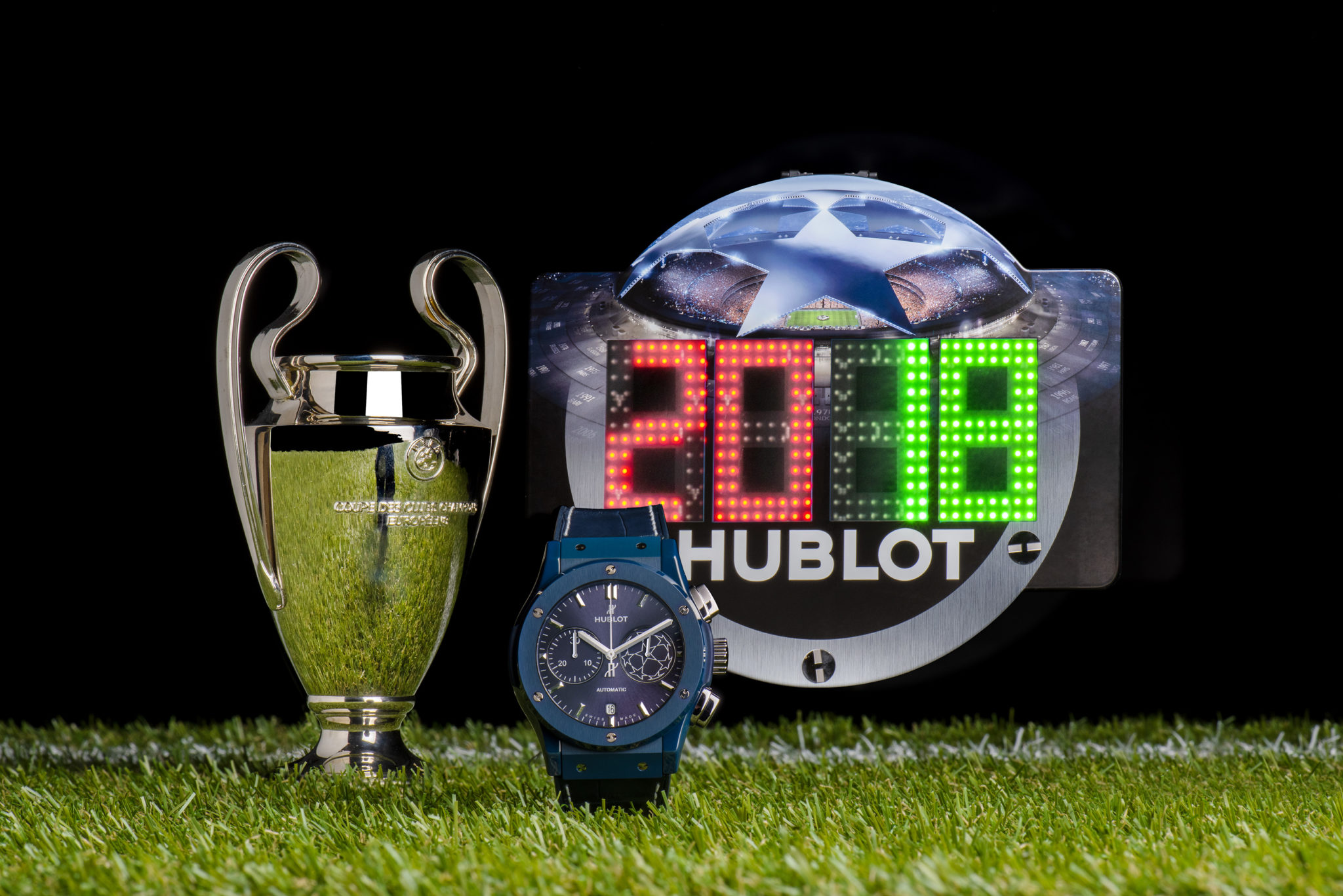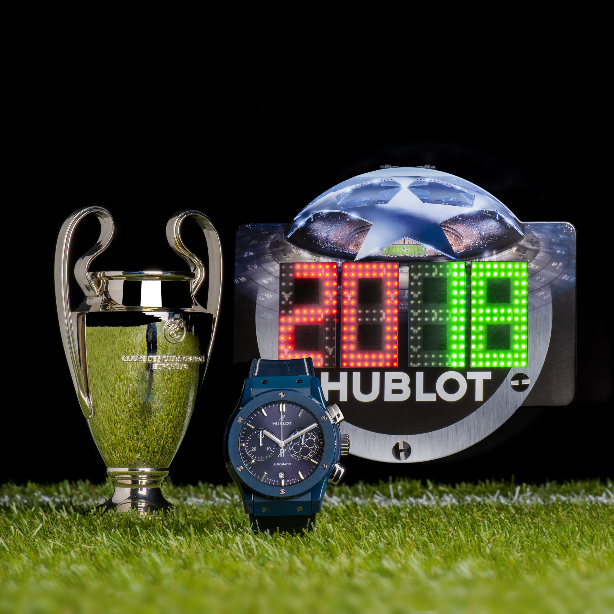 La maison horlogère officielle de l’UEFA Champions League™, Hublot est l’horloger star de la planète football. Pour sa 3ème année de partenariat avec l’UEFA Champions League™, le temps Hublot revêt le total look bleu. En attendant de savoir qui va lever le trophée le 26 mai prochain à Kiev en Ukraine, Ricardo Guadalupe, CEO de Hublot et le Roi Pelé dévoilent la nouvelle « montre accréditée officielle » de l’UEFA Champions League™. La légende internationale du football à l’aura planétaire porte à son poignet le symbole du plus grand tournoi européen des clubs de foot. Car la passion du foot n’a pas de frontières !