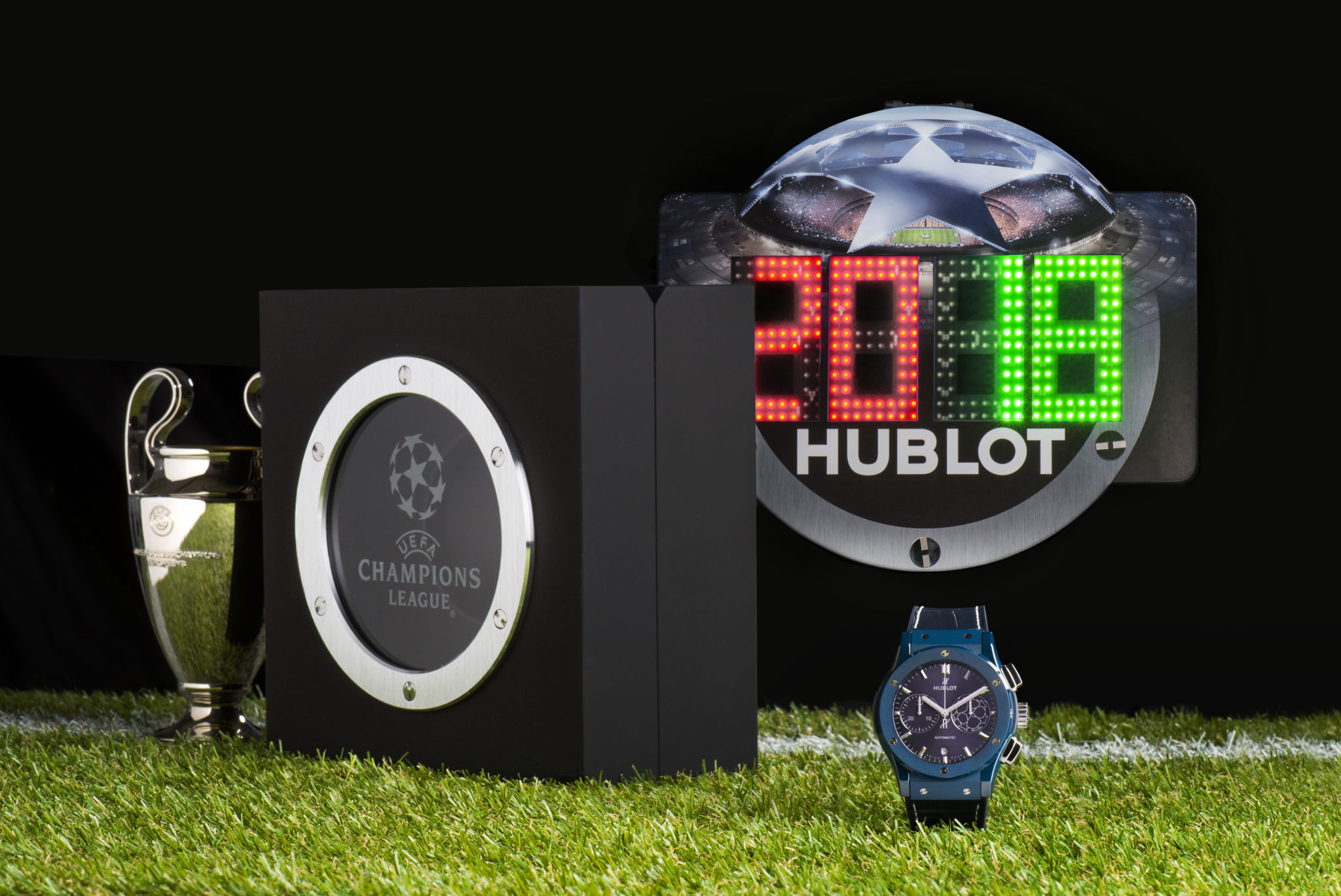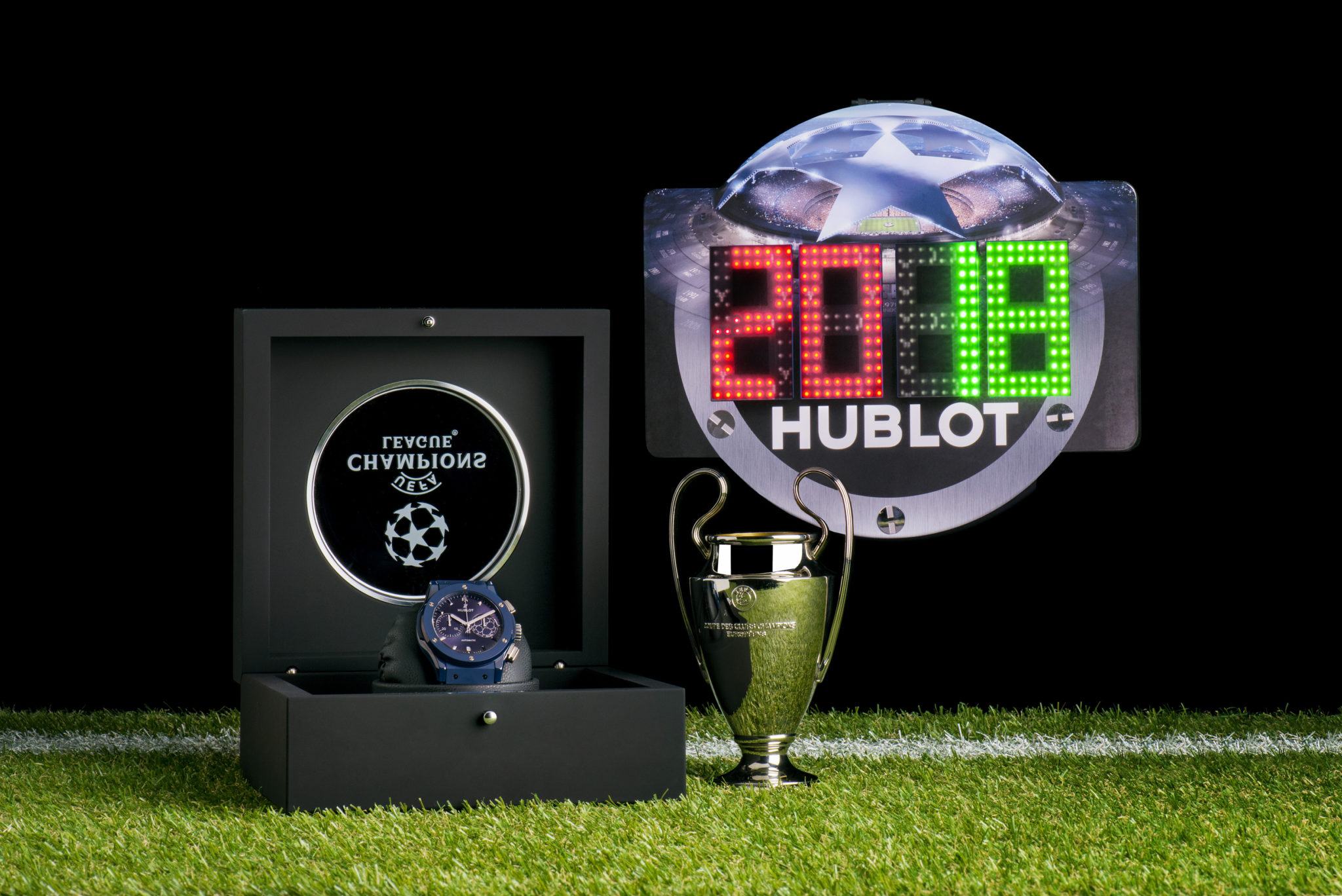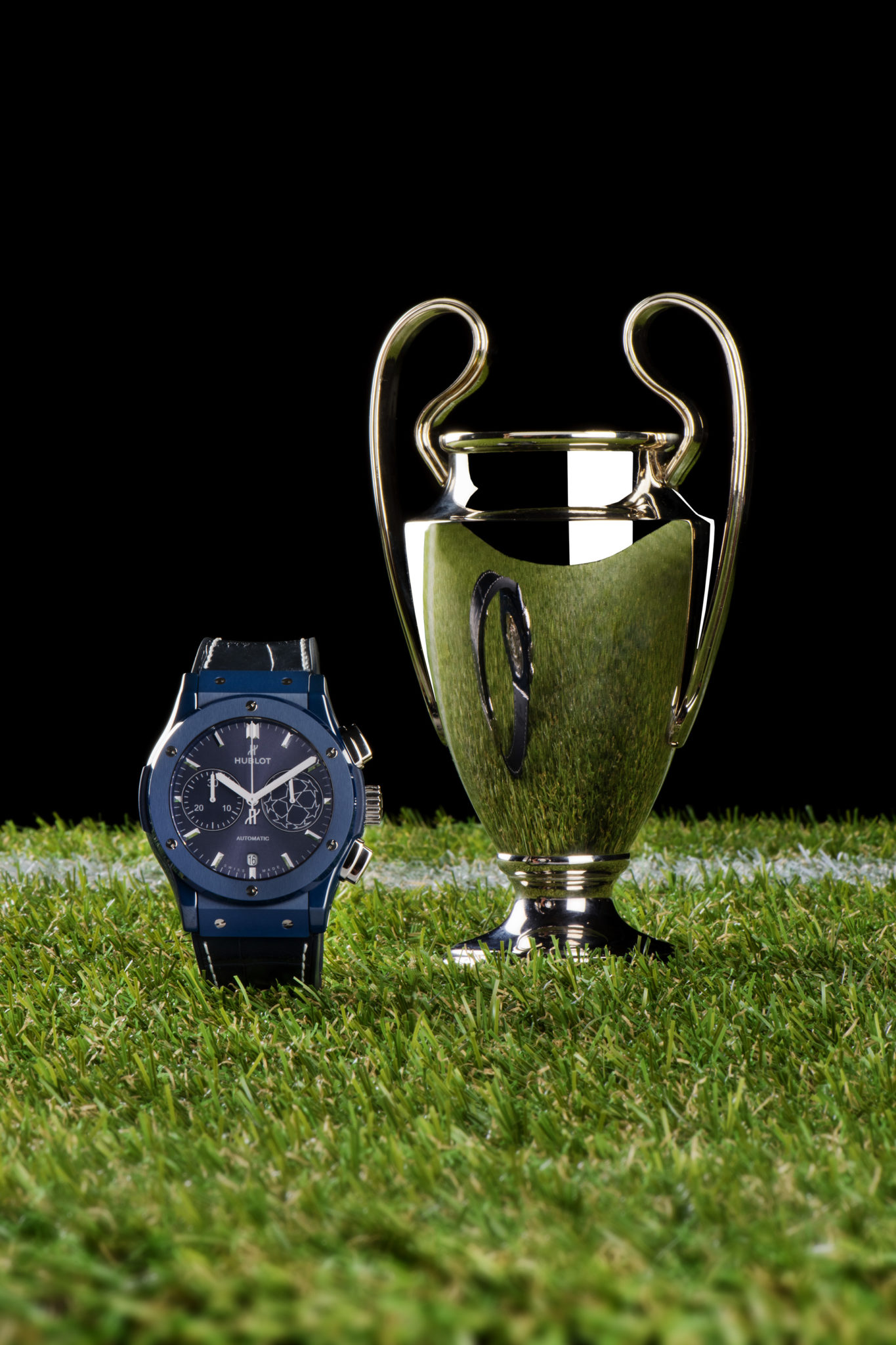 La maison horlogère officielle de l’UEFA Champions League™, Hublot est l’horloger star de la planète football. Pour sa 3ème année de partenariat avec l’UEFA Champions League™, le temps Hublot revêt le total look bleu. En attendant de savoir qui va lever le trophée le 26 mai prochain à Kiev en Ukraine, Ricardo Guadalupe, CEO de Hublot et le Roi Pelé dévoilent la nouvelle « montre accréditée officielle » de l’UEFA Champions League™. La légende internationale du football à l’aura planétaire porte à son poignet le symbole du plus grand tournoi européen des clubs de foot. Car la passion du foot n’a pas de frontières !