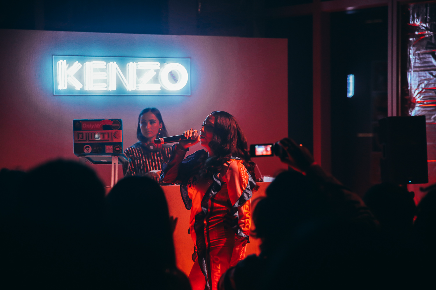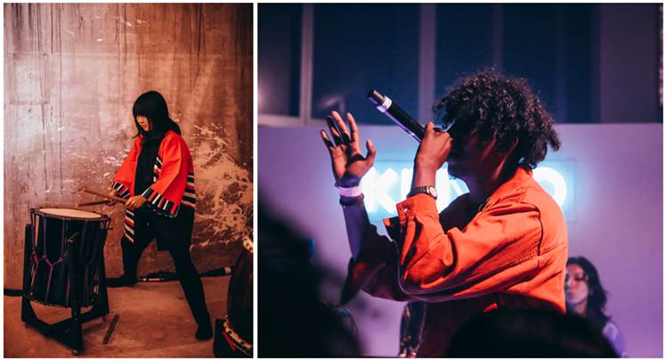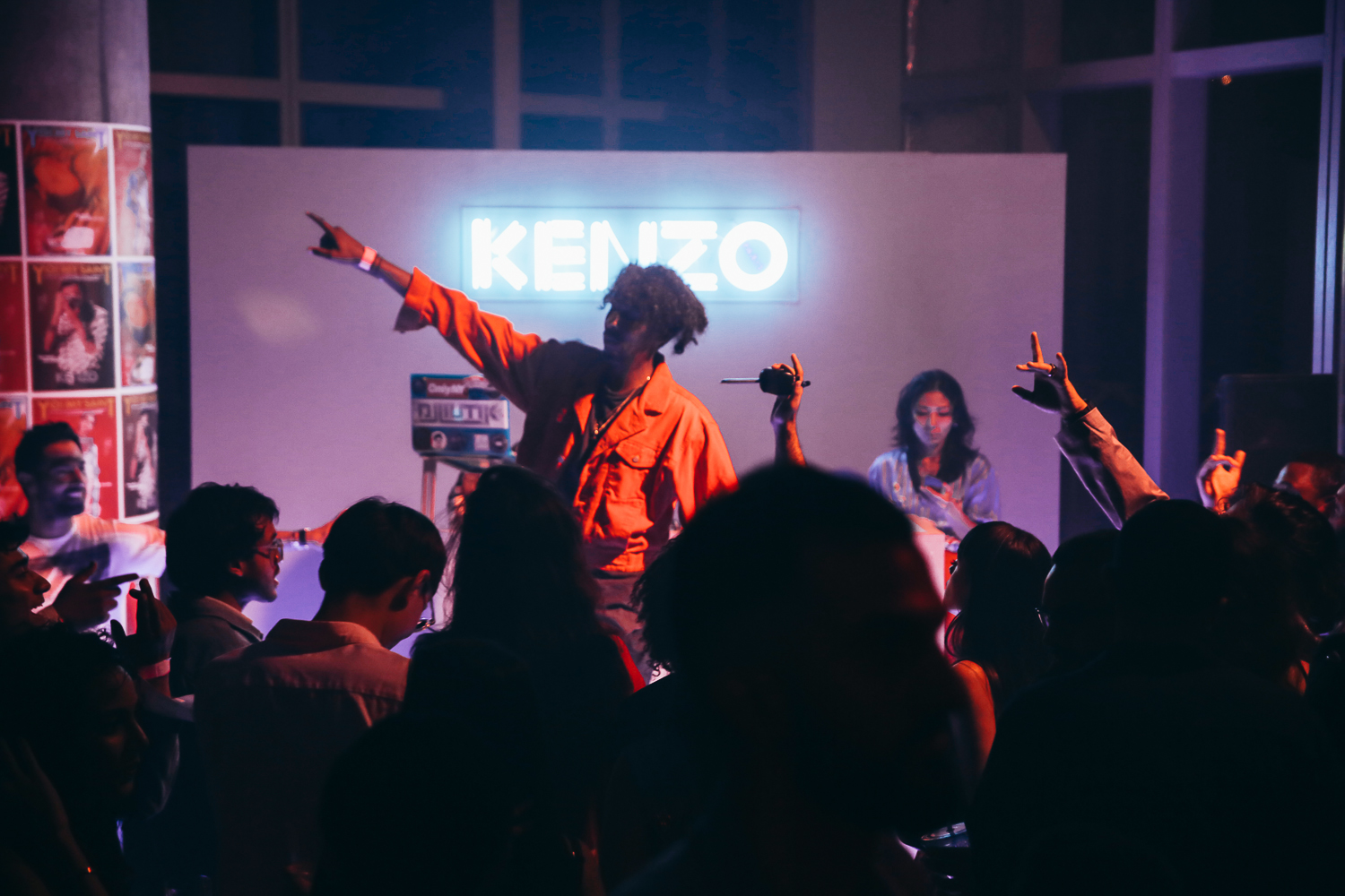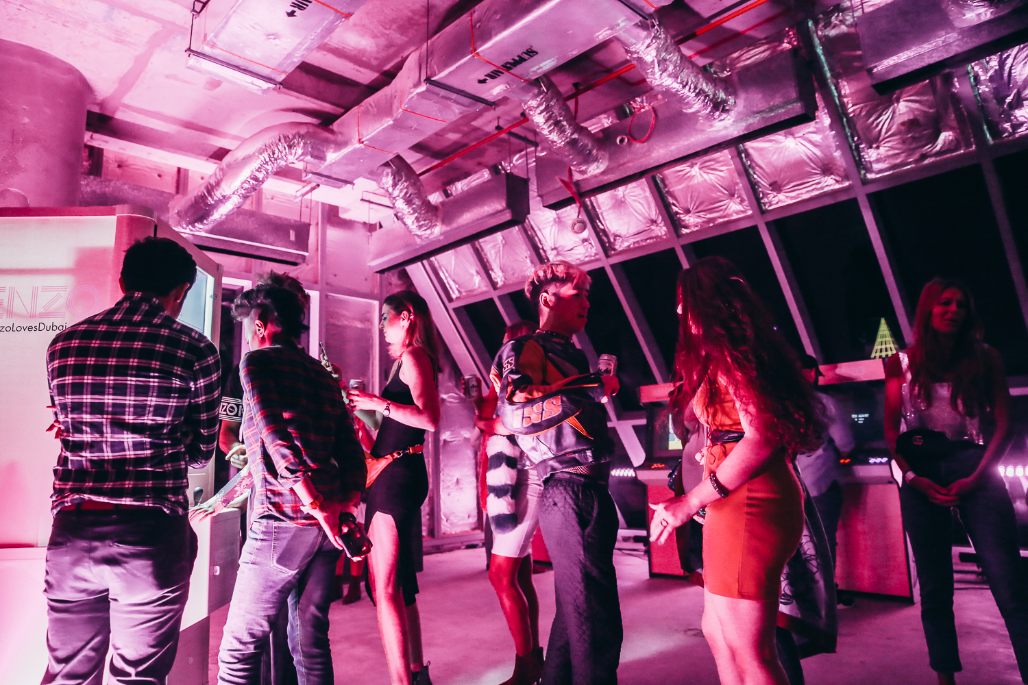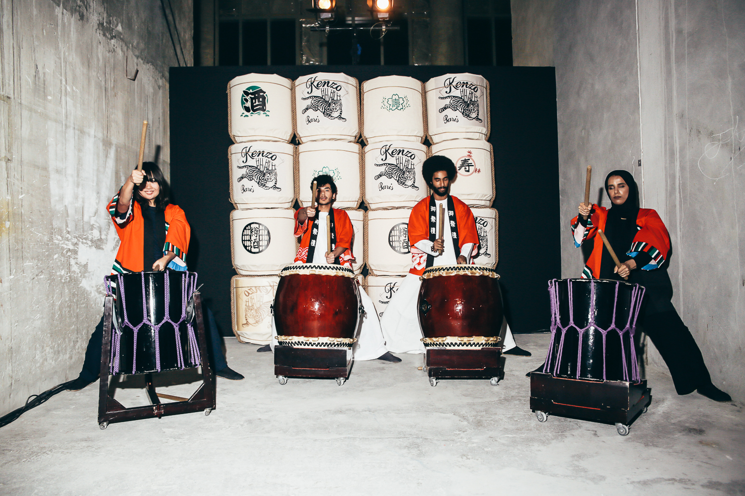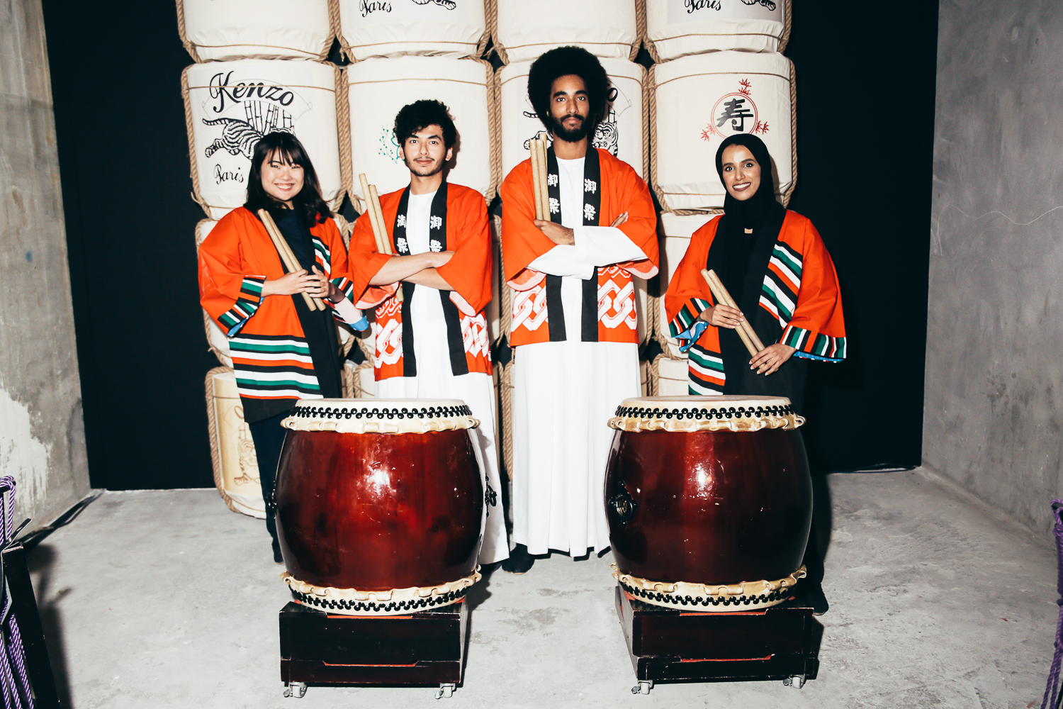 Guests arrived at an unexpected location for the late-night party – a stylishly designed office building in the heart of Dubai’s Financial District – DIFC. Upon arriving at the quiet lobby, guests were escorted to the 43rd floor where the brand had transformed the industrial space into a physical realization of KENZO’s Japanese world. The KENZO experience began as soon as guests passed the elevator door and were invited to remove their shoes to enter a traditional Japanese house for a sake tasting. Key looks from the KENZO – La Collection Memento N°2 were displayed on bamboo sticks around the Japanese house for guests to view and enjoy. The guests were then led to the heart of the event, located on the 45th floor, to dance the night away to Dubai’s very own DJ Liutik, Paris based performer Ta-Ra, and New York’s DJ Haruka’s hip hop and house beats.