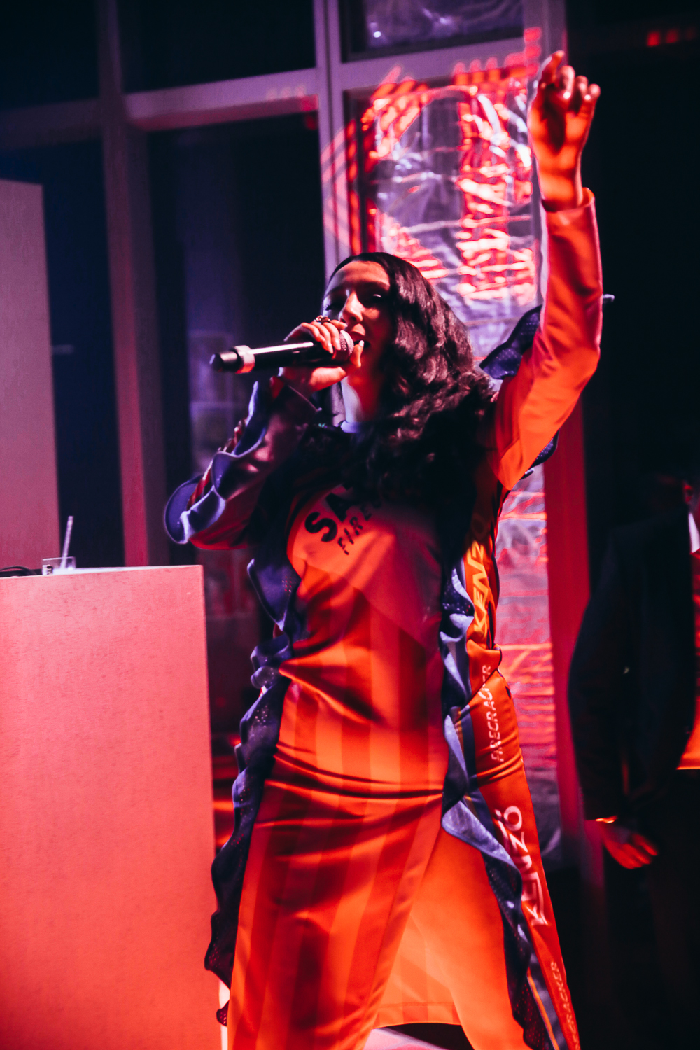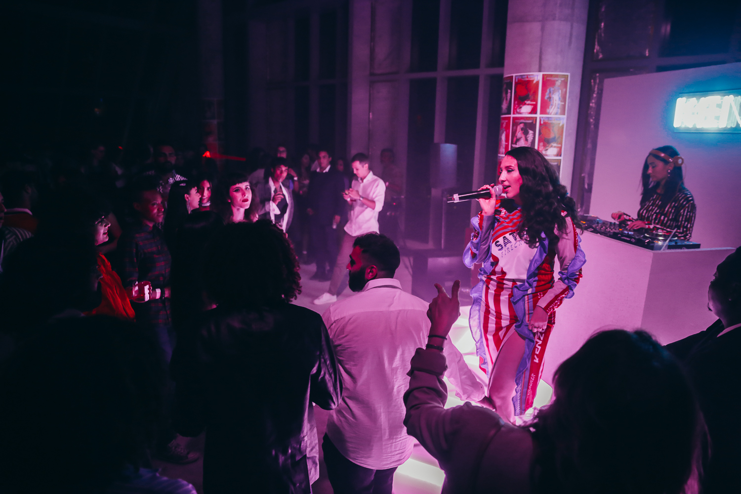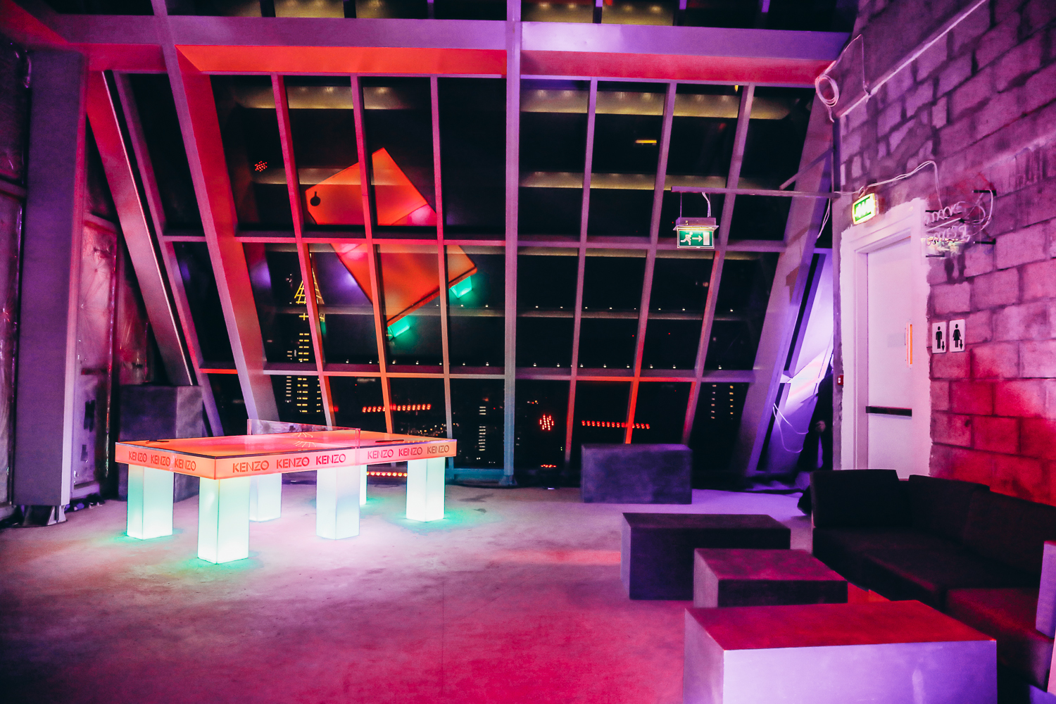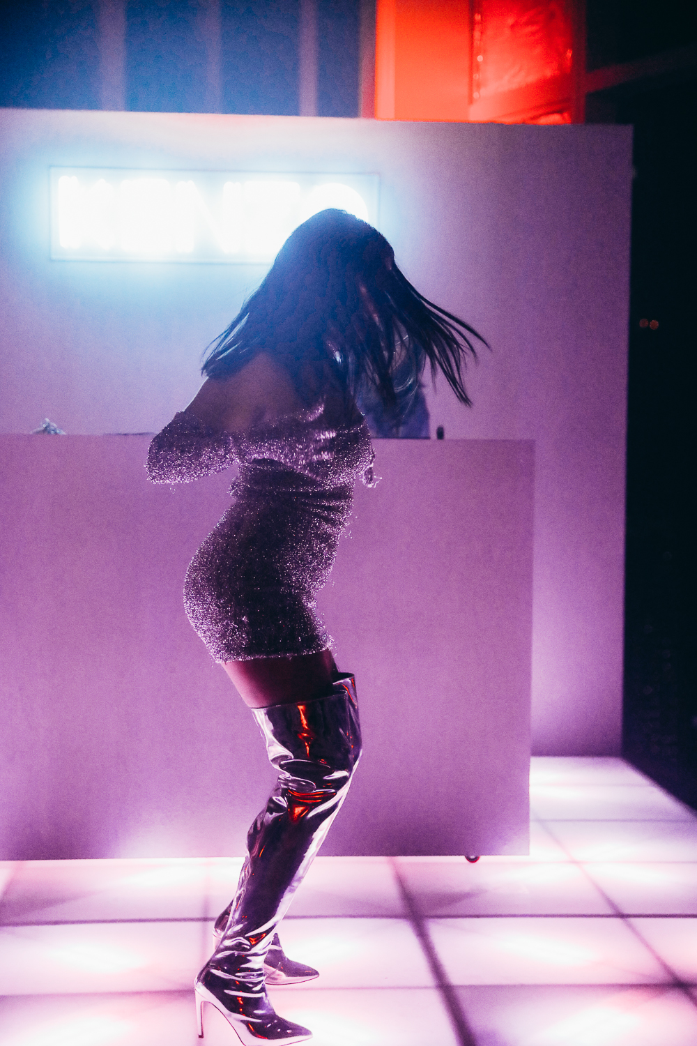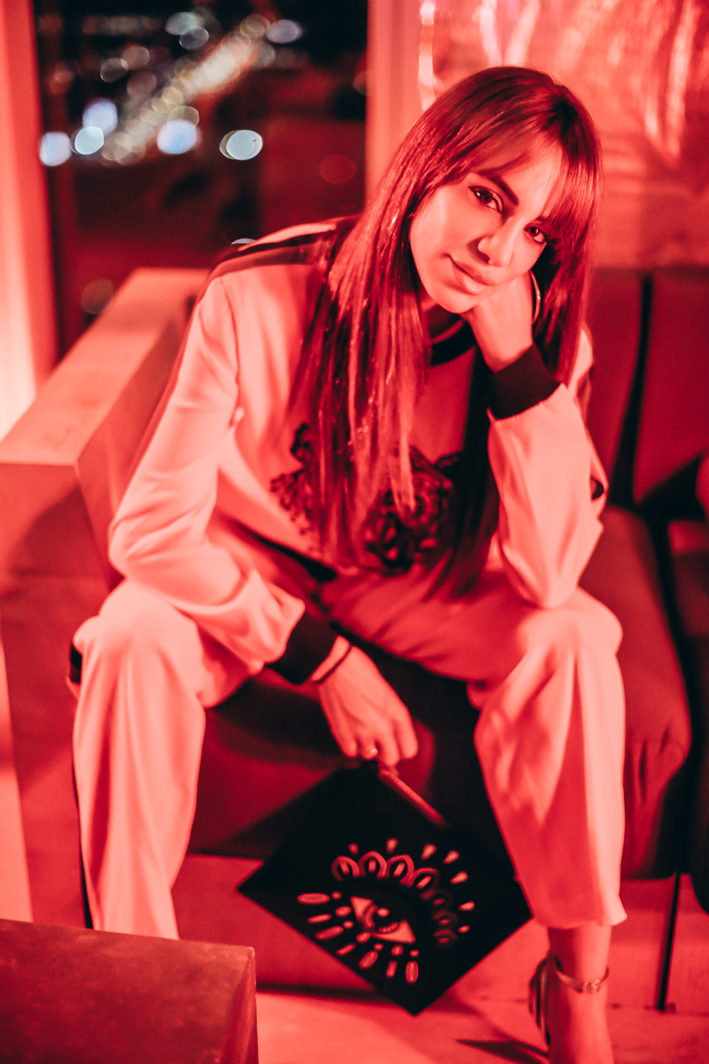 Guests arrived at an unexpected location for the late-night party – a stylishly designed office building in the heart of Dubai’s Financial District – DIFC. Upon arriving at the quiet lobby, guests were escorted to the 43rd floor where the brand had transformed the industrial space into a physical realization of KENZO’s Japanese world. The KENZO experience began as soon as guests passed the elevator door and were invited to remove their shoes to enter a traditional Japanese house for a sake tasting. Key looks from the KENZO – La Collection Memento N°2 were displayed on bamboo sticks around the Japanese house for guests to view and enjoy. The guests were then led to the heart of the event, located on the 45th floor, to dance the night away to Dubai’s very own DJ Liutik, Paris based performer Ta-Ra, and New York’s DJ Haruka’s hip hop and house beats.