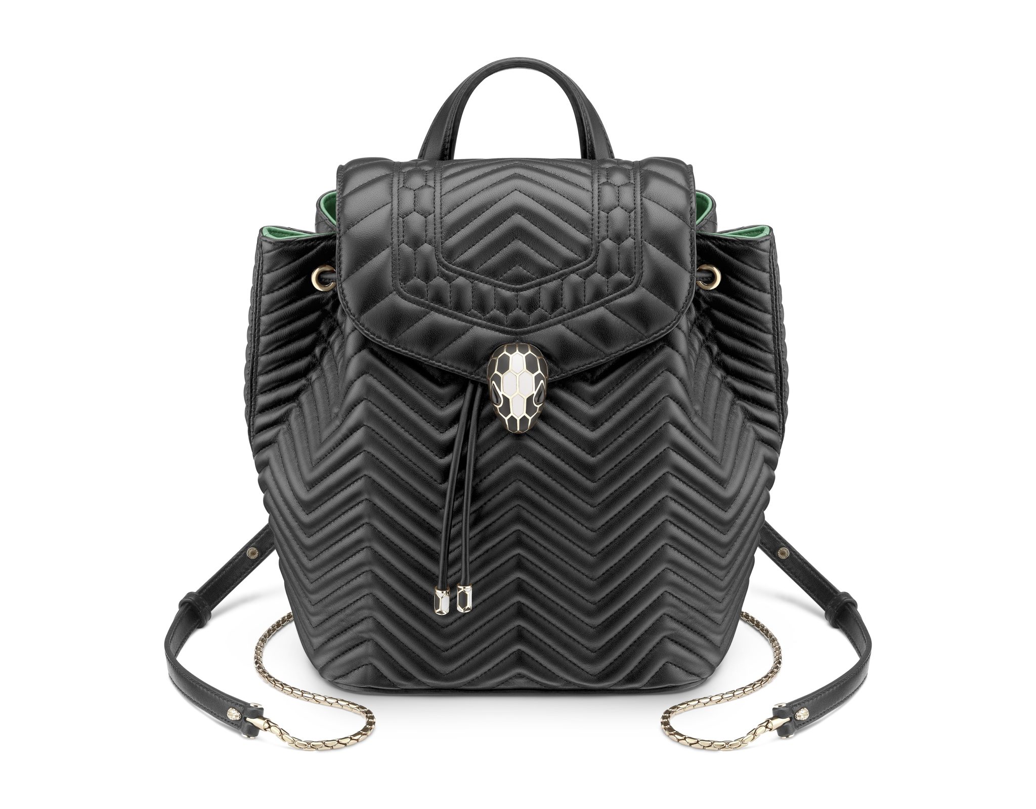 Jouant sur le charme envoûtant de Serpenti, Bvlgari propose sa version luxueuse du sac à dos fonctionnel.