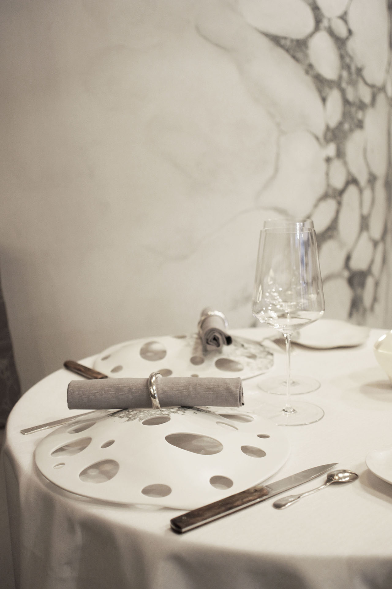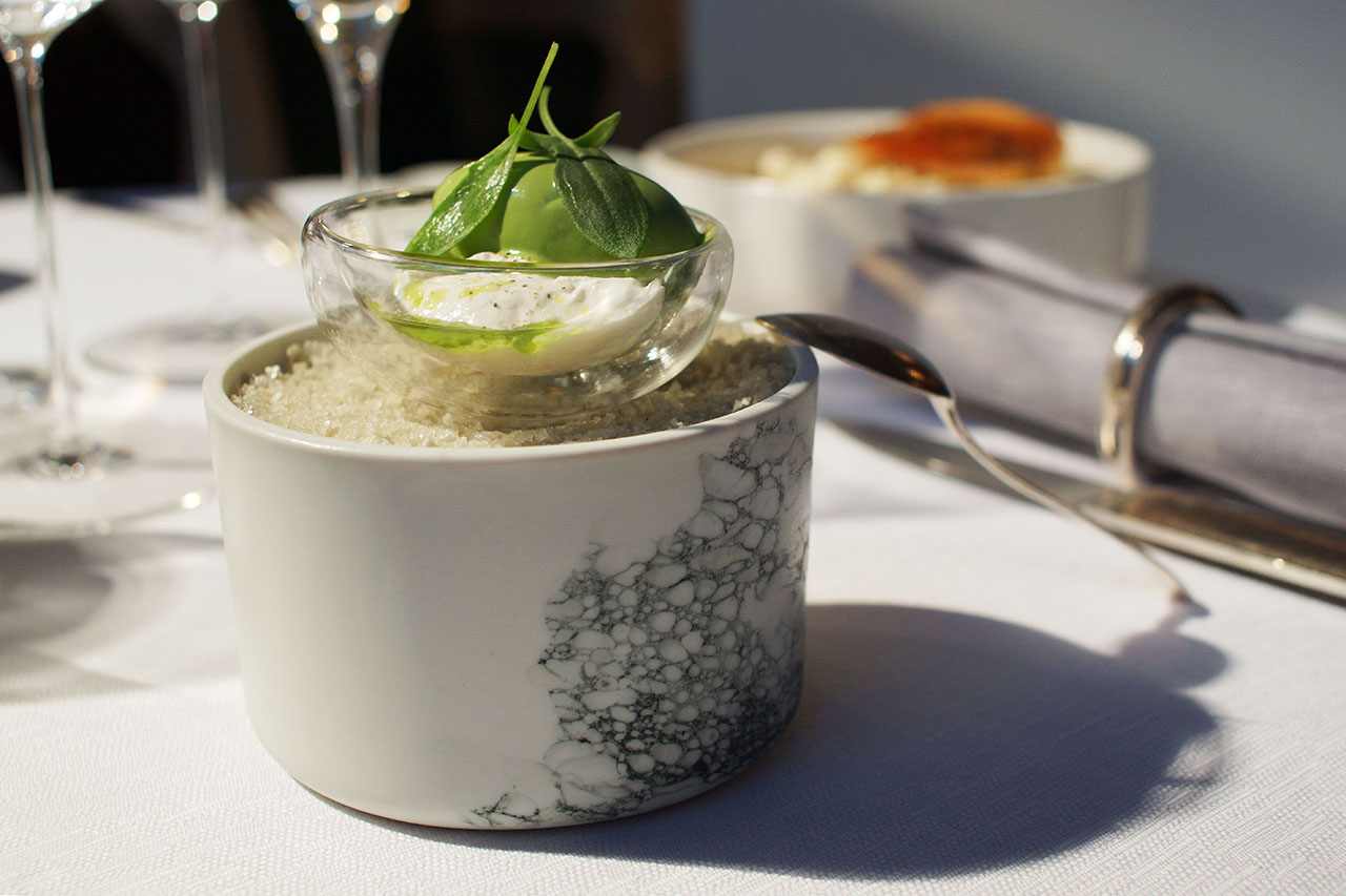 Au fil des saisons, Laurent Lapaire dresse ses 35 couverts dans une salle aux murs discrets, au décor inspiré des mouvements de l’écume. L’atmosphère est bienveillante et Laurent un orfèvre du service, entre guide de la balade gastronomique et distance pudique de l’expérience de dégustation.