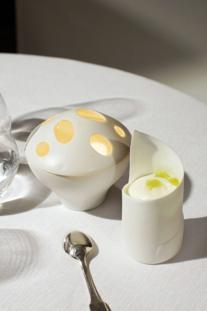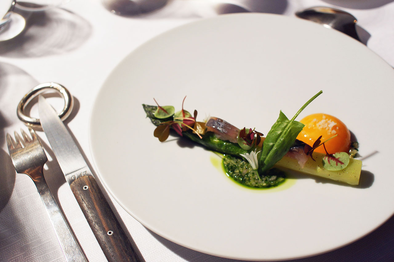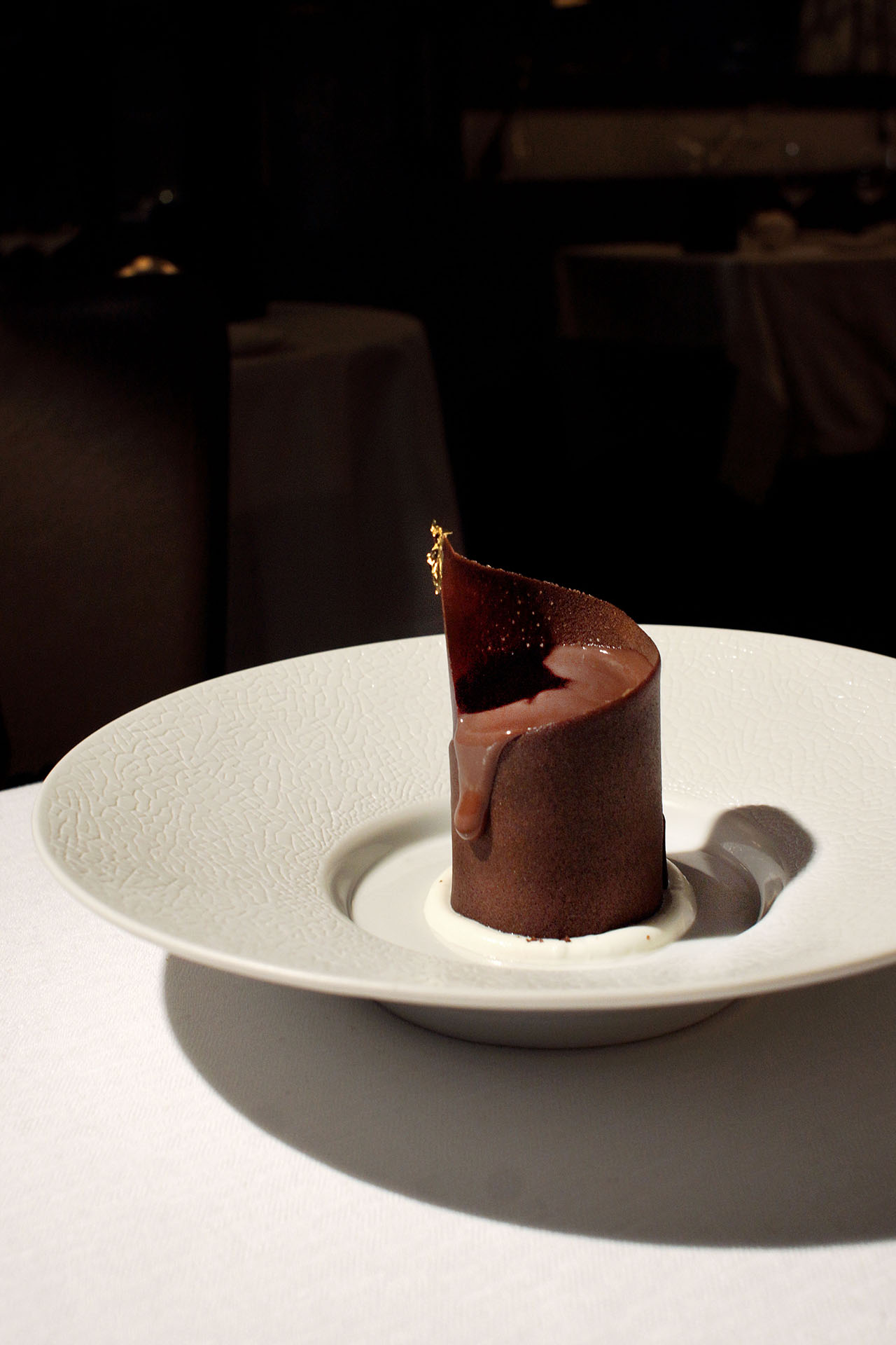 De l’autre côté de la salle, Yoshitaka Takayanagi aime cuisiner en musique, musique classique pour être exact. C’est drôle comme certains détails se ressentent dans l’assiette, le chef nippon de 37 ans passé par le Grand Véfour signe des plats tout en justesse, des compositions rythmées par l’expérience des saveurs, l’expérience des saveurs simplement justes ; quand la finesse japonaise rencontre la gastronomie française. Ce soir là, se suivent burrata, asperge, thon rouge et grenouilles pour le salé, aloe vera et chocolat grand cru pour le sucré, dans une composition très rigoureuse, accompagnée des accords viniques irréprochables du sommelier Gabriel Guinnebault.