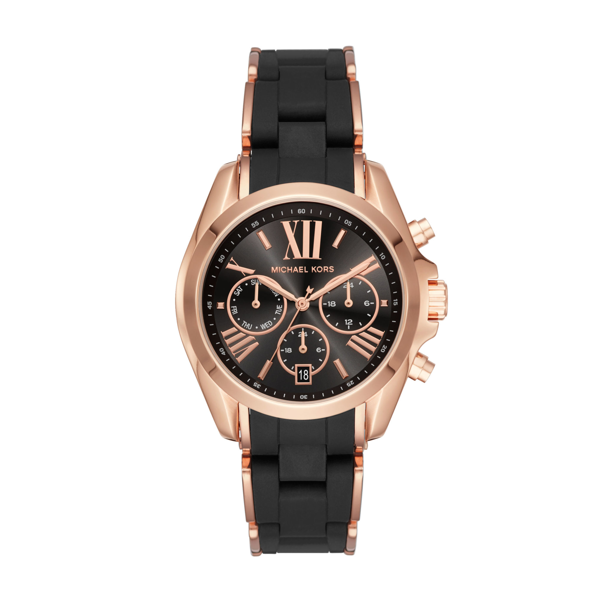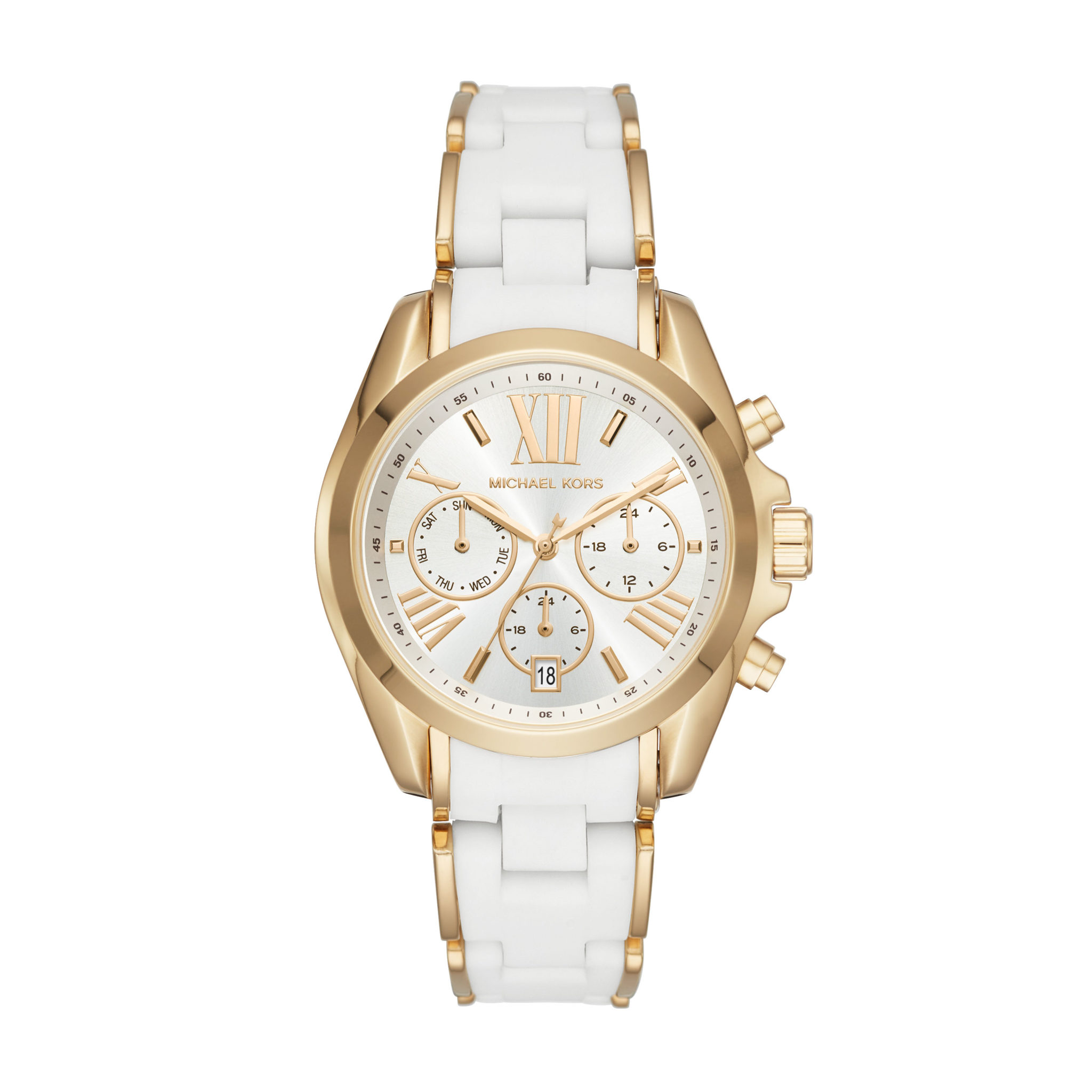 Cette saison, la ligne Bradshaw emblématique revient en force avec des pièces affirmées au style à la fois sportif et luxueux. Ce modèle surdimensionné classique se pare de bracelets colorés en silicone associés à des boîtiers dorés ou doré rose. Des index en chiffres romains et des couleurs vives viennent compléter son look frais et audacieux.