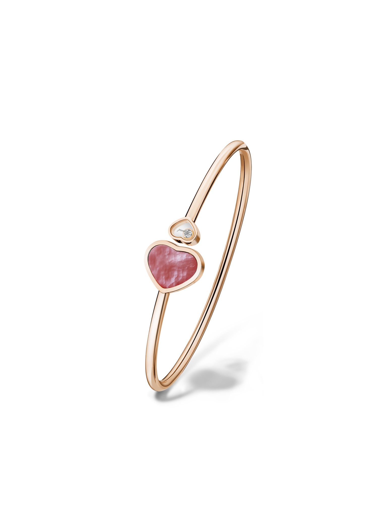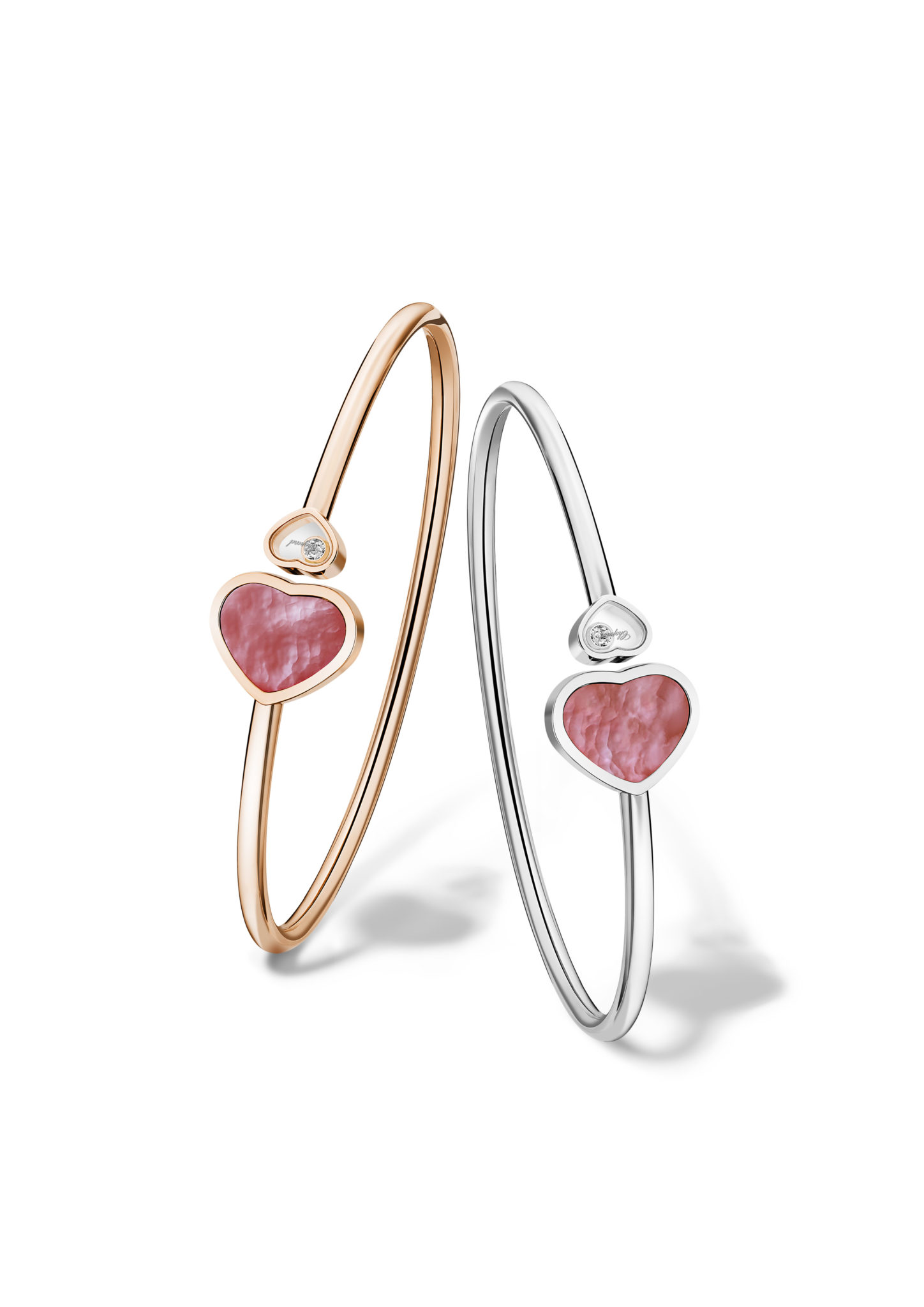 Alliance parfaite de son emblème du cœur et du concept iconique des diamants mobiles qui fait la renommée de Chopard, la collection Happy Hearts rallie toutes les femmes qui partagent le don de soi et la générosité, les femmes au grand cœur. Composée de bijoux alternant des cœurs munis de diamants mobiles et des cœurs de couleur, la collection enrichit régulièrement son offre chromatique à travers de nouvelles déclinaisons, offrant un choix encore plus large et permettant l’accumulation de ces bijoux talismans. Avec la nacre rose, c’est l’alliage d’un matériau minéral connu pour sa pureté et d’une couleur synonyme d’émotions et de tendresse qui fait son entrée dans la collection. Des symboles tout trouvés pour porter la cause de la Naked Hearts Foundation. Happy Hearts est plus que jamais le fruit du travail d’alchimiste de Chopard : matérialiser des moments de vie précieux en un objet intemporel.