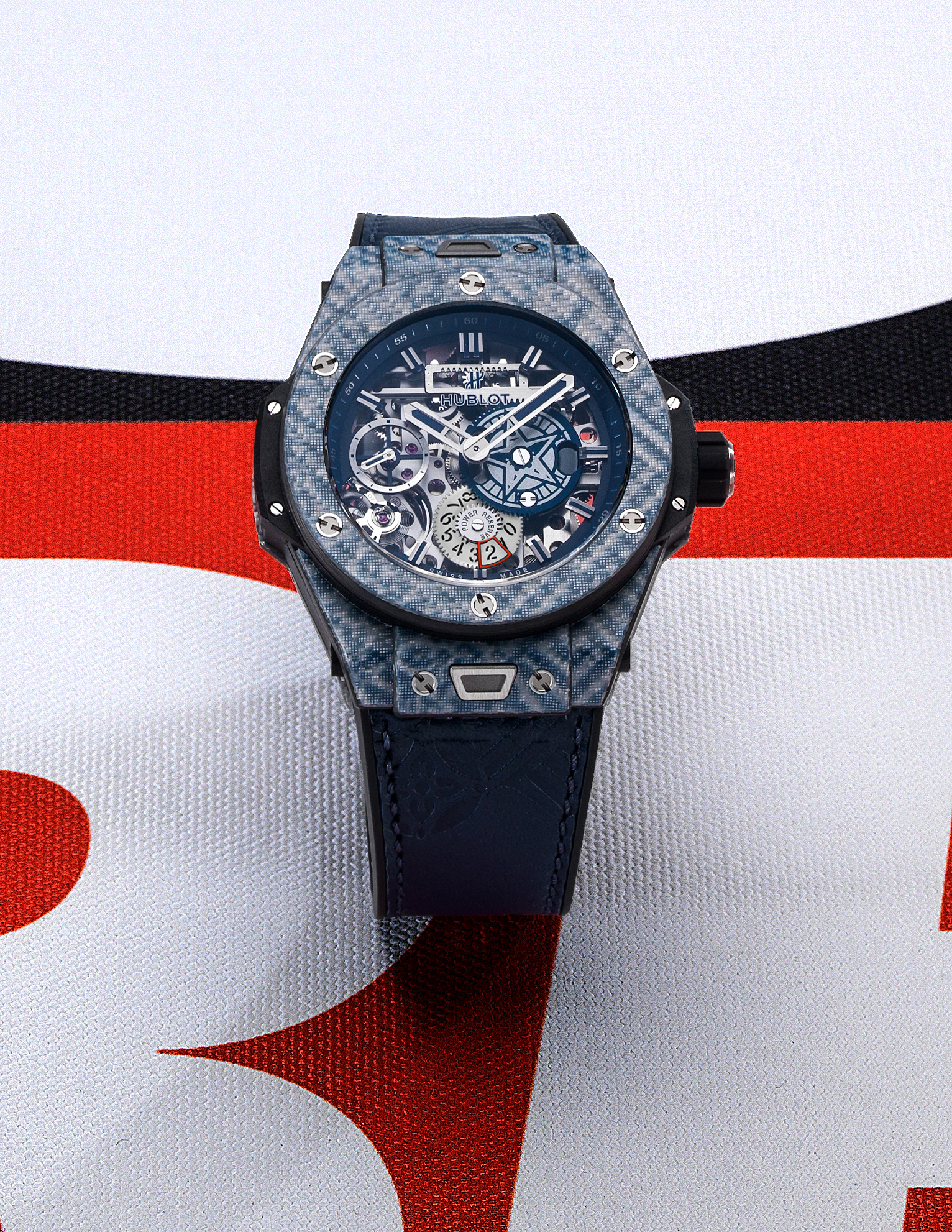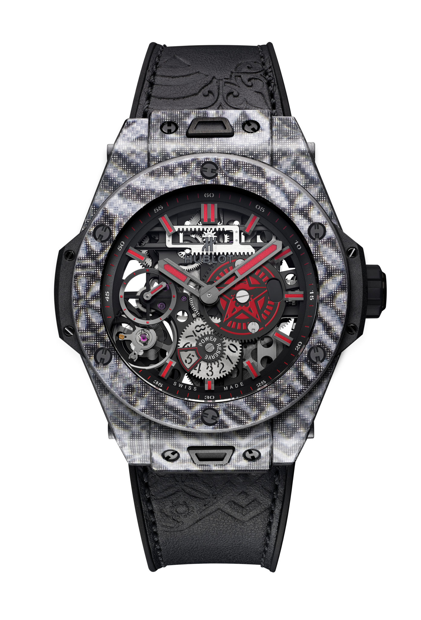 La soirée a également permis de dévoiler la Big Bang Meca-10 Shepard Fairey, co-créée avec l’artiste. Le modèle fait partie de la famille Big Bang Meca-10, une innovation très récente reprenant le style signature de Hublot et intégrant le mouvement exclusif de la marque, une esthétique de style mécanique ciblée sur l’engrenage, ainsi qu’une réserve de marche de 10 jours. Le garde-temps arbore un design architectural inhabituel, élaboré autour d’un ensemble de construction, dont le squelette stylisé laisse entrevoir un voyant de réserve de marche original aux roues dentées.