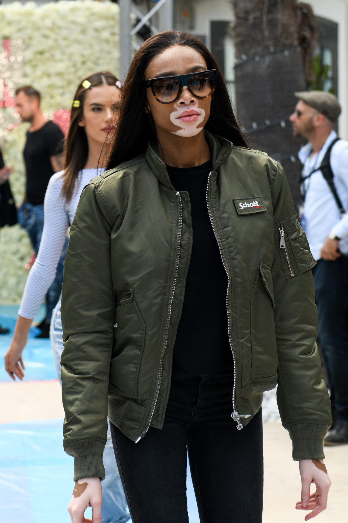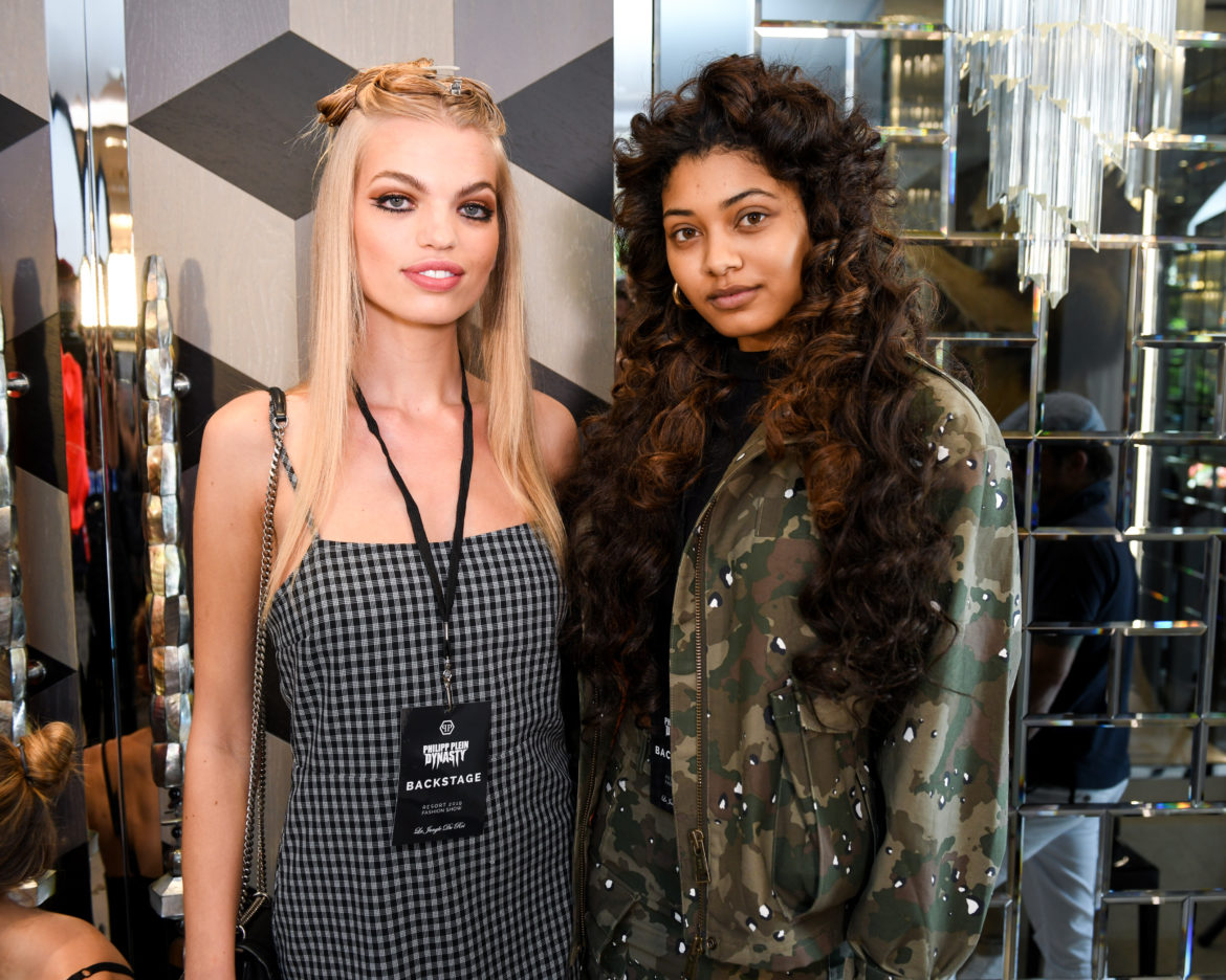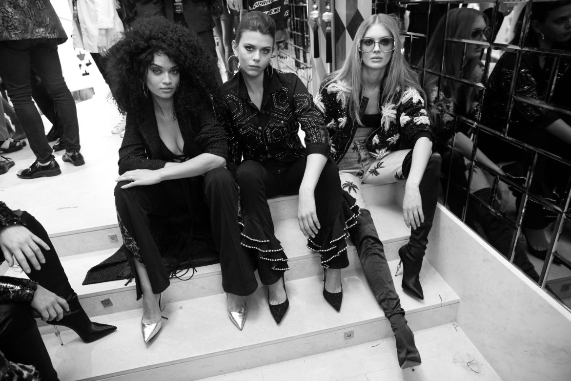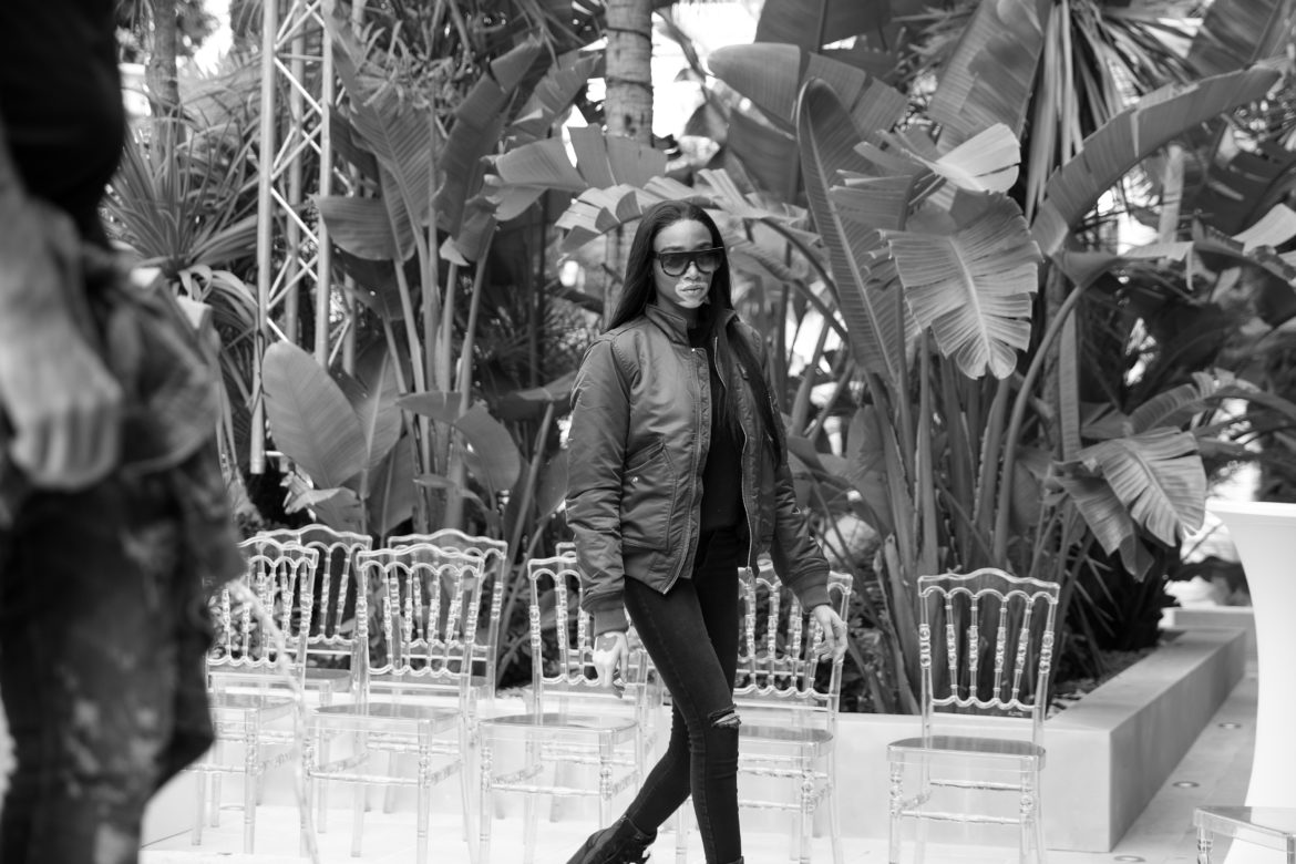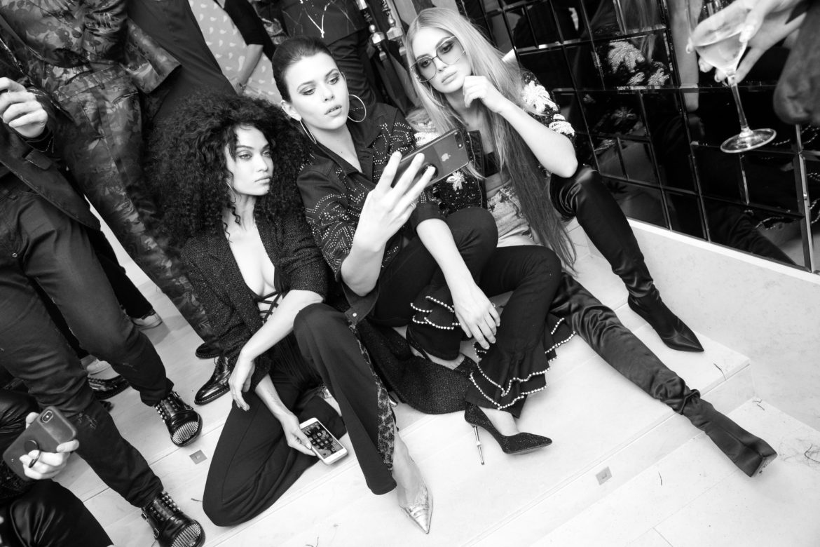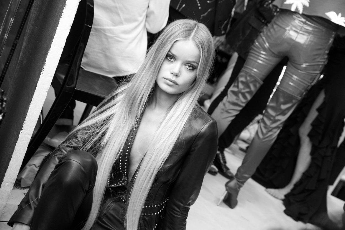 For his Resort 2019 collection, Philipp Plein once again opened the gates to his private palace on the Cote d’Azur, ‘La Jungle Du Roi’. At the entrance, on a wall of white roses, the word ‘PHILIPP PLEIN DYNASTY’ was framed by two giant ‘Ziggy Stardust’ lightning bolts – signaling an event charged with high-voltage power. The runway created in gold glitter was surrounded by the exotic garden’s palm and banana trees. The show began with David Bowie’s Rebel Rebel pounding through the speakers …