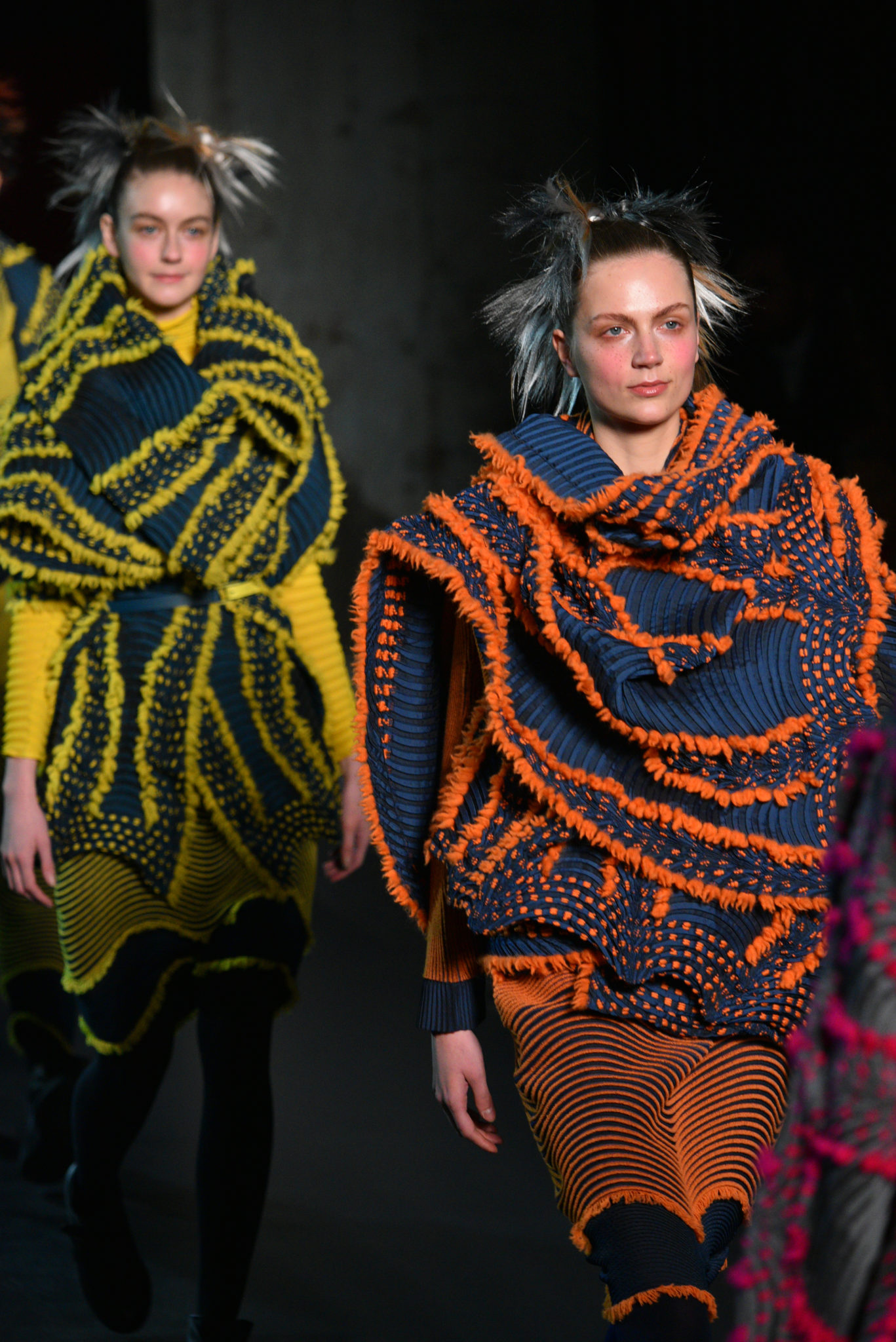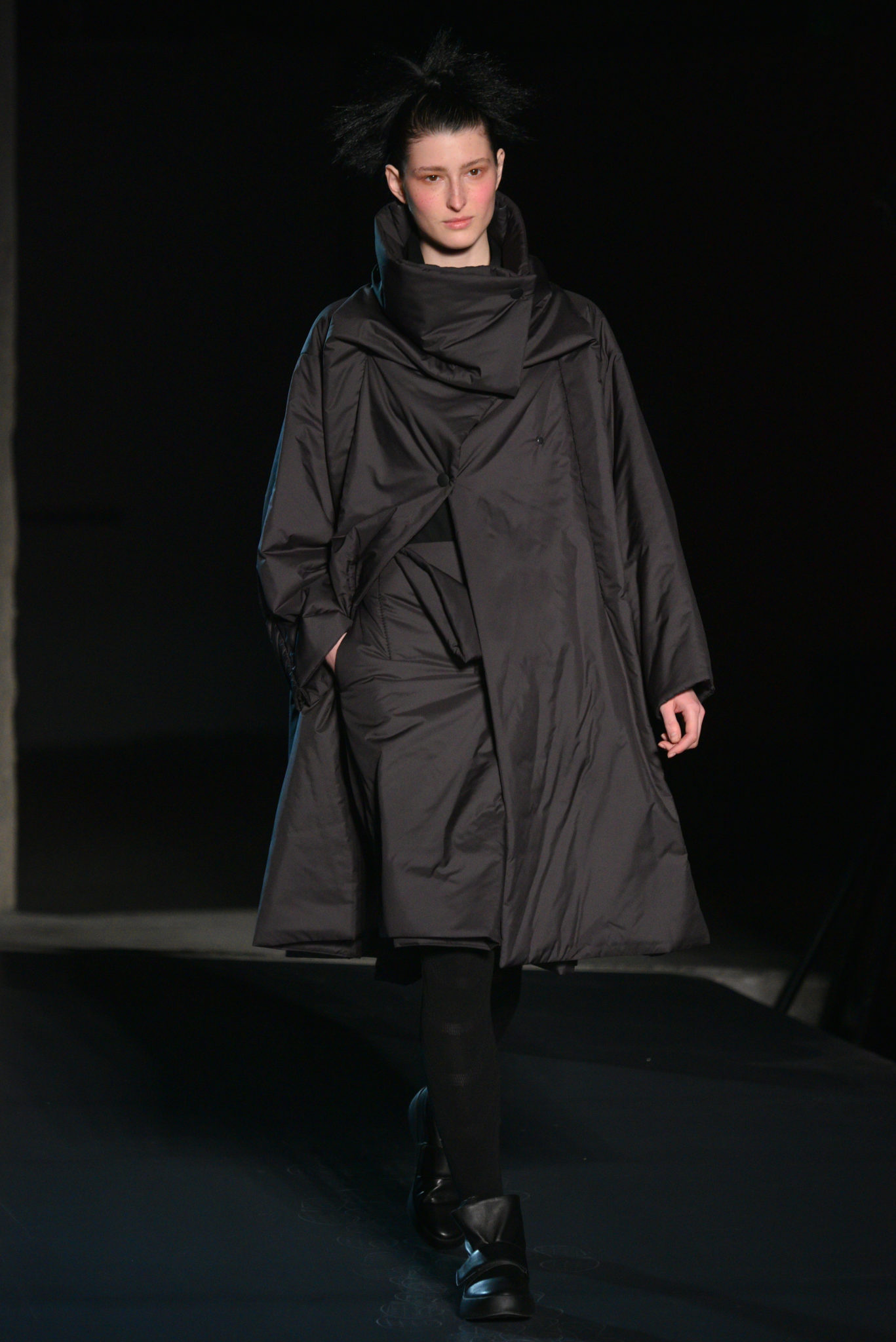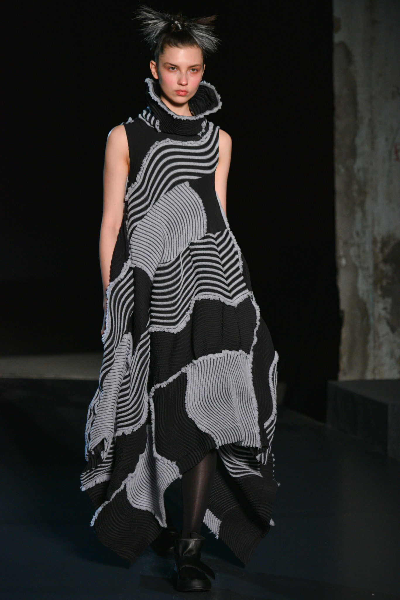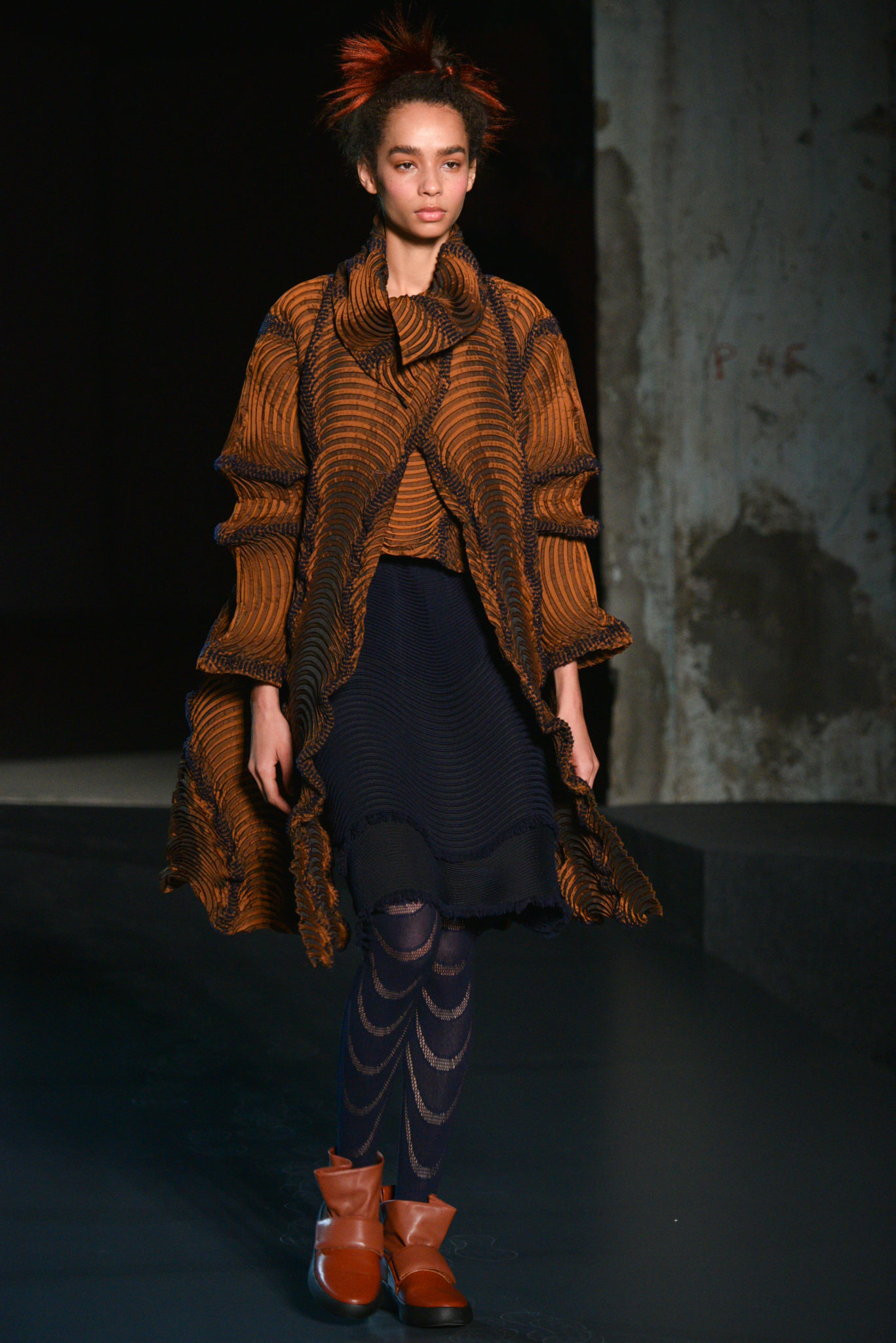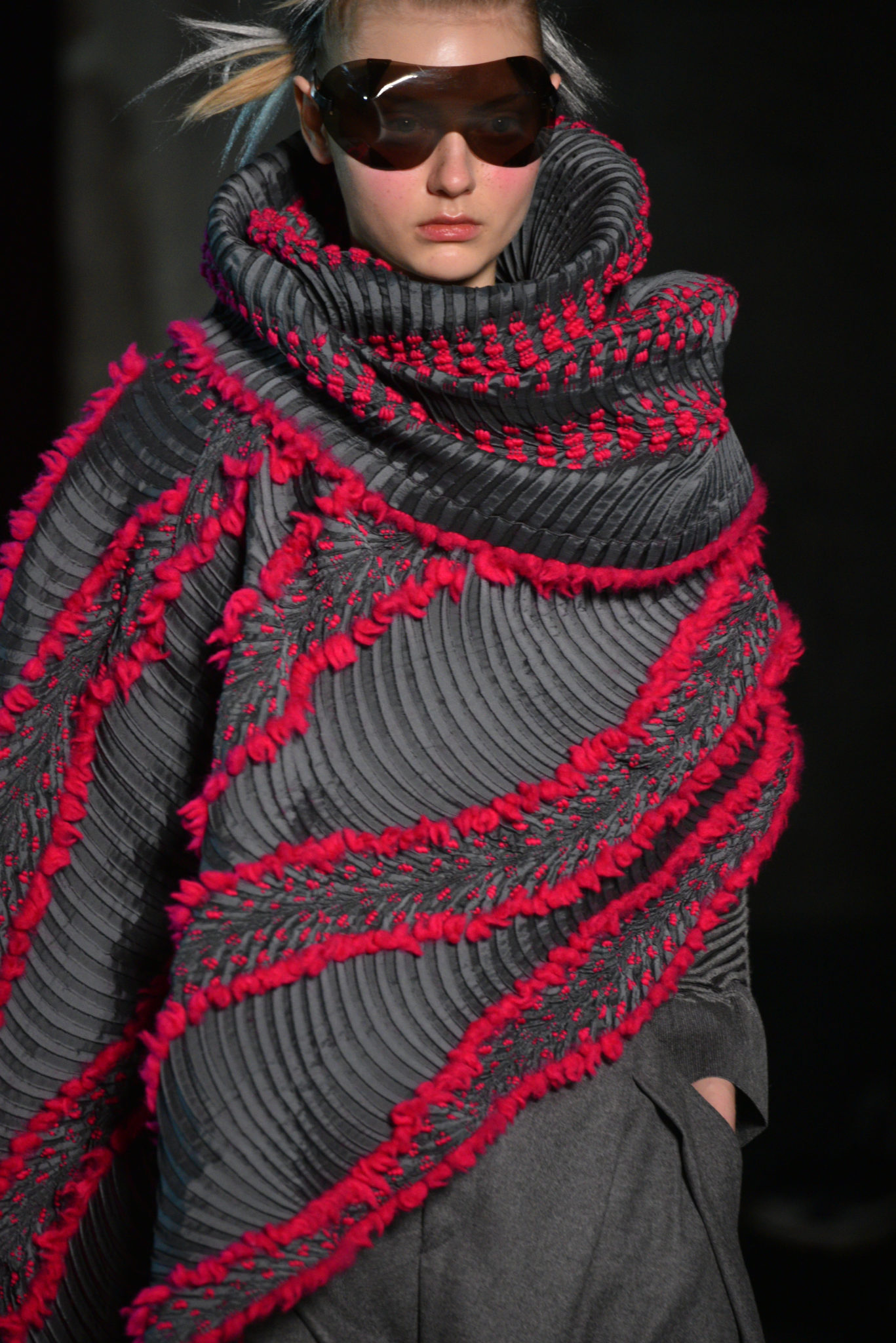 Ces scènes de nature sont une source d’inspiration toujours renouvelée. Un nouveau plissé intégrant deux textures est né. Des fils de laine tissés dans une base Steam Stretch créent une maille d’un nouveau genre. Cette matière inédite combine légèreté, confort enveloppant et facilité d’entretien. Ces vêtements surprenants allient modernité et poésie, fidèles à la quête ISSEY MIYAKE du vêtement absolu ‘A Piece of Cloth’.