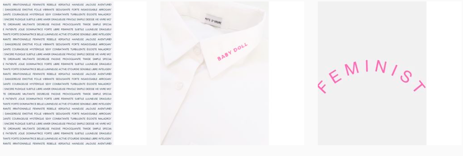 « En ce moment, il  y a une revendication globale de la part des femmes. Nous vivons sans doute quelque chose d’historique. Alors pour retranscrire les discours je ne souhaitais pas prendre un t-shirt, ou un sweat : il fallait un vêtement qui ai du panache » . L’histoire du féminisme : une histoire complexe faite de vagues qui  se chevauchent mais ne se comprennent pas toujours : écarts générationnels, géographiques ou sociaux. « Chaque femme a son parcours. Je supporte les femmes, je défends les femmes : dans la vie professionnelle quand je constate des inégalités, je me manifeste. Le féminisme c’est particulier, complexe. Je n’ai pas envie de dérober la parole à des femmes dont je ne connais pas les luttes ». Alors Charlotte transforme le vêtement en espace alternatif d’expression. Une terre que chaque femme peut conquérir. Elle donne la voix, ne parle pas « à la place de ».  « Les messages n’occupent pas toute la chemise. C’est une chose que l’ont peut garder pour soi, pour se donner de l’élan. En fonction des générations la broderie est différente. »Piège à cons » où « fais-moi vibrer »: ça fonctionne bien chez les jeunes filles ». La nouvelle génération affirme son droit à la séduction, au désir. « À partir du moment où on se sent belle on a envie de déplacer des montagnes. Se sentir belle …On ne dit jamais assez aux filles qu’elles sont belles. La mode n’est pas forcément le milieu le plus à même pour cela(…) Je propose à mes clientes de m’envoyer des photos d’elles avec les chemises (…) J’adore recevoir leurs messages et voir qu’elles jouent le jeu. Se prendre en photo, faire des montages : elles créent à leur tour, et j’espère qu’elle se sentent belle ».