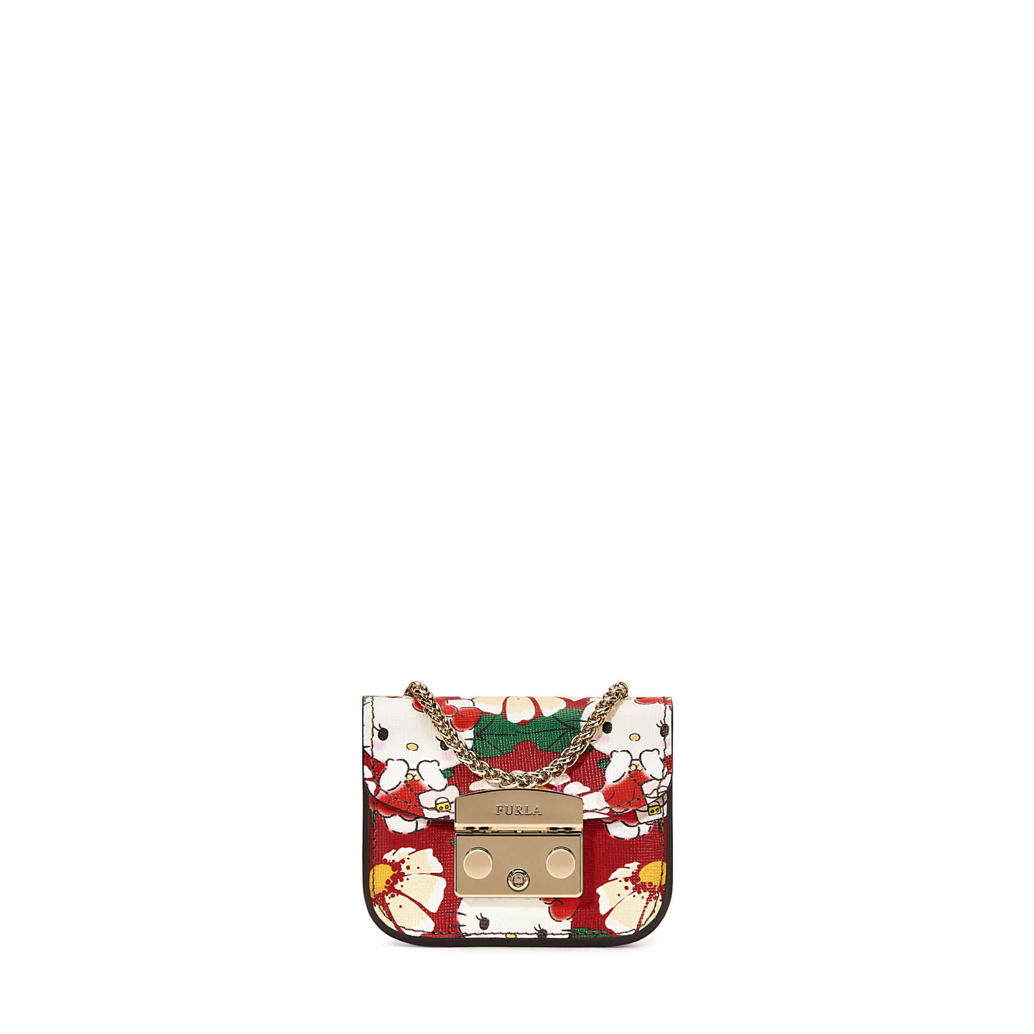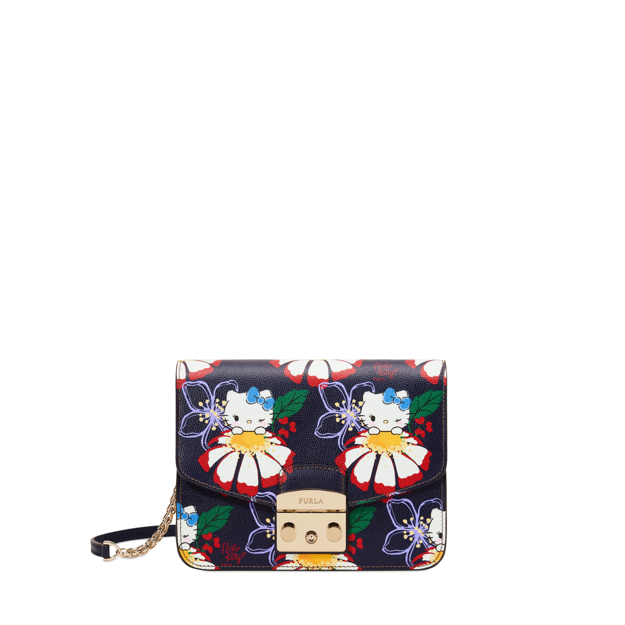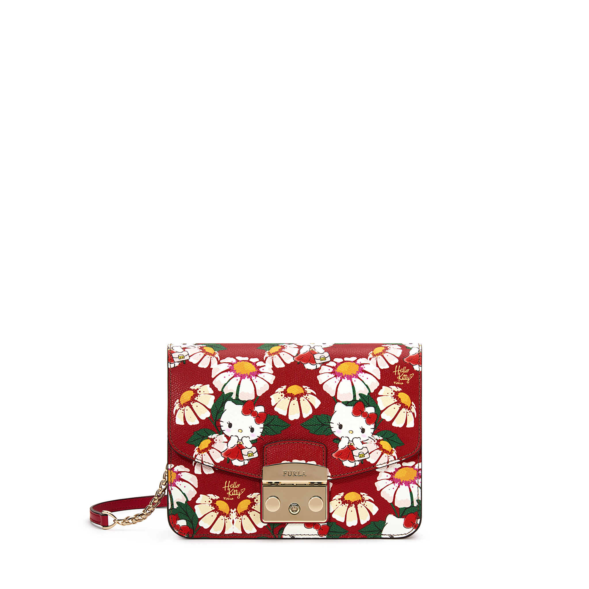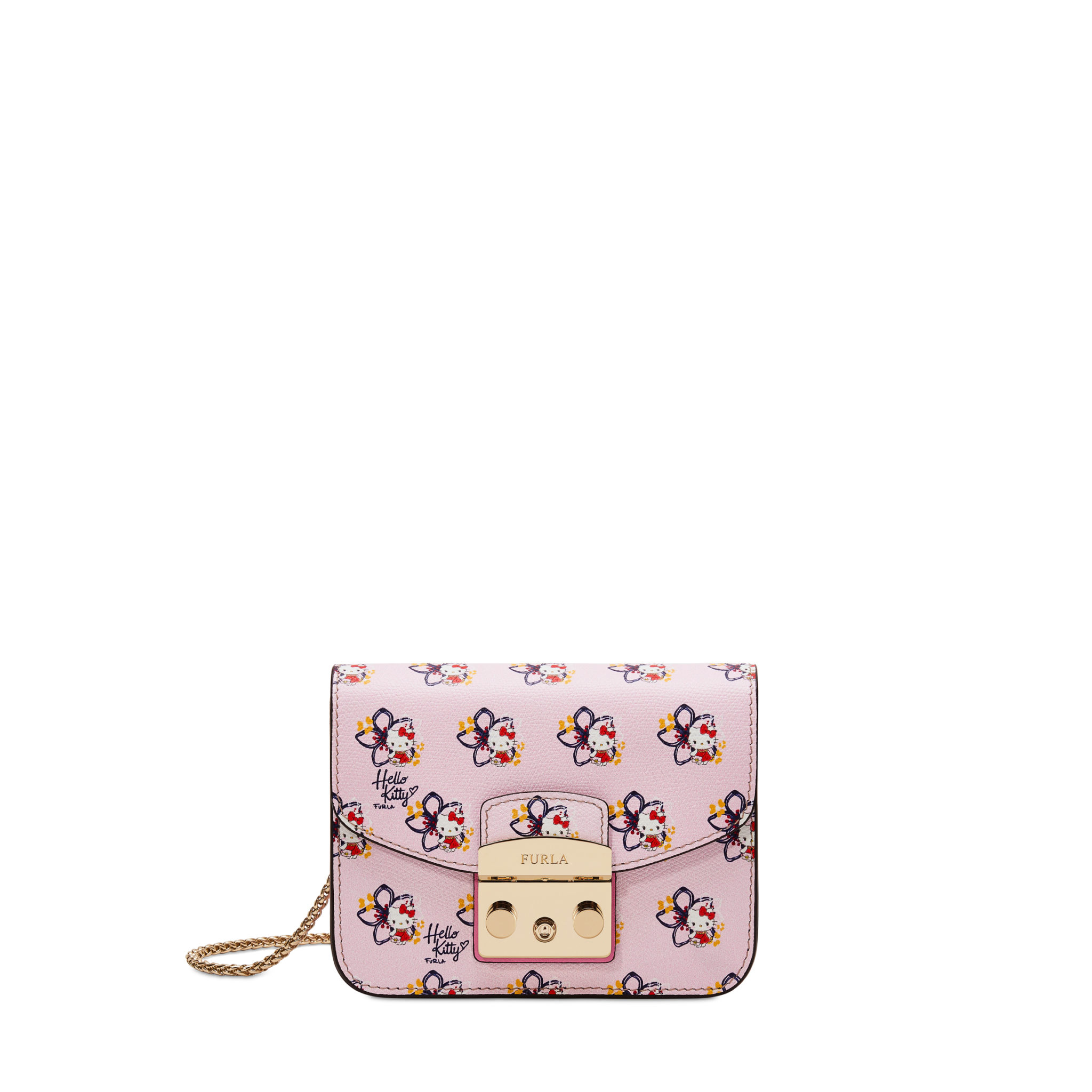 Le partenariat entre Hello Kitty et Furla se décline avec des micro-sacs, porte-clés, étuis pour cartes de crédit, étuis de cosmétiques et pochettes reprenant les imprimés et les thèmes du Metropolis.
