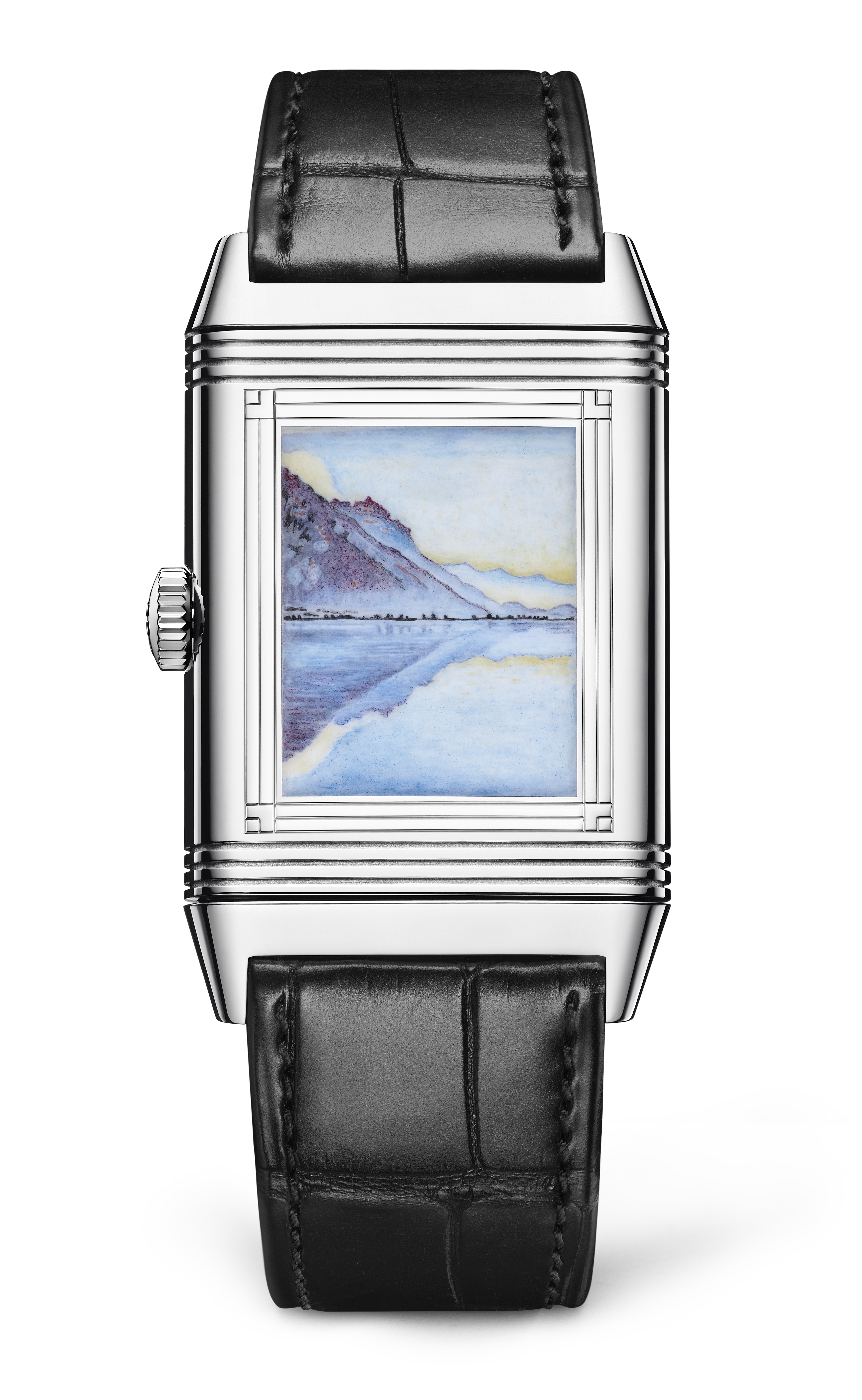 Des paysages de montagnes et de lacs, particulièrement représentatifs de l’oeuvre du peintre dont on célèbre le 100ème anniversaire de la mort en 2018, ont été choisis pour orner le boîtier de la Reverso Tribute Enamel. Cette montre aux codes Art déco iconiques arbore à cette occasion un boîtier en or gris spécialement créé pour accueillir la miniature en émail.