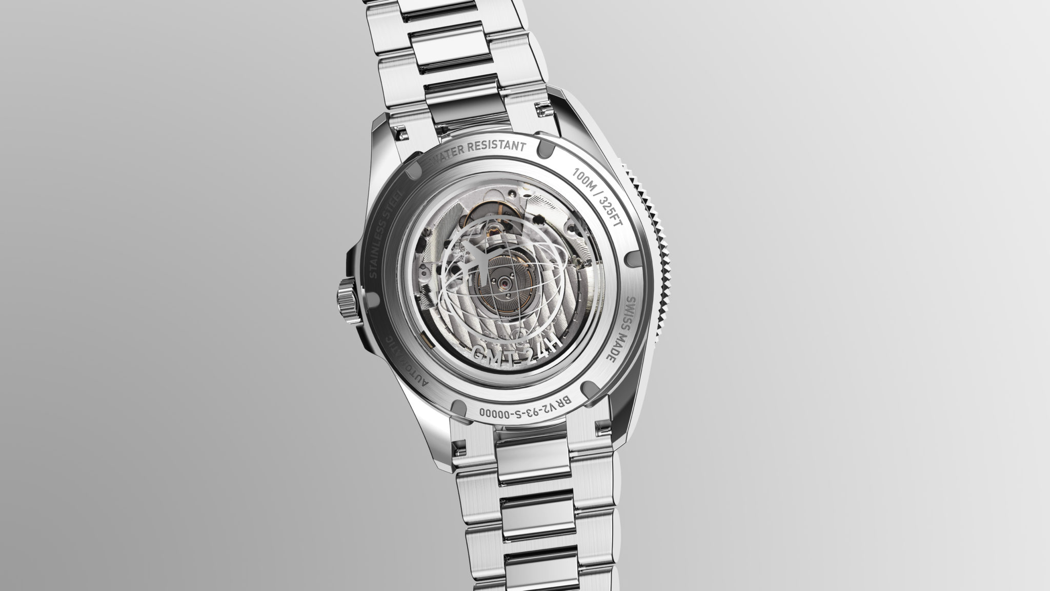 La BR V2-93 GMT se présente comme l’outil indispensable des pilotes d’avion, elle est destinée aux grands voyageurs modernes et chic.