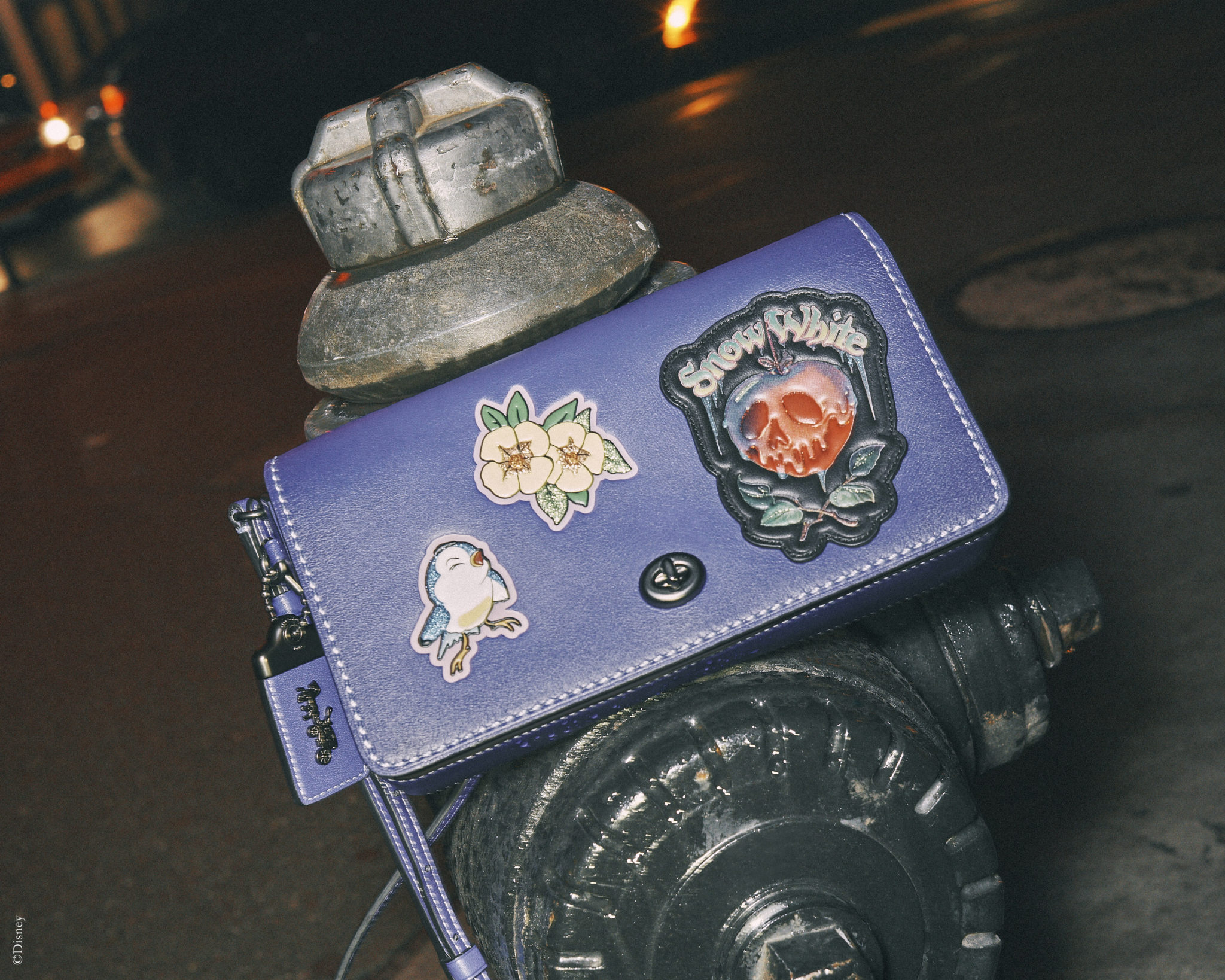 Irrévérencieuse et emblématique, la collection Disney x Coach : A Dark Fairy Tale sera disponible à partir du 14 mai 2018 dans les boutiques Coach et sur coach.com. Une sélection de boutiques présentera la collaboration dans un set unique inspiré d’un château Disney mais façonné plus ‘dark’—en tôle ondulée et touches de violet vif.