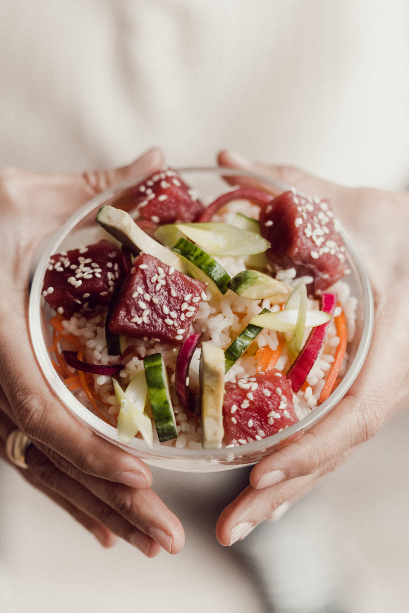 Chaque produit est ainsi choisi avec soin et rigueur pour ses qualités gustatives, ses vertus nutritionnelles et sa provenance : saumon d’Islande élevé en eau naturelle, thon rouge sauvage de l’Océan Indien, riz noir d’Italie… Des légumes, fruits et graines viennent agrémenter chaque bowl. Les ingrédients sont marinés, assaisonnés et cuisinés avant d’être assemblés dans de savoureuses recettes.
