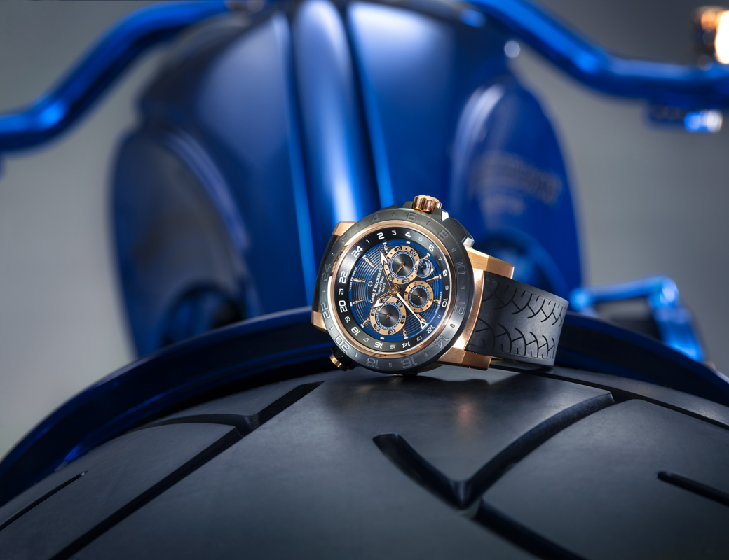 Un cadran bombé en verre blindé cache un bijou supplémentaire particulièrement précieux dans un coffre-fort encastré: la bague solitaire à six griffes Heaven, sertie de son diamant 5.40 ct. Une pièce unique, encore une fois, tout comme la montre Carl F. Bucherer réalisée sur mesure à partir du modèle Patravi TravelTec II et dissimulée dans un second coffre-fort sur le réservoir droit. Le cadran de cette dernière pièce unique arbore les éléments d’un moteur de moto. Afin d’éviter que les vibrations du moteur n’endommagent le mouvement mécanique, la montre est fixée dans une sorte de cage par un système sophistiqué d’anneaux en silicones. «Nous y avons consacré beaucoup de temps», raconte Samir Merdanovic, Head of Manufacture Movements chez Carl F. Bucherer, à propos du développement qui a nécessité maintes réflexions. «Le support, par exemple, joue également le rôle de remontoir. La montre est ainsi régulièrement remontée et continue de fonctionner même lorsque la moto reste longuement immobilisée», explique Merdanovic. Le propriétaire a de quoi se réjouir, car la moto va de pair avec une autre pièce unique de Carl F. Bucherer: une montre-bracelet. Celle-ci, spécialement créée pour l’acheteur par l’horloger, porte sur son cadran des éléments de design de la moto et de son moteur. Ainsi, l’acheteur n’aura pas besoin d’être au guidon de sa moto pour arborer un trésor d’art horloger suisse.