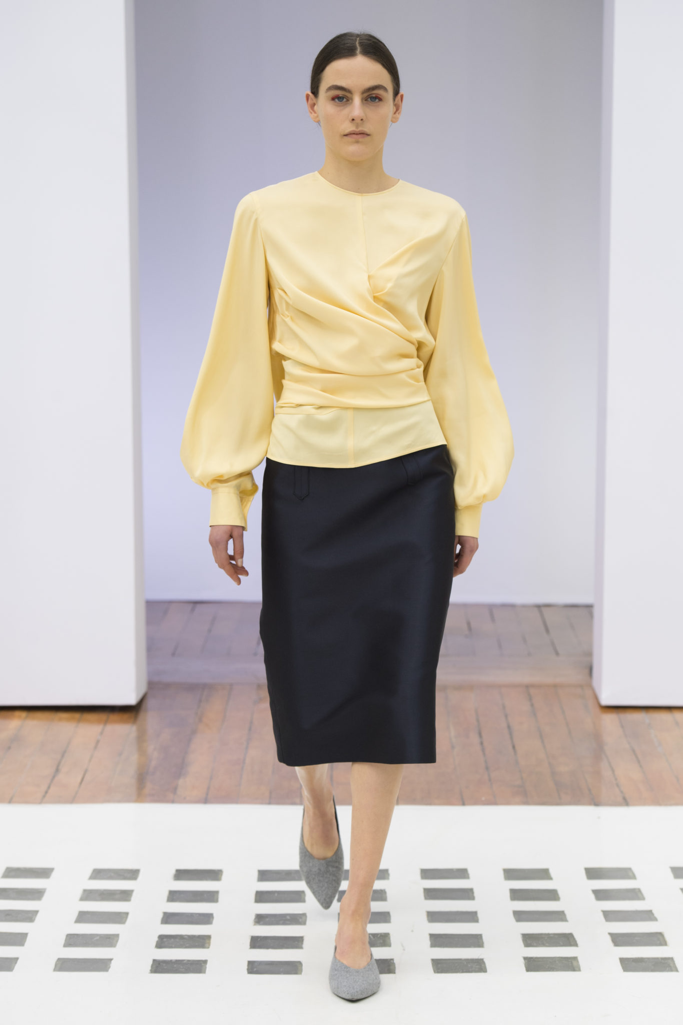 La femme CYCLAS porte un trench-coat W-Face beige à carreaux avec des manches cintrées, en attachant la ceinture ajustée à la taille créant un volume intéressant sur son dos. Sa garde-robe quotidienne correspond à un top en baby alpaga super doux vert pastel grisâtre avec un chemisier lilas et une jupe à ourlet asymétrique violet aux larges plis pour compléter le look. Elle portera une veste matelassée surdimensionnée par-dessus une robe en maille empilée avec une jupe plissée pour la journée, col roulé blanc optique et chemisier beige assorti d’une jupe longue au sol en sergé de soie brillant pour le soir. Et quand elle choisit un chemisier organdi rose pâle avec des détails de fourrure délicates.