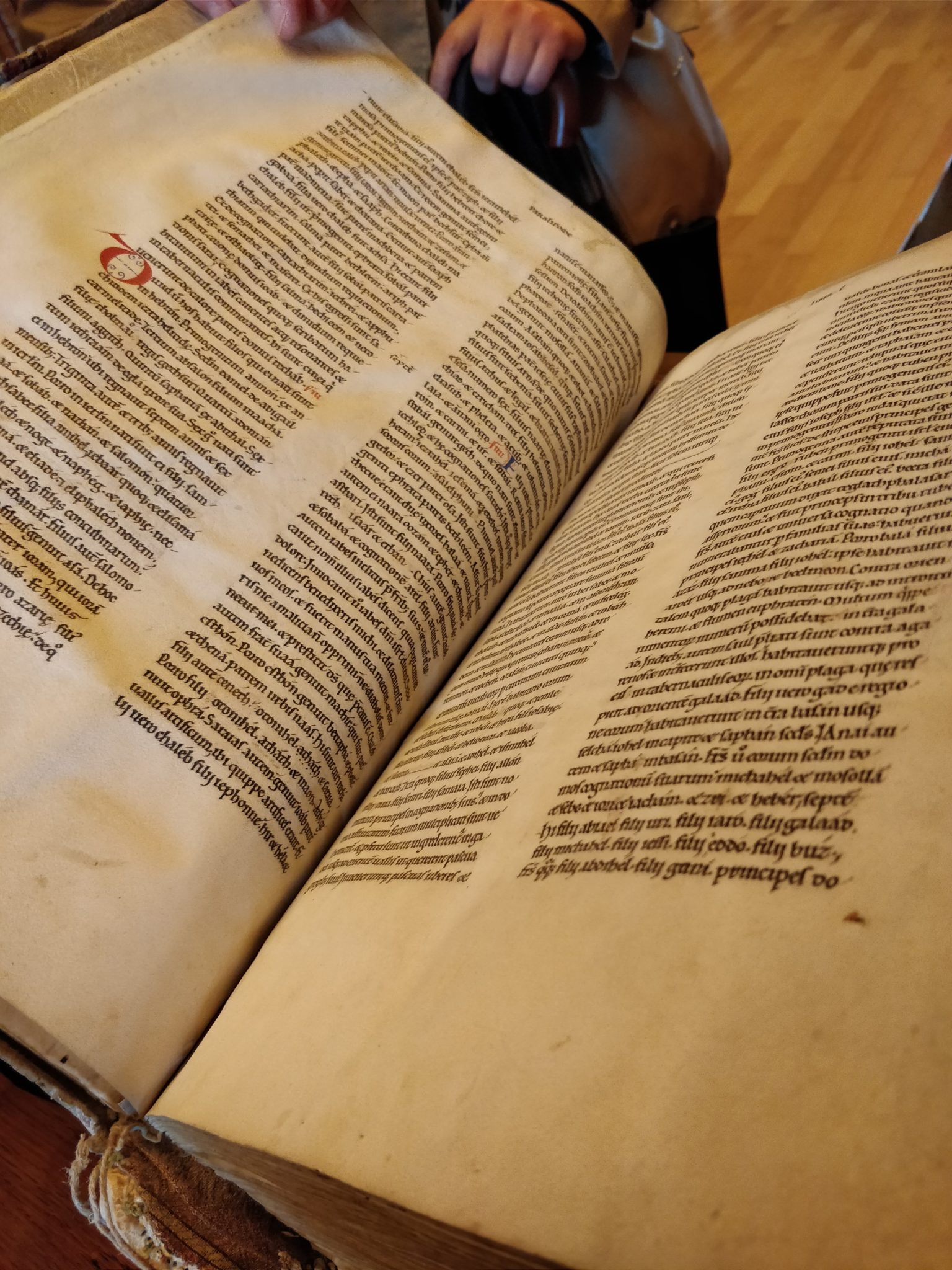 Nous nous dirigeons ensuite versla Grande Salle de la Médiathèque. La Grande Salle de la Médiathèque est un lieu historique présent dans l’ancienne Bibliothèque Municipale, situé près de la Cathédrale. Elle y abrite une collection de livres datant des XVIème, XVIIème et XVIIIème siècles.