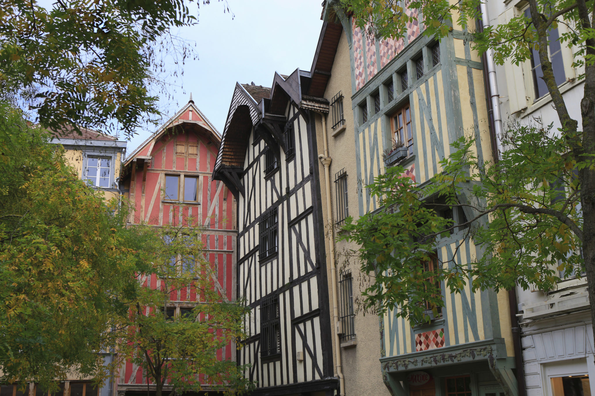 Avec sa farandole de façades multicolores, ses maisons à pan de bois tendrement blotties les unes contre les autres, son dédale de rues étroites, de venelles et de passages dérobés propices aux baisers volés, son passé qui surgit intact à chaque coin de rue, son chapelet d’églises romanes ou gothiques,ses jardins publics au charme délicieusement suranné, ses boutiques aux allures d’échoppes médiévales, son centre historique à la forme exacte d’un bouchon de champagne, son canal perdu et son fleuve emberlificoté, Troyes est une cité imprégnée de romantisme.