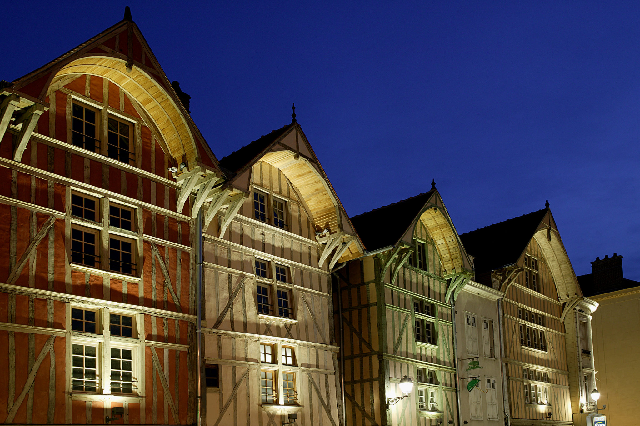 Troyes est, pour l’essentiel, une ville du XVIe siècle. Du «Beau XVIe siècle», comme on se plaît à dire ici. La forme actuelle de la ville, tant sur le plan architectural qu’urbanistique, date de cette époque charnière entre le Moyen- âge et la Renaissance. Un grand incendie fait alors place nette, mais l’on reconstruit quasi à l’identique et au même emplacement les habitations dévorées par les flammes. Les plus riches Troyens optent pour un matériau moins inflammable, d’où cette juxtaposition que l’on observe aujourd’hui encore de maisons à pans de bois venues du peuple et d’hôtels particuliers en pierre issus de la bourgeoisie. On tient là le code génétique de Troyes, son identité profonde.