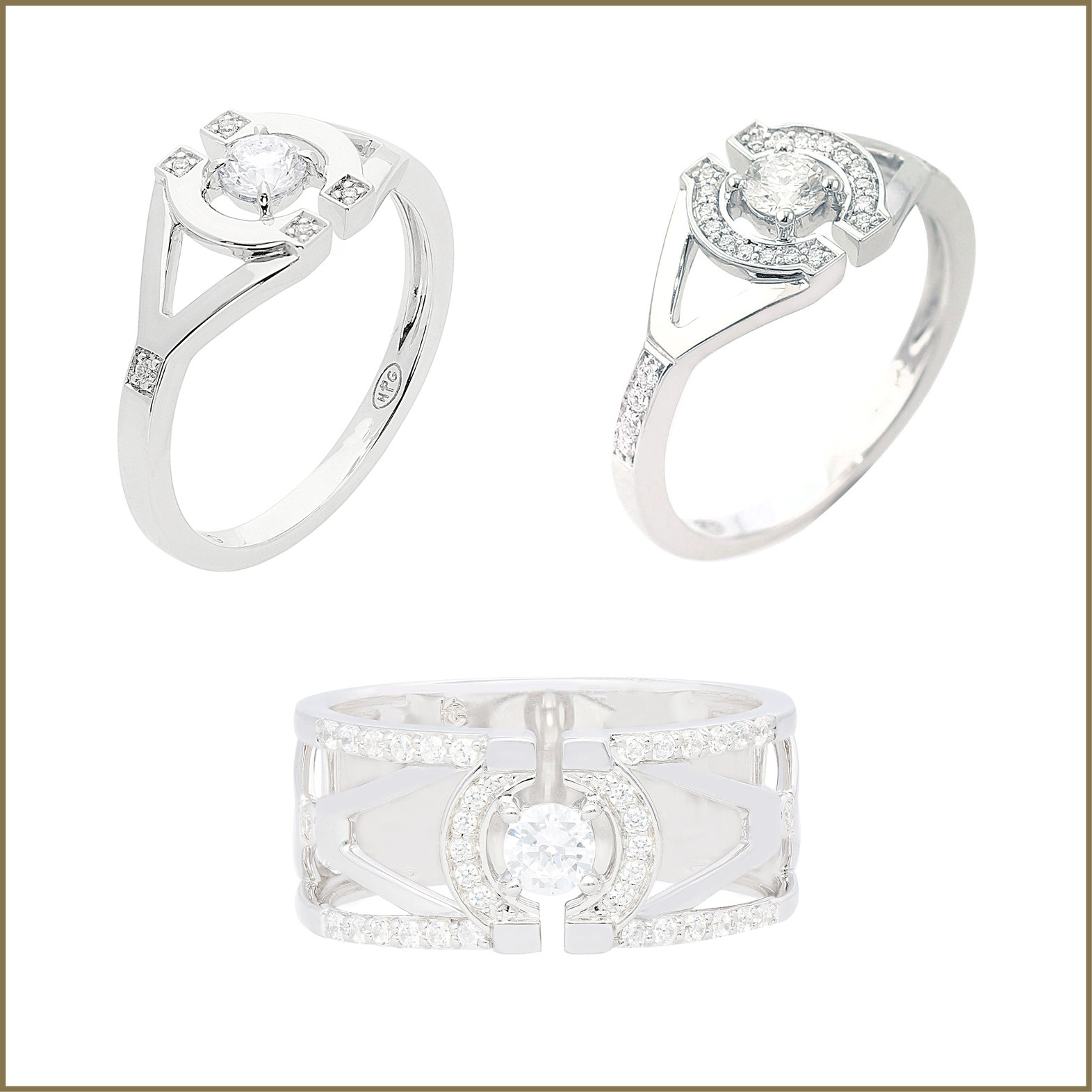 Reprenant les codes d’un jardin à la française, ces bagues dévoilent un travail sur l’équilibre des formes, des volumes et des courbes, où seule la composition florale varie. L’or blanc prend la forme d’allées de buis plus ou moins larges tandis que jeux d’eaux et fontaines centrales se métamorphosent en diamants.