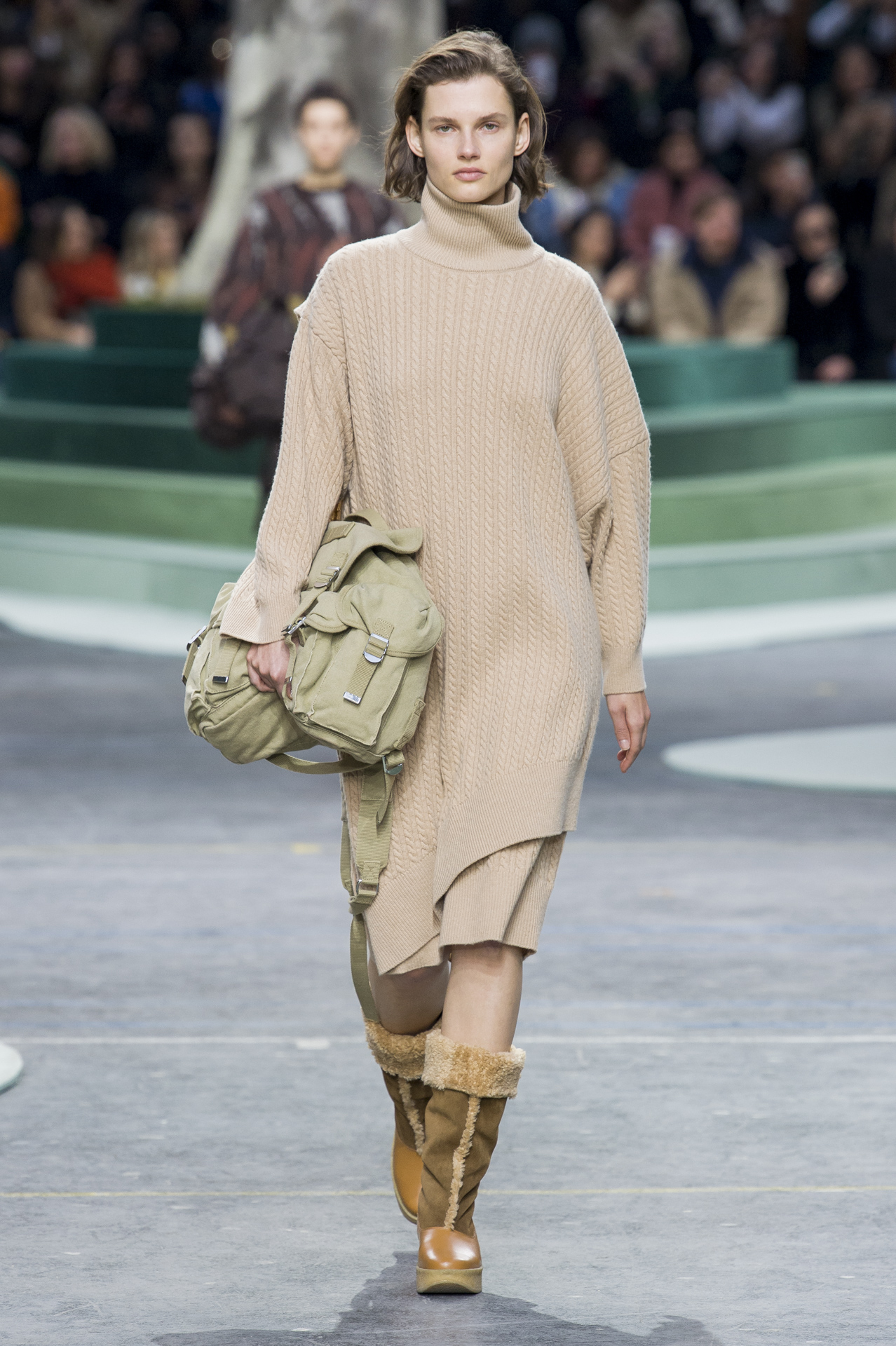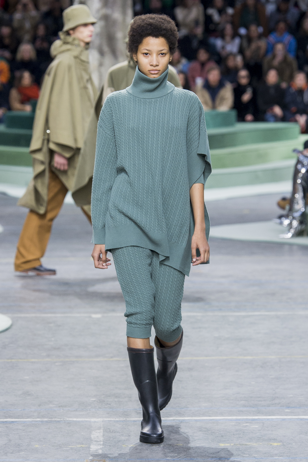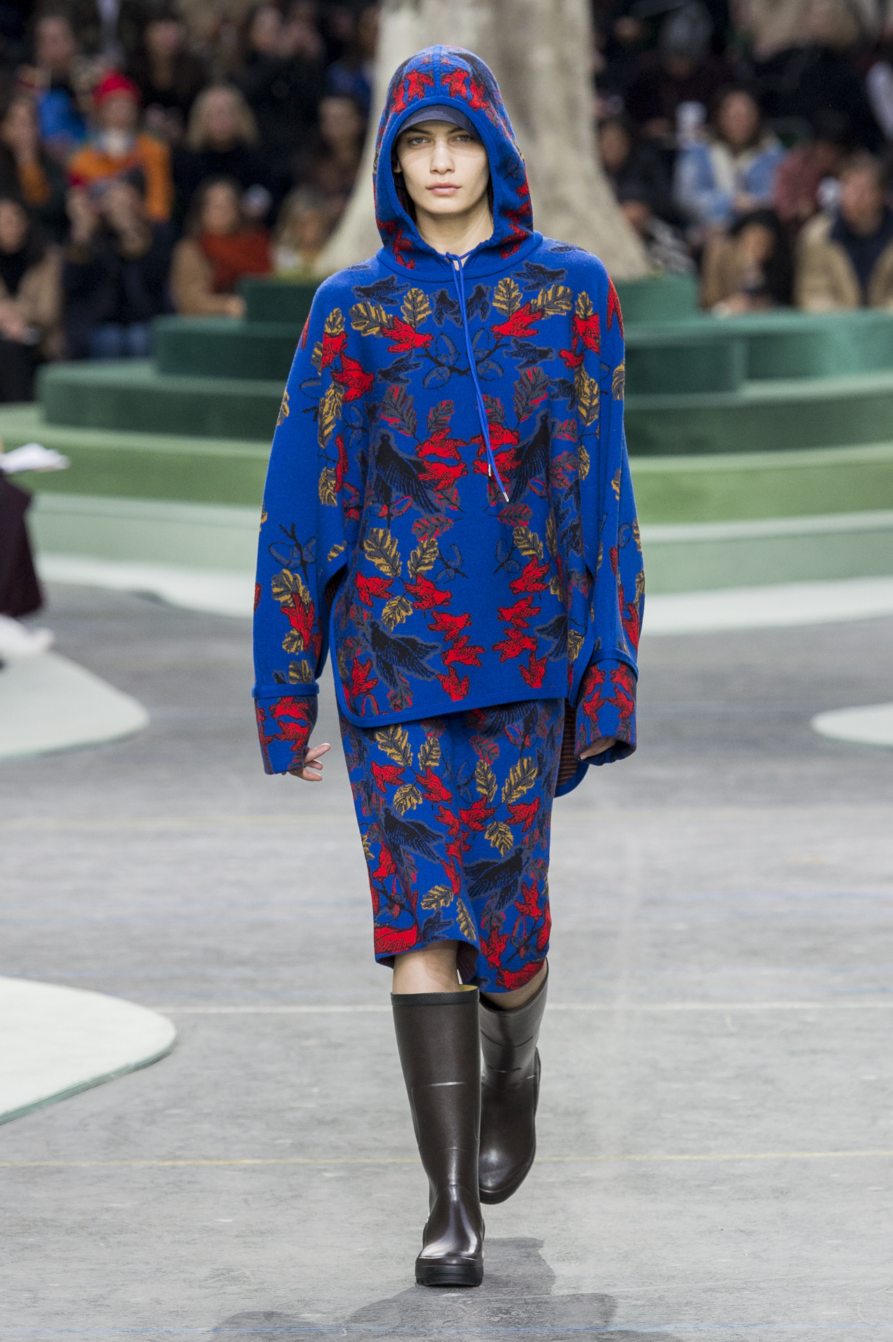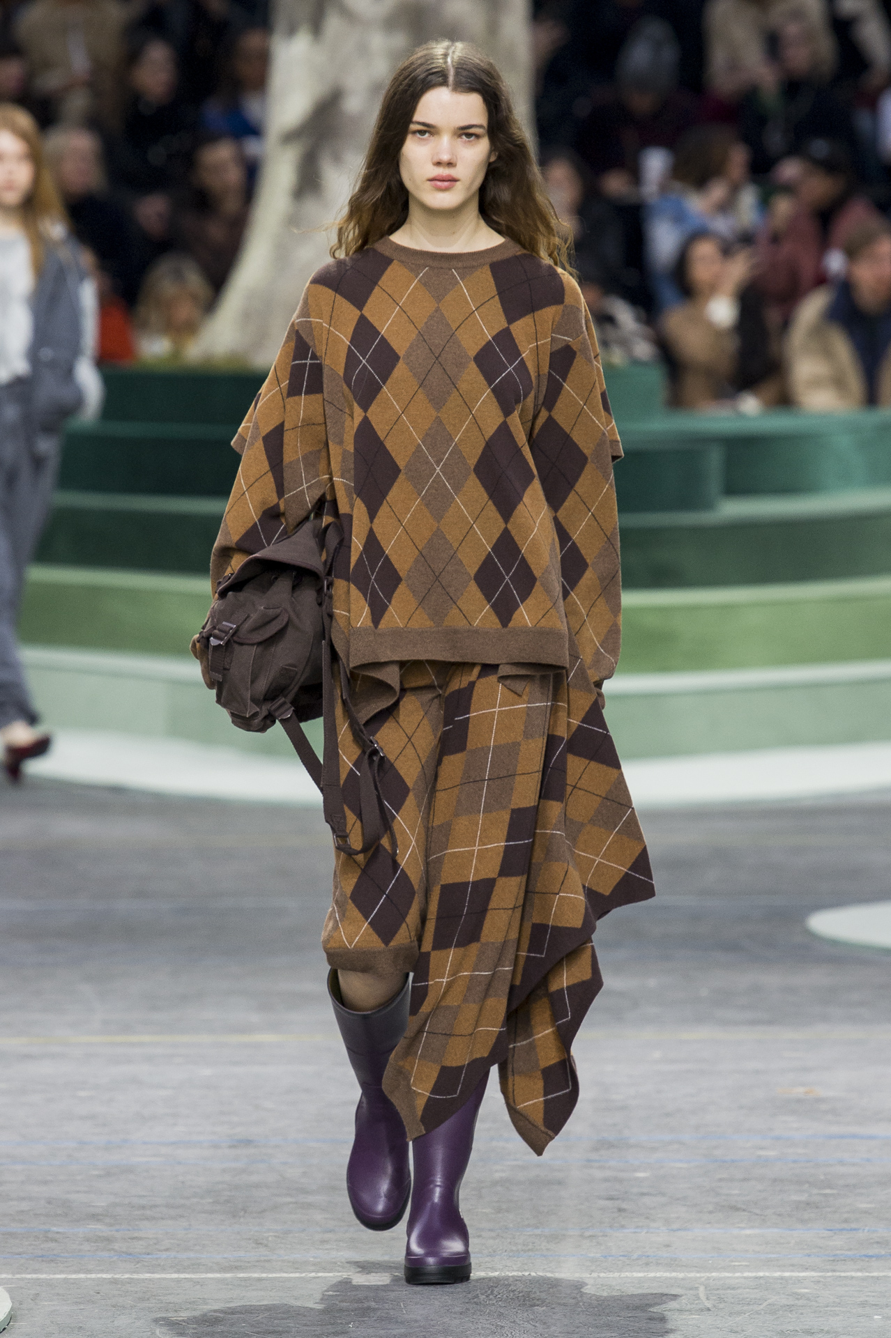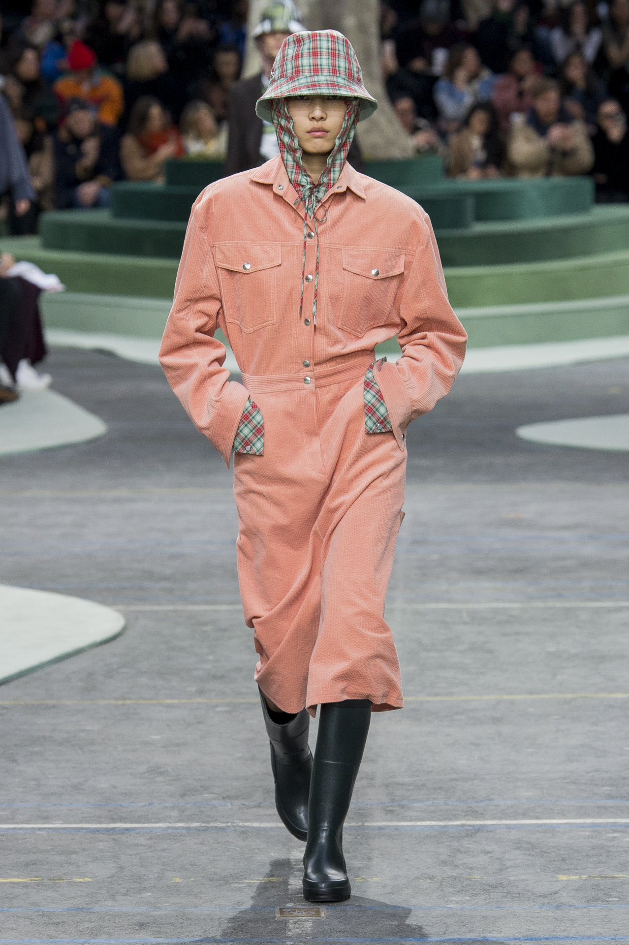 Cette fluidité apparaît dans un remix urbain de pièces « héritage » : des matières réconfortantes, comme un papier peint ou une couverture dans une vieille maison de vacances, sont travaillées de façon enveloppante et épurée. Les jeux de Prince de Galles recolorés et les motifs écossais façon carreaux de chemise flirtent avec le nylon, les coupe-vent sont réversibles, le sac à dos multipoches est en toile de coton ultralégère, et les bottes, en collaboration avec Aigle, se prêtent autant à la ville qu’à la campagne.