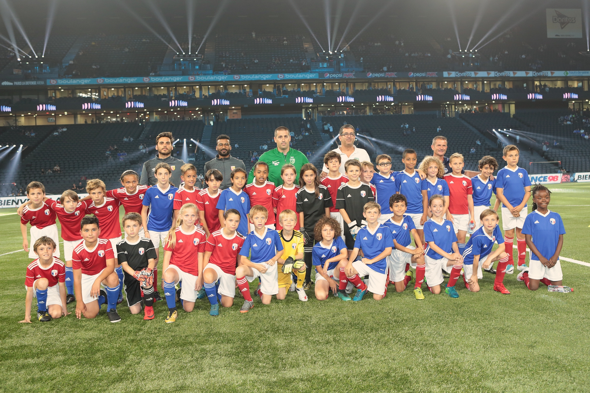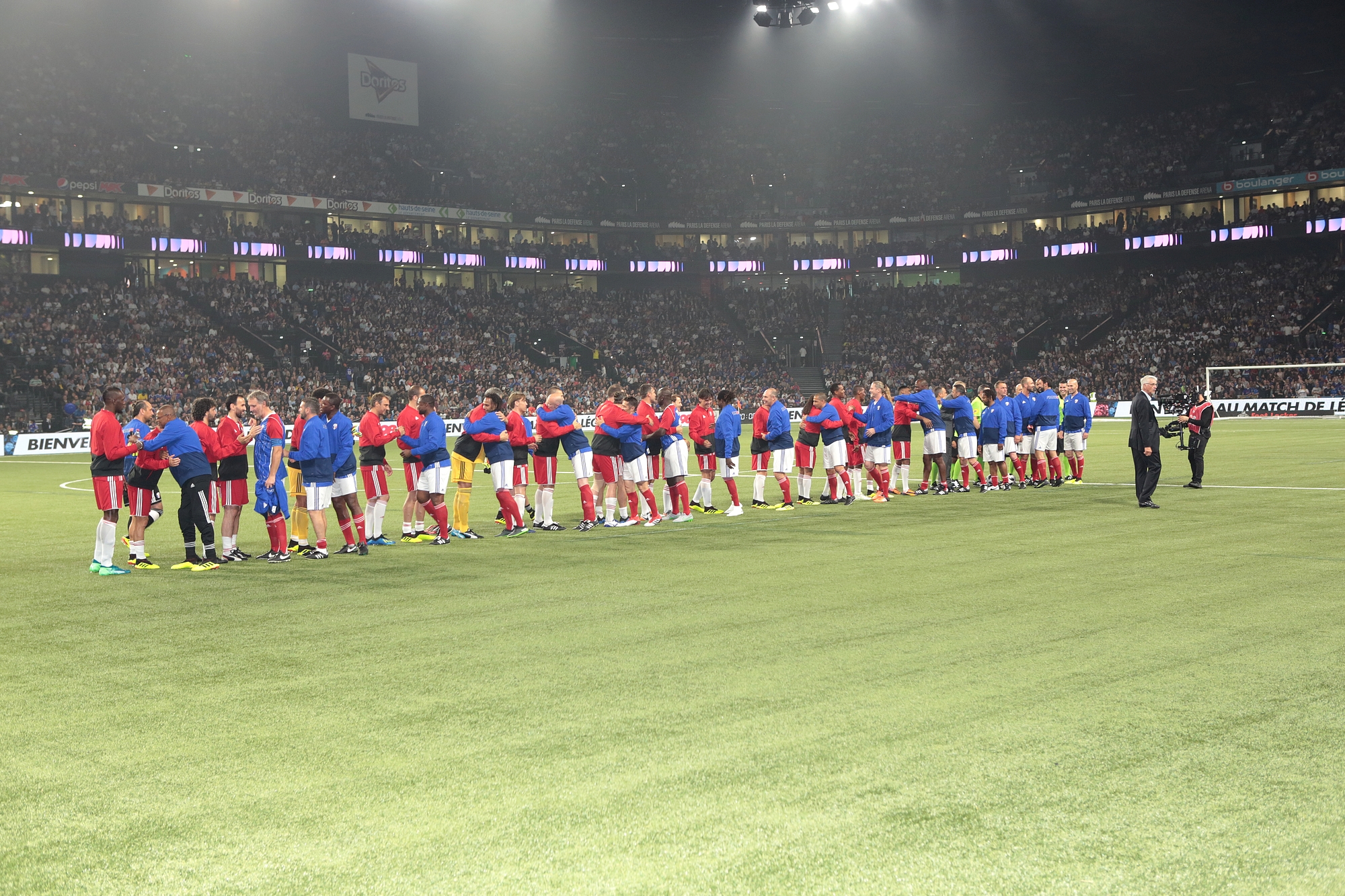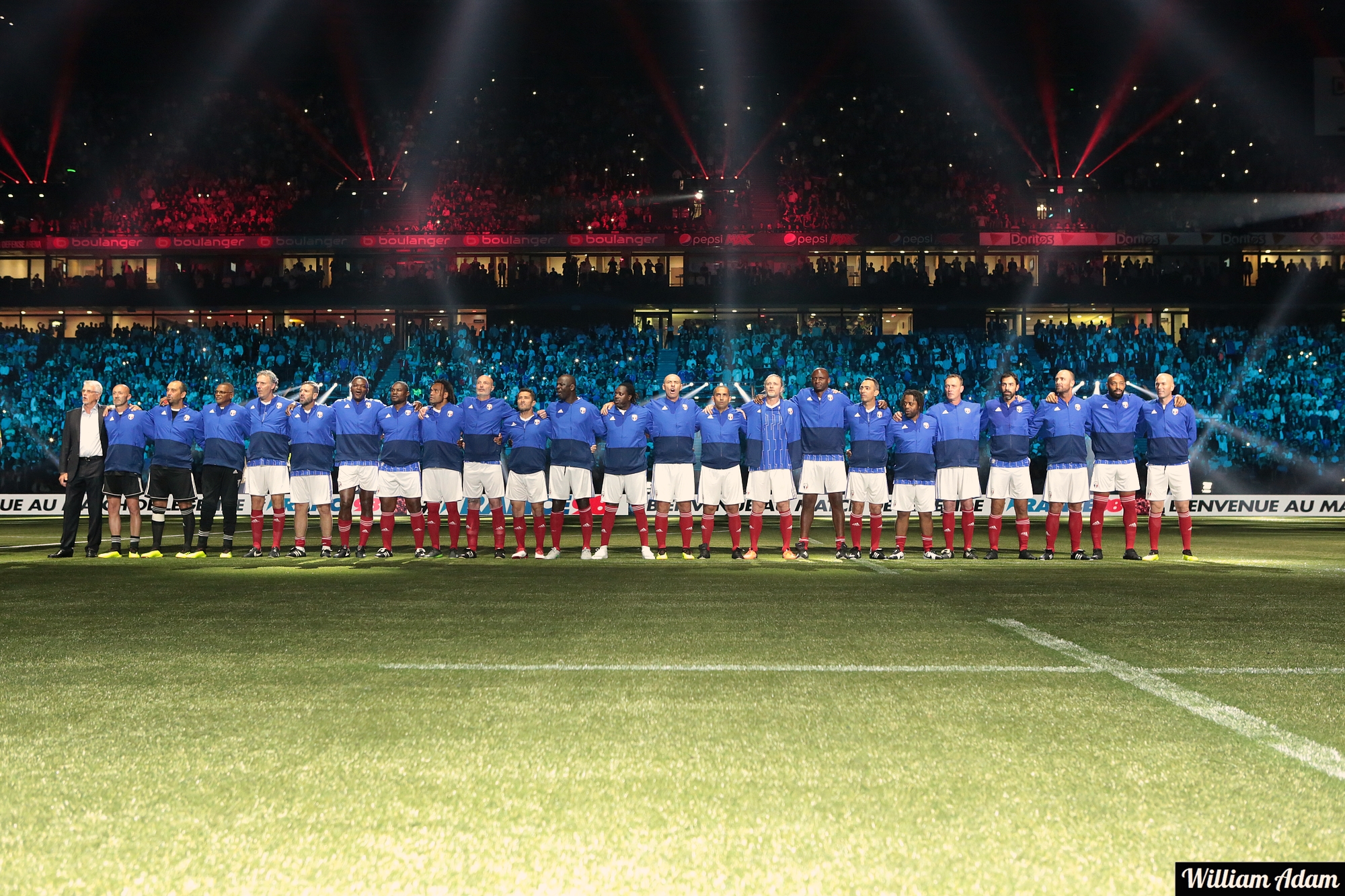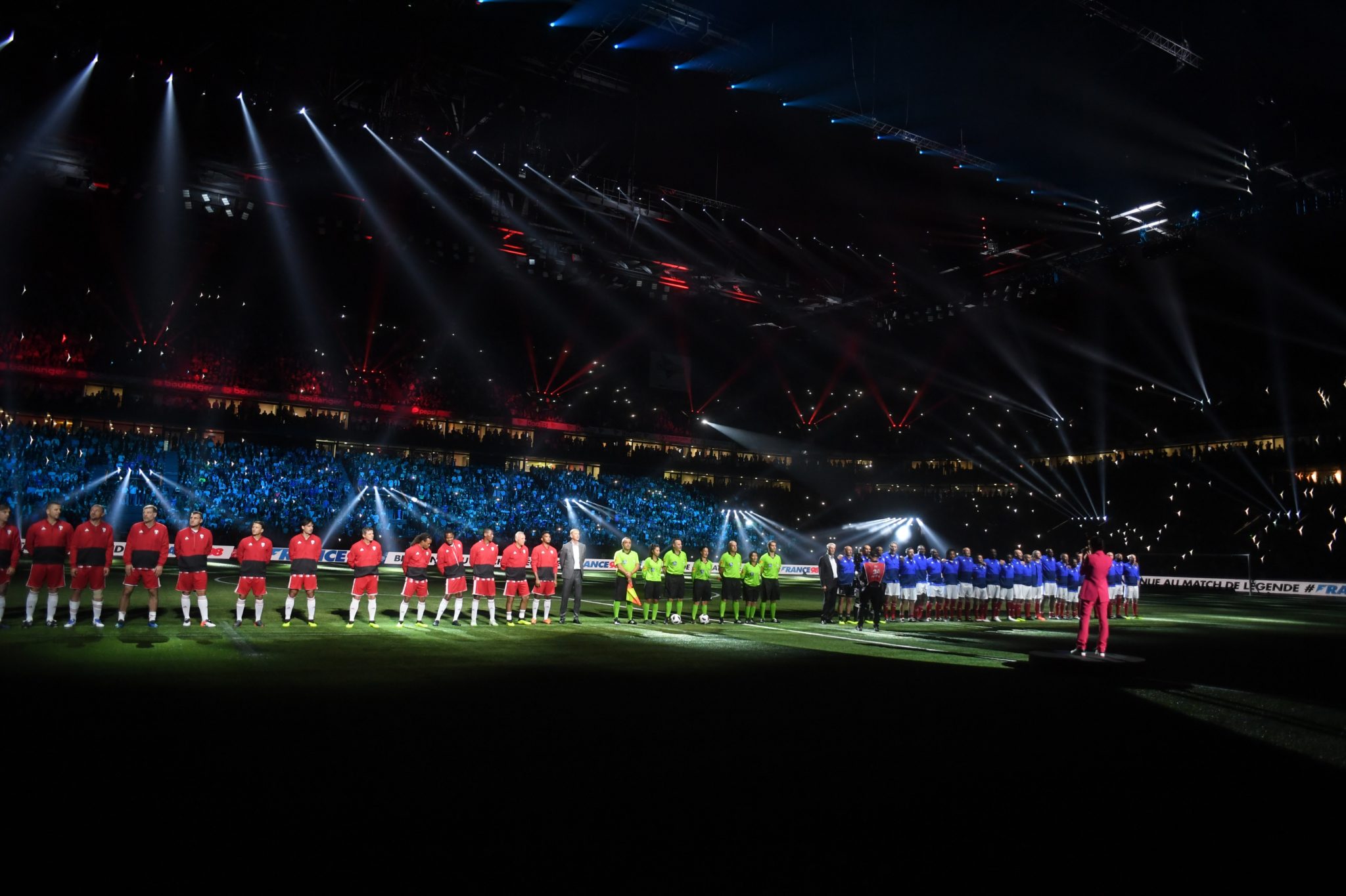 C’est dans une U Arena de la Défense pleine à craquer et remplis des personnalités les plus influentes de France, qu’un match d’exception a eu lieu. Maison Mumm a commémoré la plus grande victoire de l’histoire du sport français et invité Usain Bold (égérie Mumm) et les plus grands joueurs internationaux de la coupe du monde de foot FIFA 98 à se mesurer aux 27 joueurs retenus en 1ere sélection par Aimé Jacquet.