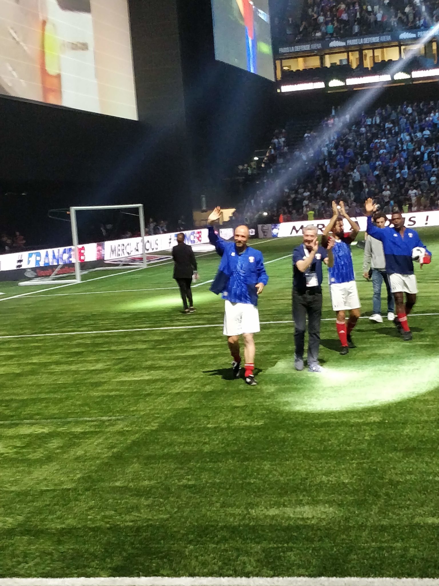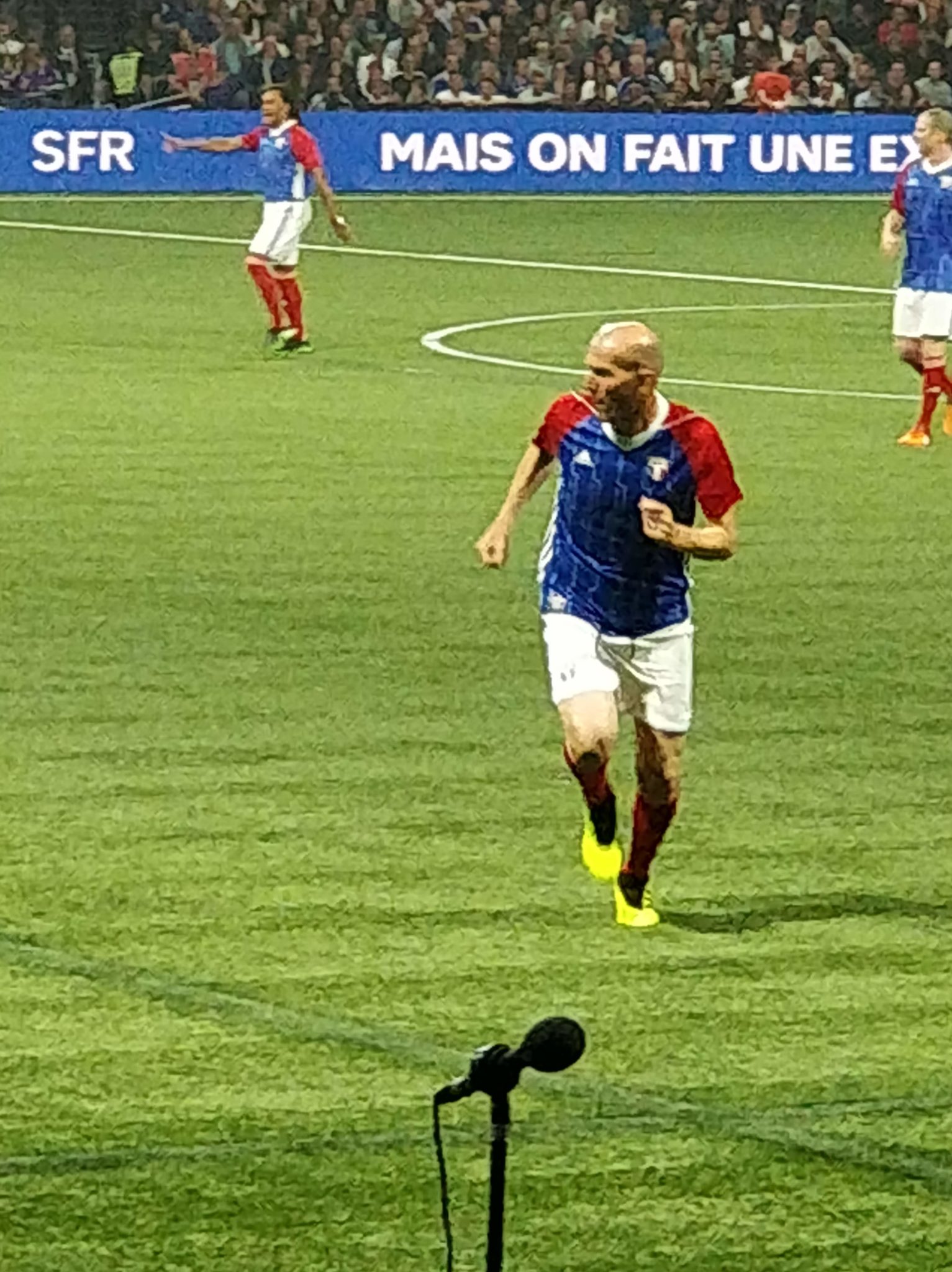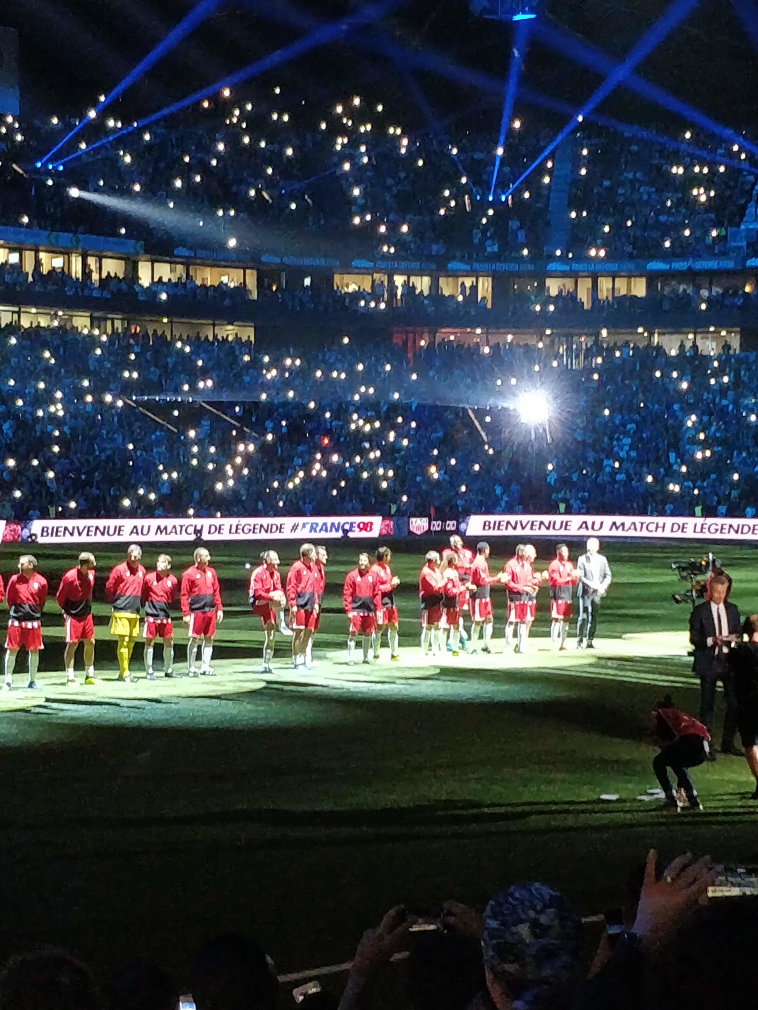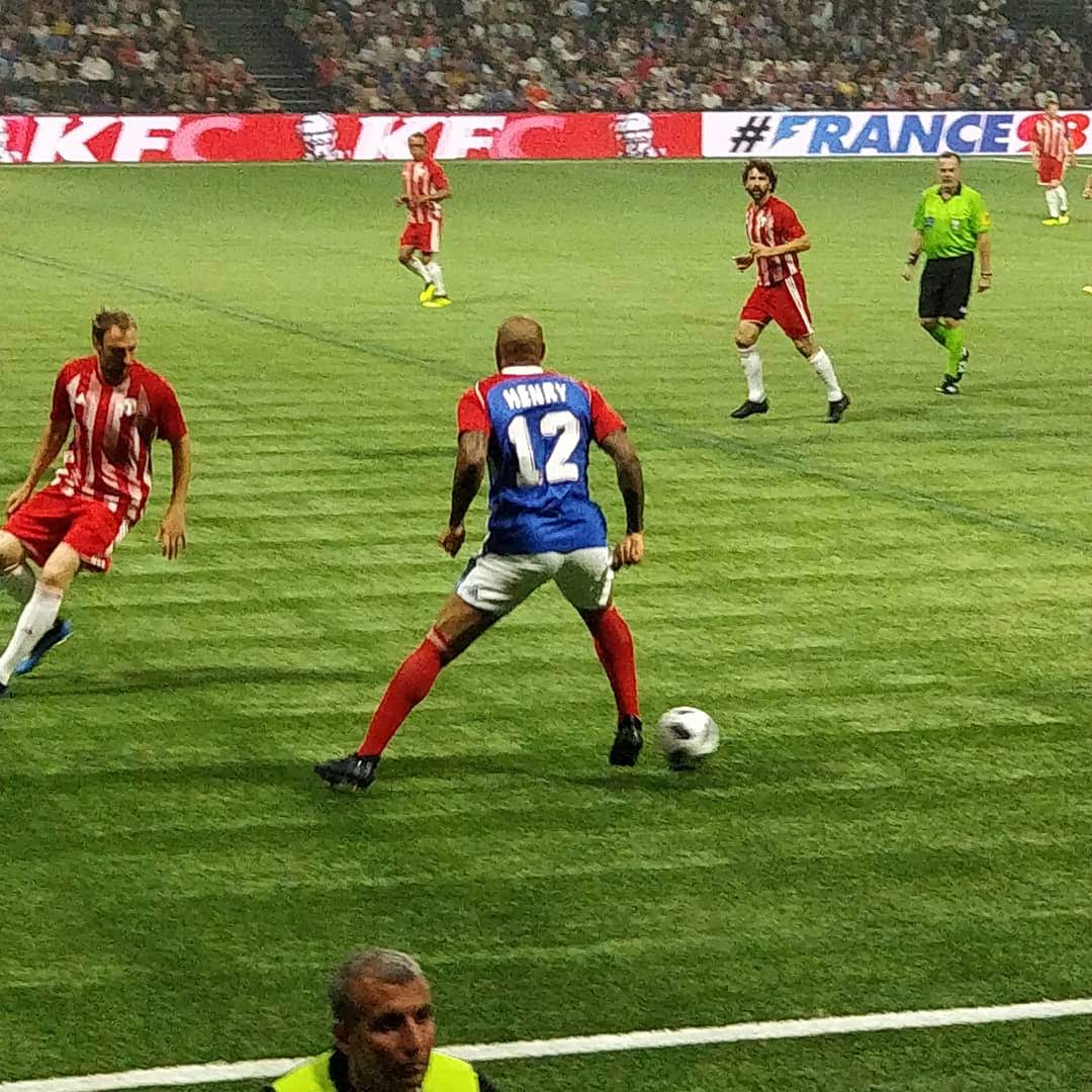 Nous étions présents et n’avons ratés aucun moment de cette soirée magique où Zidane, Titi Henry ou encore Lizarazu ont brillés sur la pelouse pour notre plus grand plaisir. Le moins que l’on puisse dire c’est que ces légendes ont de beaux restes : petits ponts, accélérations, coup francs millimétrés. Côté compétition l’équipe des stars de la Fifa 98 avait un sacré niveau ! Usain Bolt est un grand passionné de foot, il collabore notamment avec le Borussia Dortmund. C’était très interessant de le voir évoluer sur le terrain. Mais c’est finalement France 98 qui a gagné grâce à ses trois buts dont un magnifique but de l’incroyable Zizou !