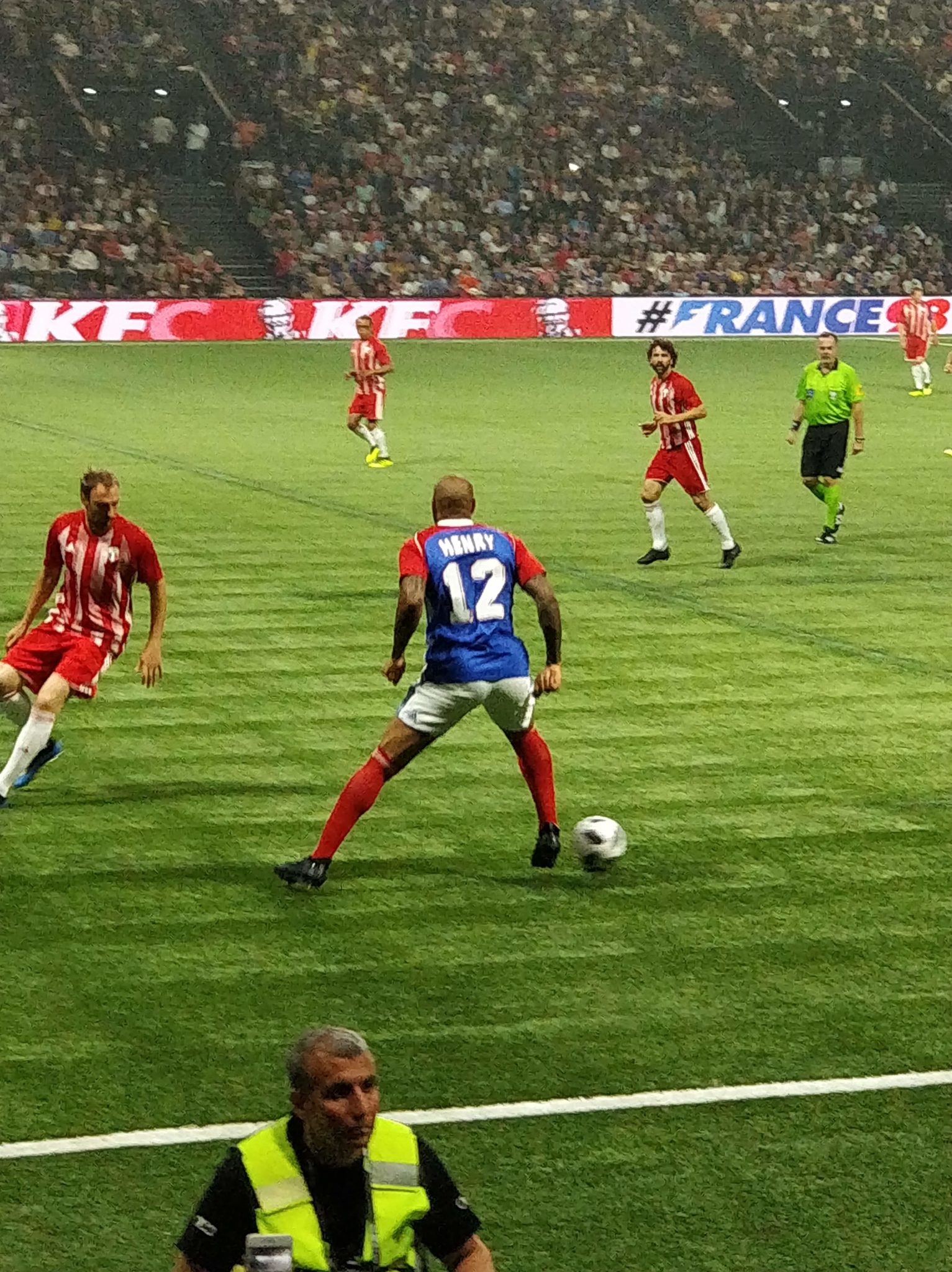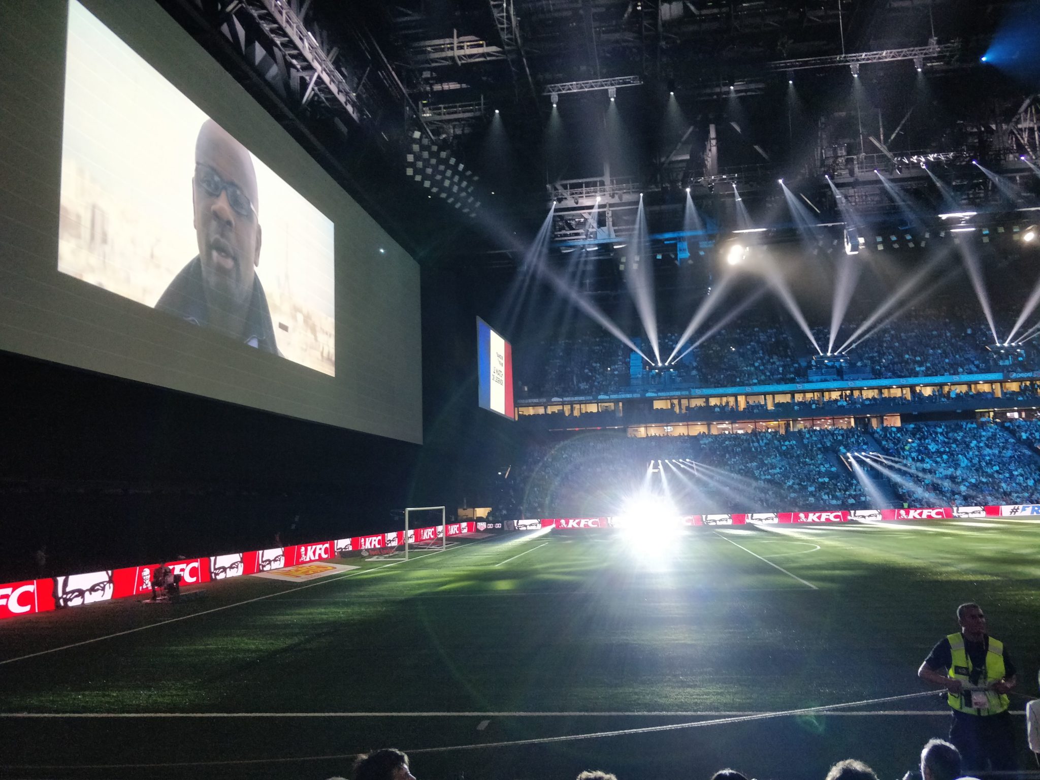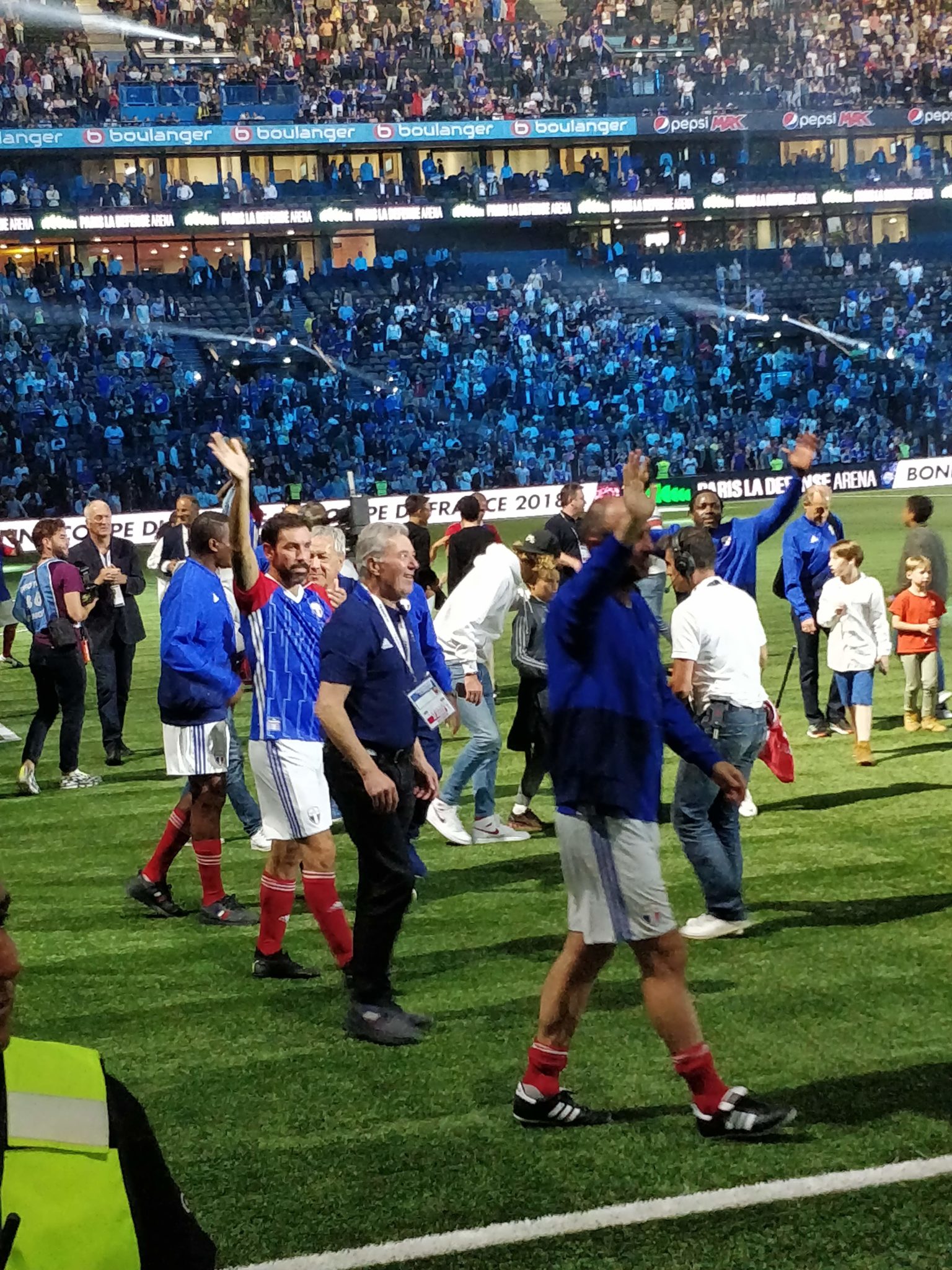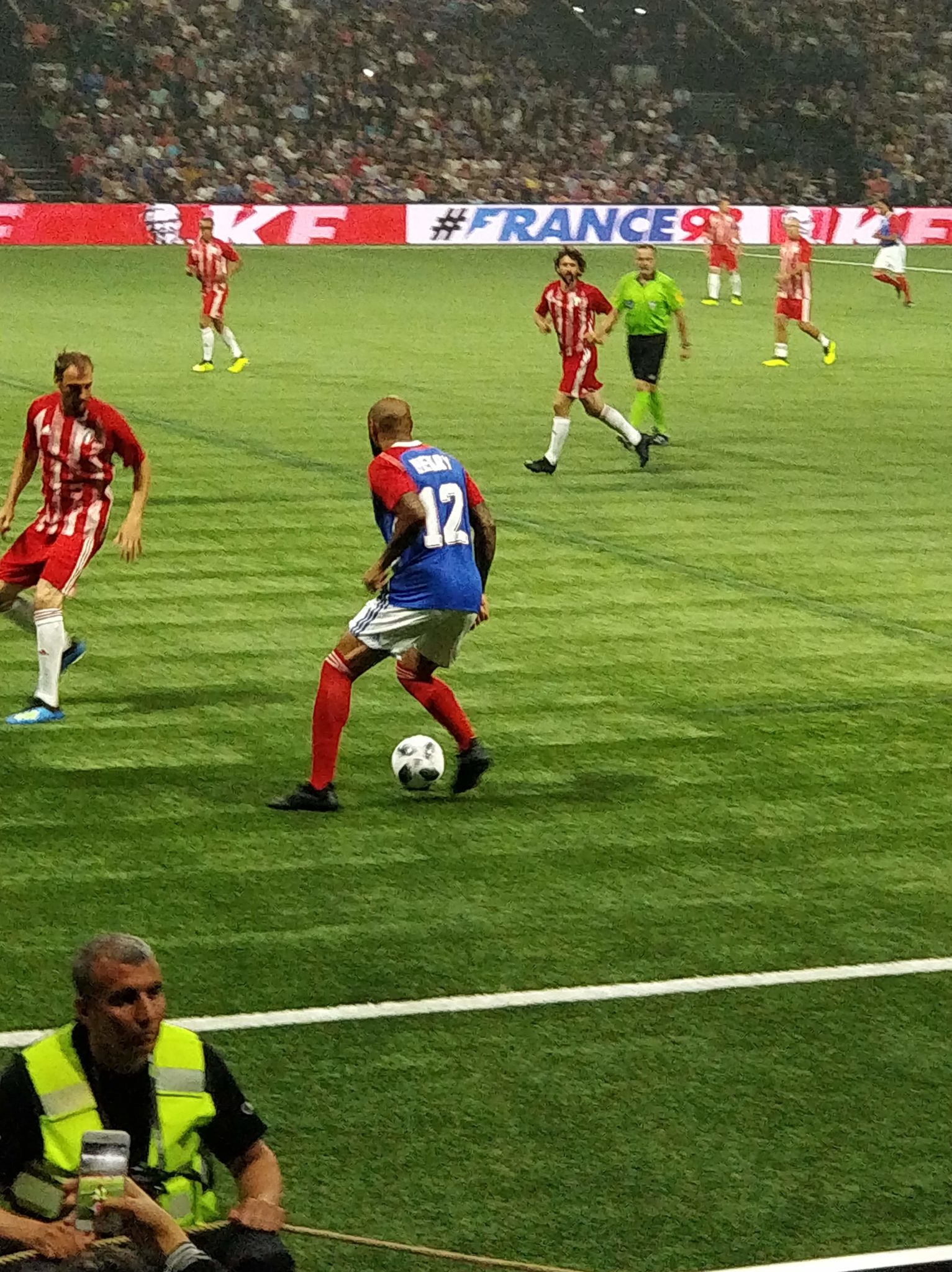 Nous étions présents et n’avons ratés aucun moment de cette soirée magique où Zidane, Titi Henry ou encore Lizarazu ont brillés sur la pelouse pour notre plus grand plaisir. Le moins que l’on puisse dire c’est que ces légendes ont de beaux restes : petits ponts, accélérations, coup francs millimétrés. Côté compétition l’équipe des stars de la Fifa 98 avait un sacré niveau ! Usain Bolt est un grand passionné de foot, il collabore notamment avec le Borussia Dortmund. C’était très interessant de le voir évoluer sur le terrain. Mais c’est finalement France 98 qui a gagné grâce à ses trois buts dont un magnifique but de l’incroyable Zizou !