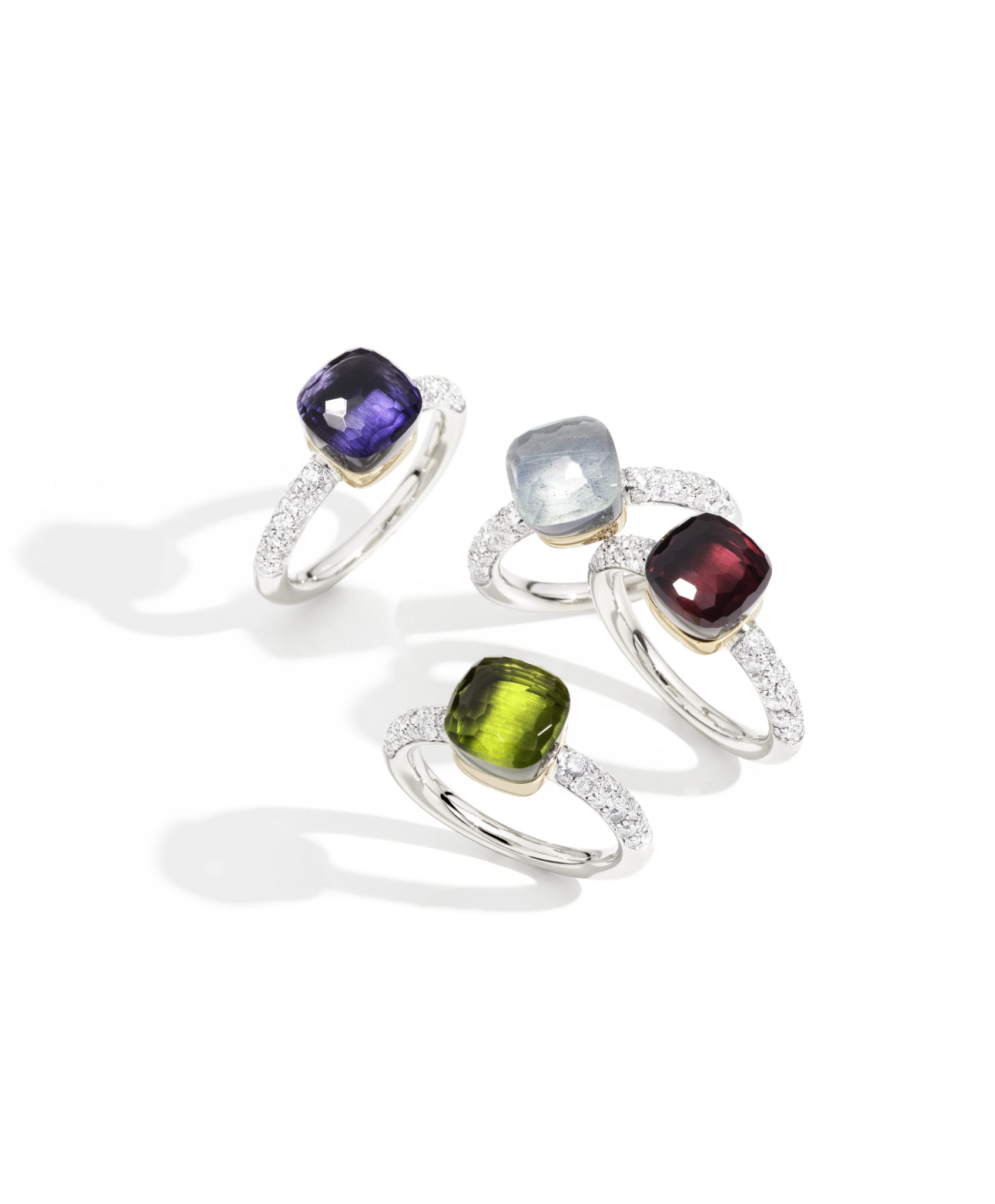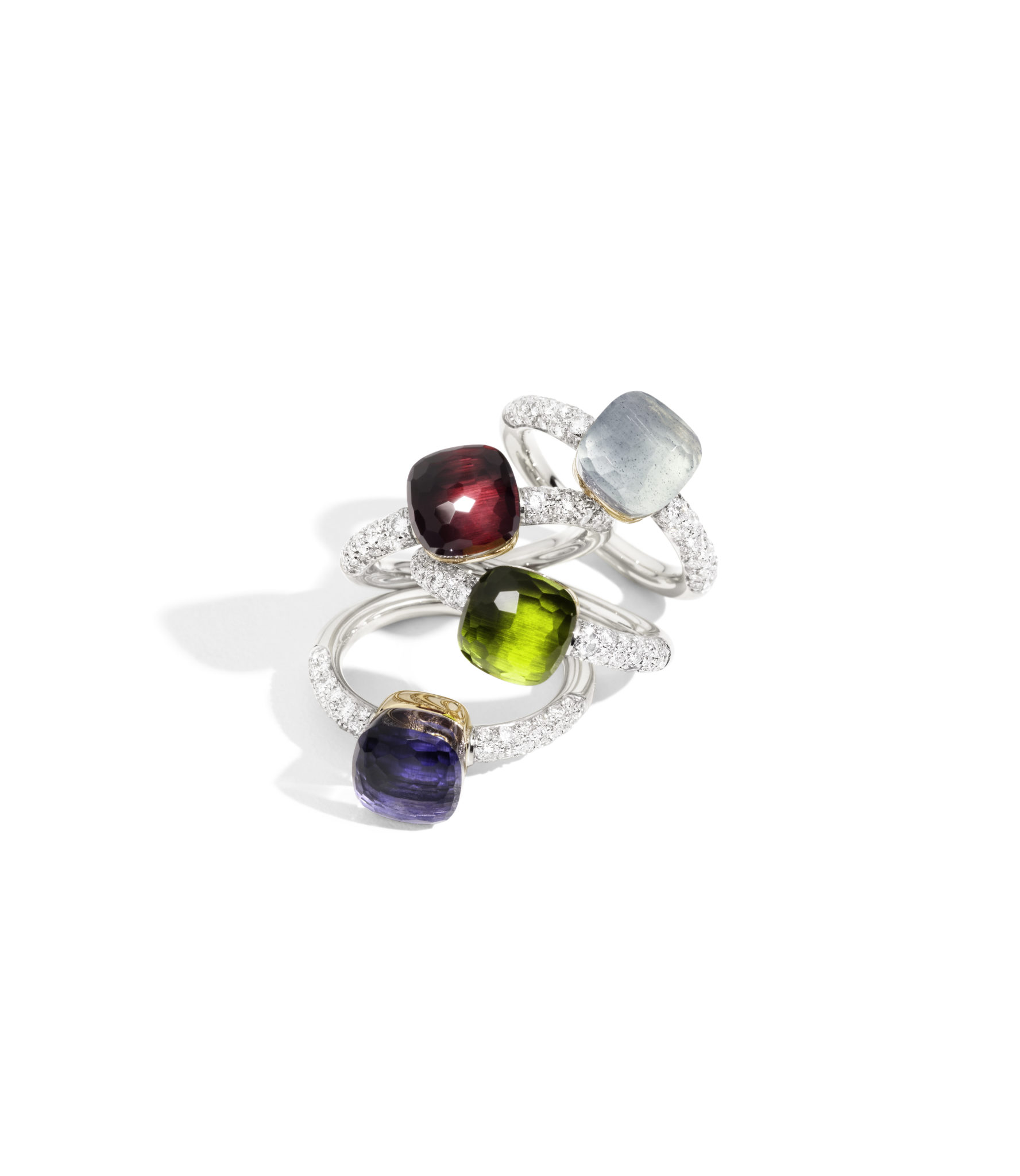 Depuis 2001, les collections Nudo sont imaginées pour exhaler les tonalités de leurs pierres précieuses. Nudo offre à chaque femme une palette exceptionnelle de pierres de couleurs et de tailles différentes et leur permet de les mixer et de les matcher entre elles. Cette libre expression de la personnalité, du caractère et de l’humeur de chacune est la signature du joaillier milanais. Affaire de femmes, Pomellato cultive la singularité féminine par ses joyaux qui sont les complices intimes de chaque état d’esprit, de chaque style.
