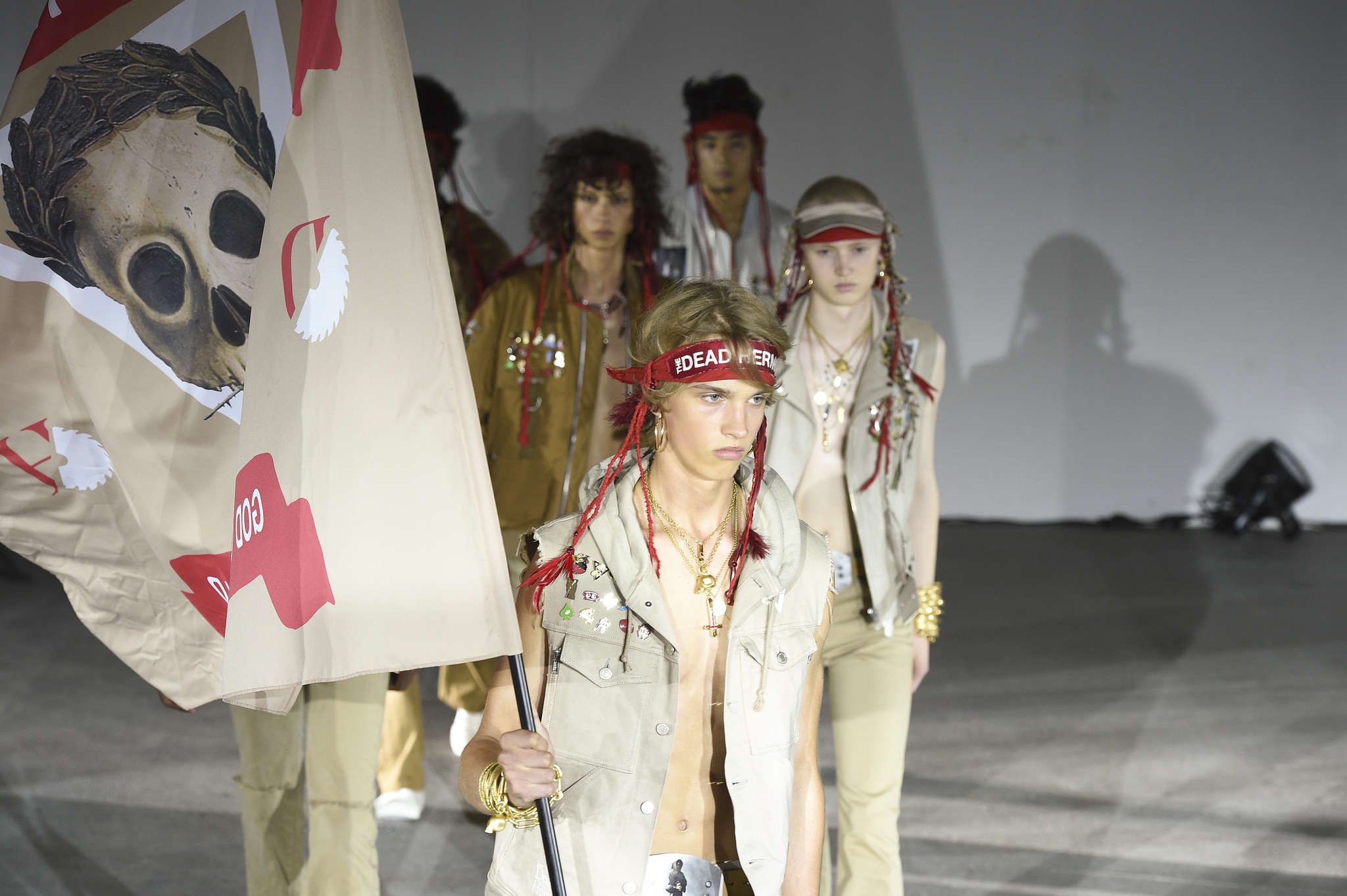 1968-2018 : cinquante ans sont passés, et pourtant les images de cette révolte restent indélébiles. À rebours, c’est un fantasme parisien rimant avec Godard et Nouvelle vague qui alimente l’esthétique de l’étudiant européen « ensorbonné« . Elle permet à la jeunesse de ressentir la nostalgie d’une époque inconnue et de s’imaginer en constante rebellion, bien à l’abri?Toutes les revendications ne sont pas politiques, engagées: beaucoup sont encore fraîches et candides. Les couleurs pastels, les imprimés floraux de Valentino ou Acne Studio semblent inviter à cette légèreté. Une légèreté insoutenable pour Walter Van Beirendonck ,Undercover ou Facetasm qui redessinent à coup de fluo le manifeste d’un mai 2018. Entre casseurs et jolis coeurs, cette deuxième journée explore le répertoire de la bonne éducation.