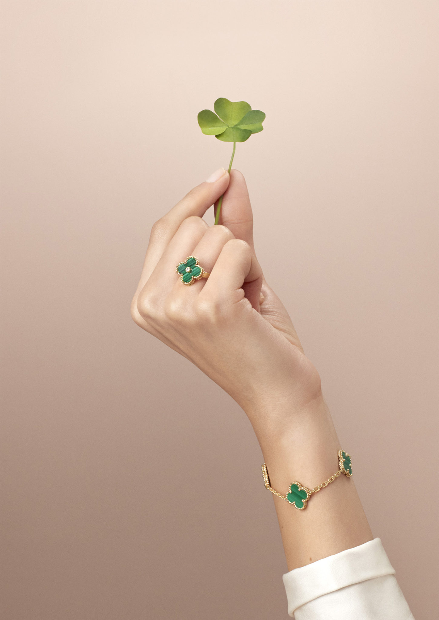 « Pour avoir de la chance, il faut croire à la chance », aimait à dire Jacques Arpels, neveu d’Estelle Arpels. Valeur chère à la Maison, la chance a souvent guidé ses pas et inspiré certaines de ses créations les plus emblématiques. Les trèfles à quatre feuilles apparaissent ainsi dès les années 1920 dans les archives de Van Cleef & Arpels, côtoyant au fil du temps bijoux talismans en bois, charms et fées bienveillantes. Collectionneur dans l’âme, Jacques Arpels cueillait des trèfles à quatre feuilles dans le jardin de sa maison à Germigny-l’Évêque, afin de les offrir à ses collaborateurs avec le poème anglais « Don’t Quit », invitation à toujours garder espoir.