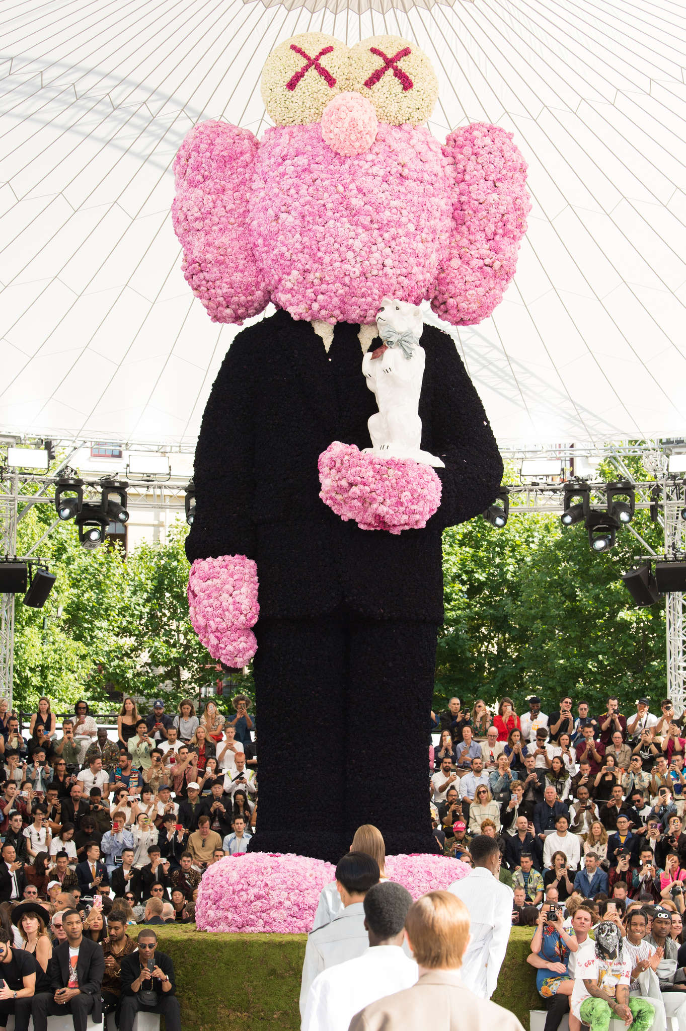 Pour faire son entrée chez Dior, Kim Jones offre tout un cours sur l’histoire du chien de Monsieur Dior. Une rhétorique amusante qui devient une excuse pour explorer les archives de la maison. La filiation est faite, dans ce monde de ballon Koonesque . Comme dans l’art contemporain; l’industrie de la mode trouve un équilibre entre création et vente. Pas de tabous: le logo fait vendre, alors il s’imprimera sur des t-shirts légers. A$ap Rocky Adore,-ADior. La mode est vivante, amusante et frivole. Ce sont les apparats de sa théorisation et de sa marchandisation.