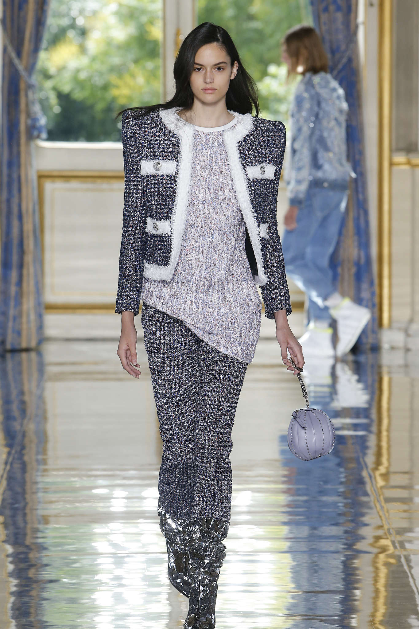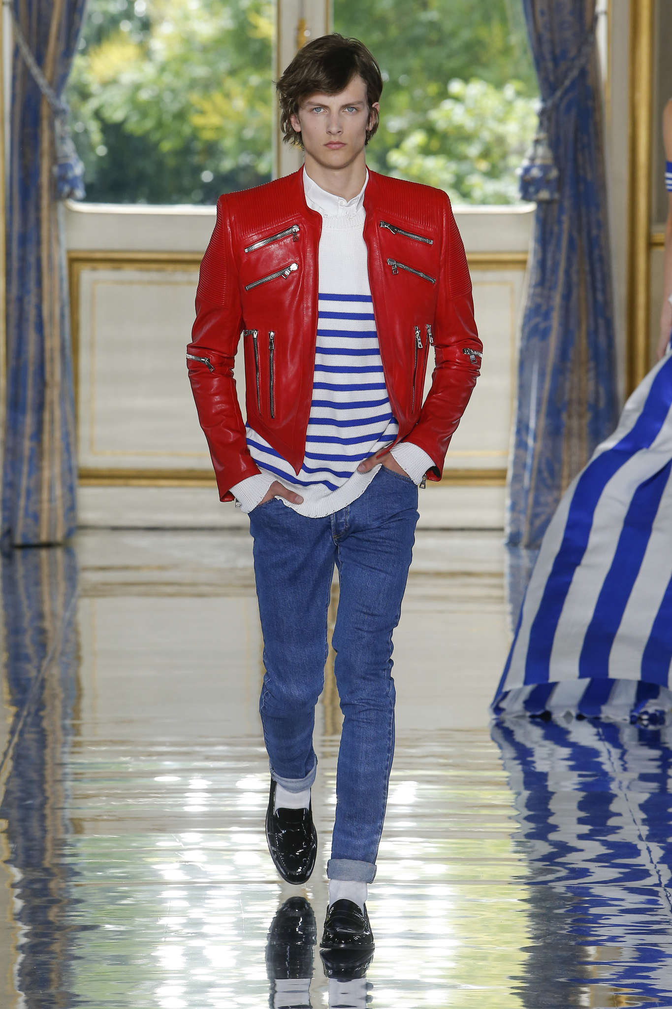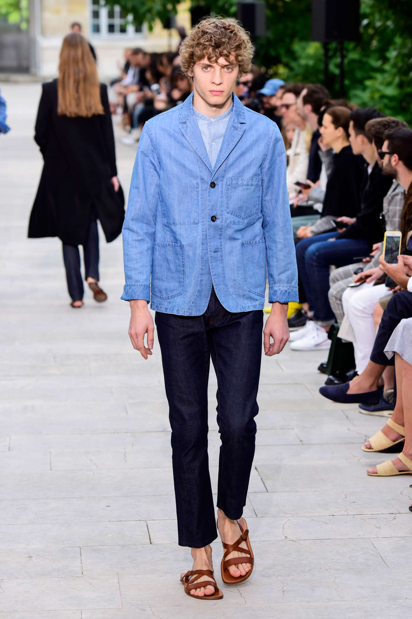 Je me souviens d’une photographie laissée sur une table basse, d’une image de « moi enfant »…Les feuilles mortes se ramassent à la pelle. La chanson mélancolique des souvenirs hante tous les communiqués de mode. Une volonté de filiation , un besoin de s’inscrire dans un temps long, dans une famille par des références. Le vêtement est un moyen de dire son appartenance et de faire sens dans une histoire de la mode. Toutes les maisons ne sont pas égalitaires face au droit de devenir souvenir. Les débutants doivent se faire un nom, puis se légitimer pour pouvoir s’intellectualiser et classer leur patrimoine. Des pièces « références » traversent cette journée. Les combinaisons garagistes Agnès B. , la petite veste en tweed Chanel… » des références ». Certaines pièces, ont tant circulées, qu’il seraient indécent de s’en revendiquer le propriétaire. Comme le jean, le grand regret de Saint Laurent. Une pièce qui semble faire souvenir à divers titres de Balmain à 1017 ALYX 9SM, en passant par Officine Générale.