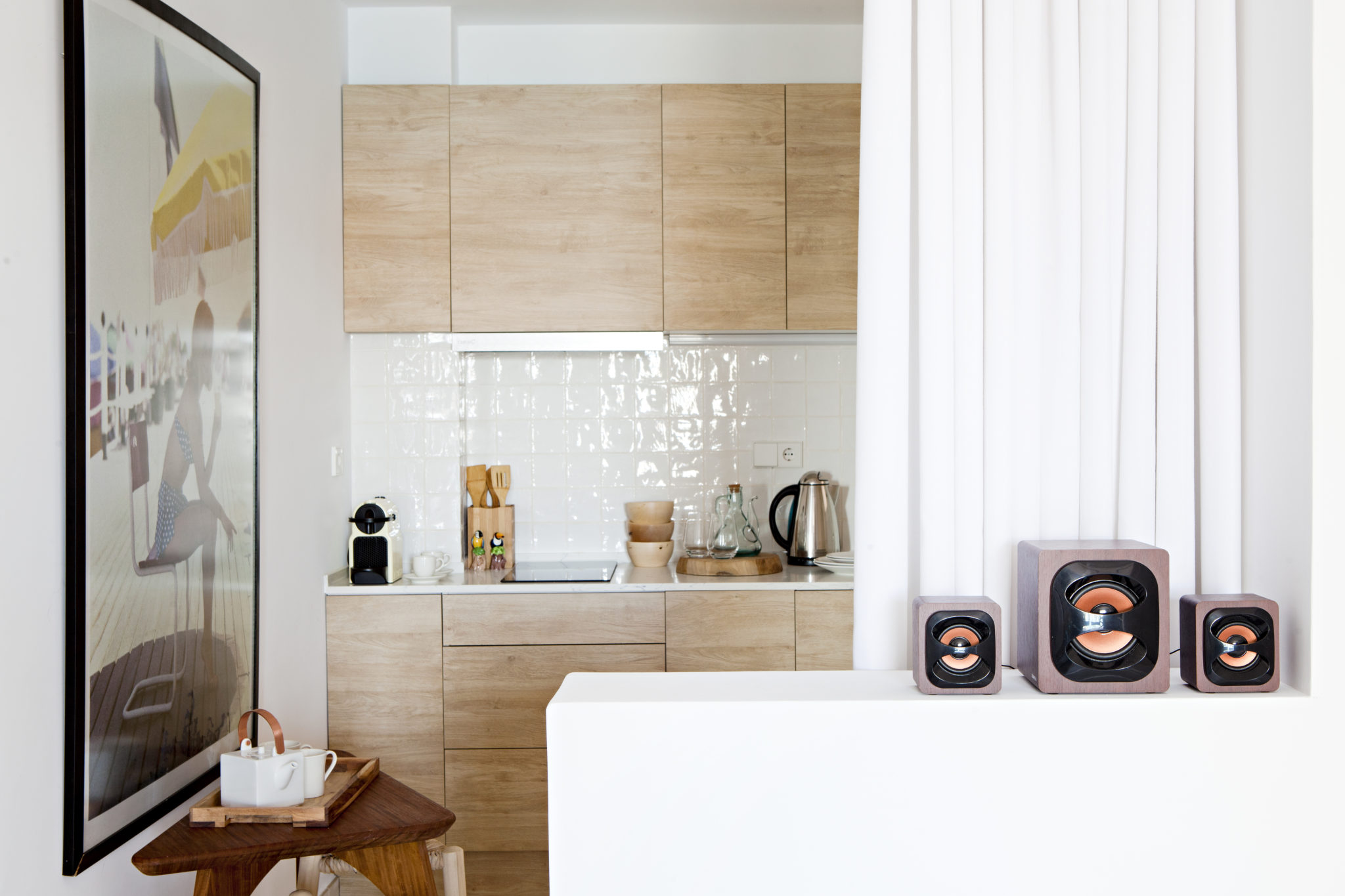 Les voici arrivés dans leur appartement privé, une suite toute en enfilade, au design contemporain, épuré. Des matériaux bruts, francs, honnêtes : carrelages, parquets boisés. Les murs d’un blanc immaculé laissent deviner la clarté des journées ensoleillés. Un salon, dans son prolongement, la chambre à coucher, la salle de bains d’où émane une fragrance subtile signée Molton Brown, la cuisine entièrement équipée où le jeune couple imagine déjà le café fumant du petit matin.