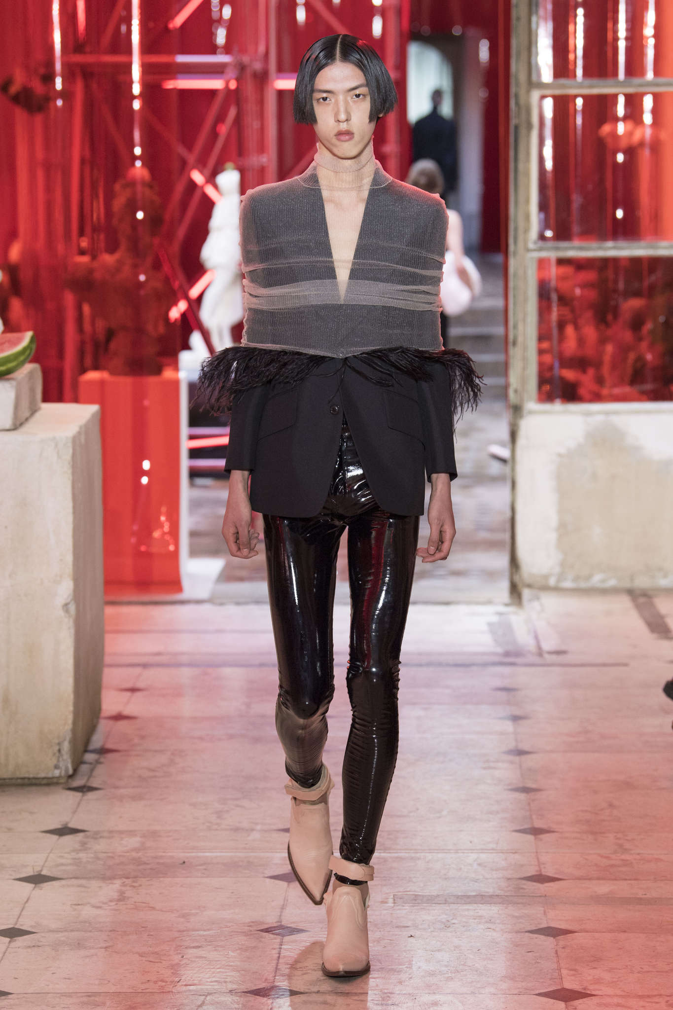 Au delà de cette opposition de classe, il faut également penser l’influence des subcultures et notamment des subcultures gay sur les tendances de cette saison. Cuir, résille et latex se sont mêlés au lin et au coton. Le jeu devient alors intéressant.