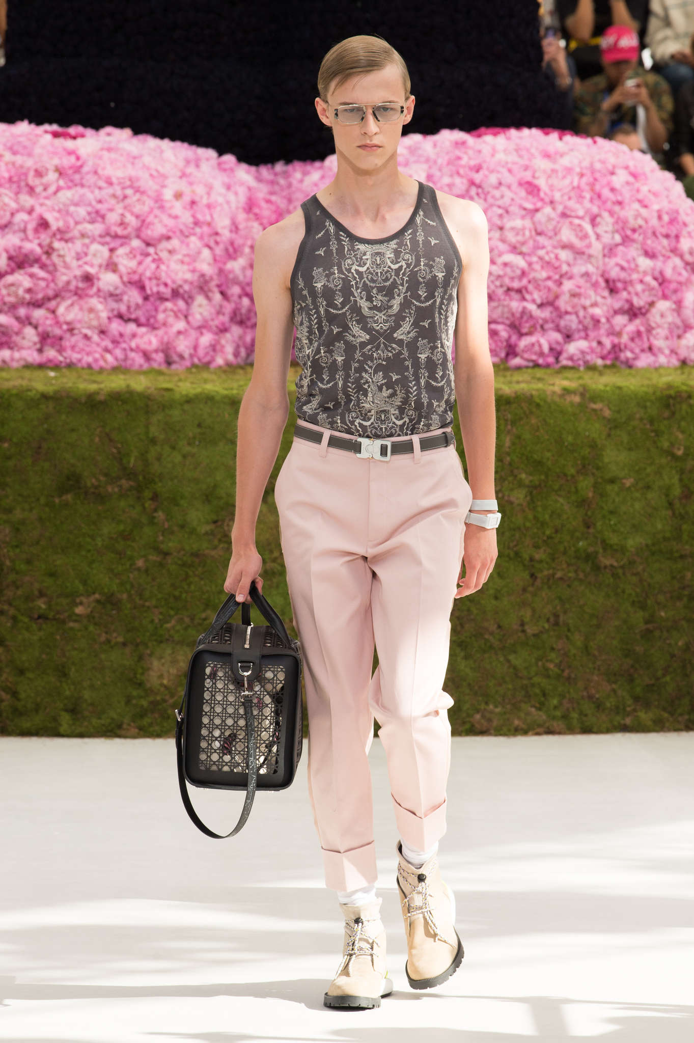- Un pantalon rose et des fleur : forcément masculin ? ou hommage à l’amour de Monsieur Dior pour les fleurs…