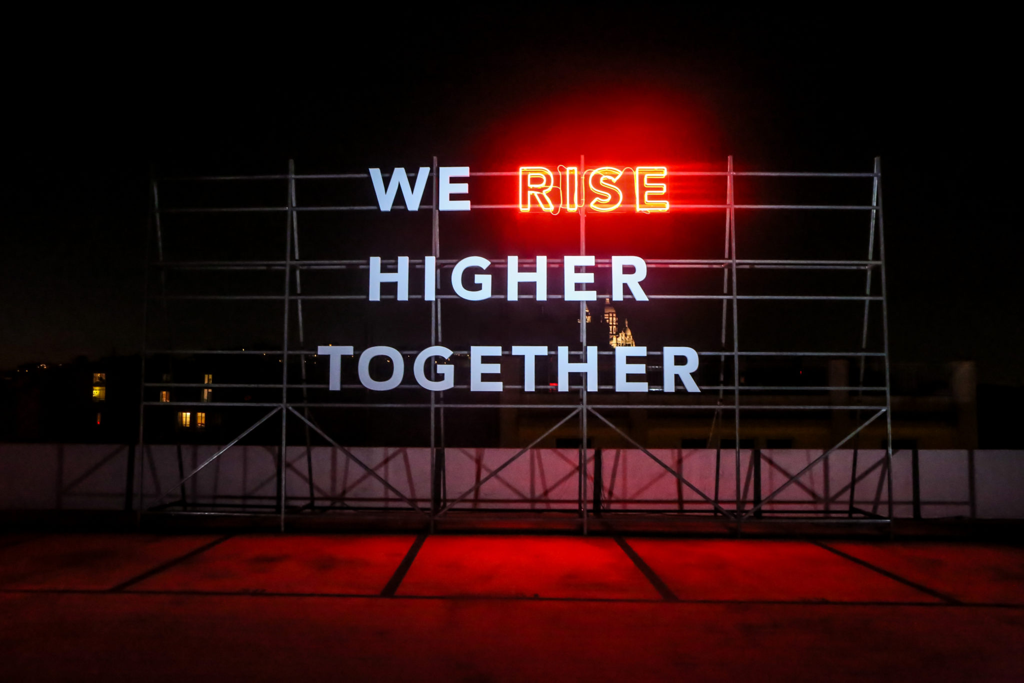 Entourée de ses 150 plus proches amis et clients, elle prend de la hauteur afin de les remercier et révèle, en avant-première, les évolutions de l’agence. Always more!