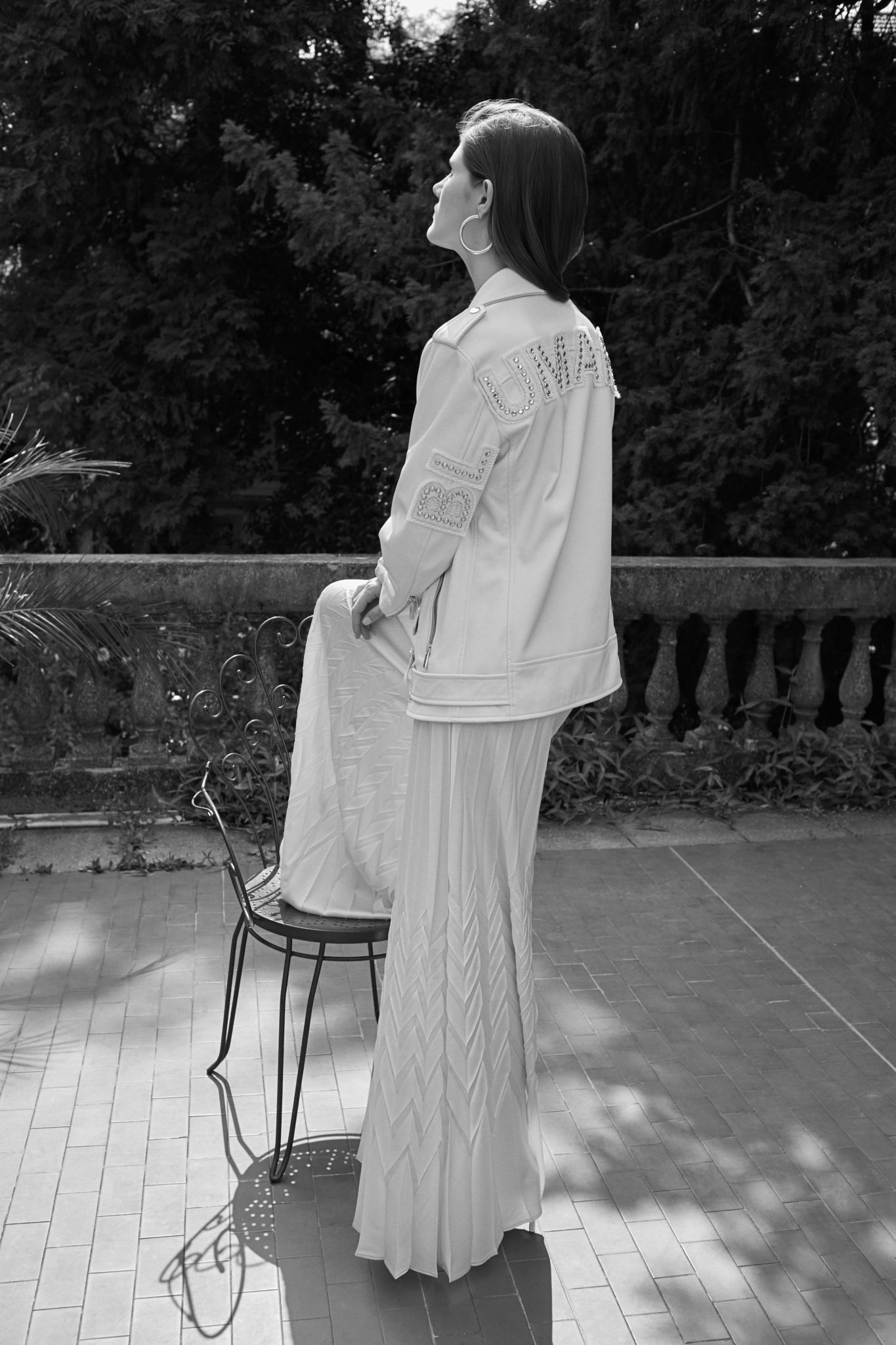 La femme Blumarine fait escale à Ibiza; curieuse et un peu gipsy, elle est prête à s’envoler pour suivre ses rêves. L’esprit folk et le souci du détail; un ruban noué à la taille du jean, des cristaux Swarovski brodés sur un sweatshirt, imprimé motifs bandana aux robes longues en crochet. Pour la nuit, elle semble bercée d’un romantisme et d’une légère twistée ; son look, les robes style lingerie fluides