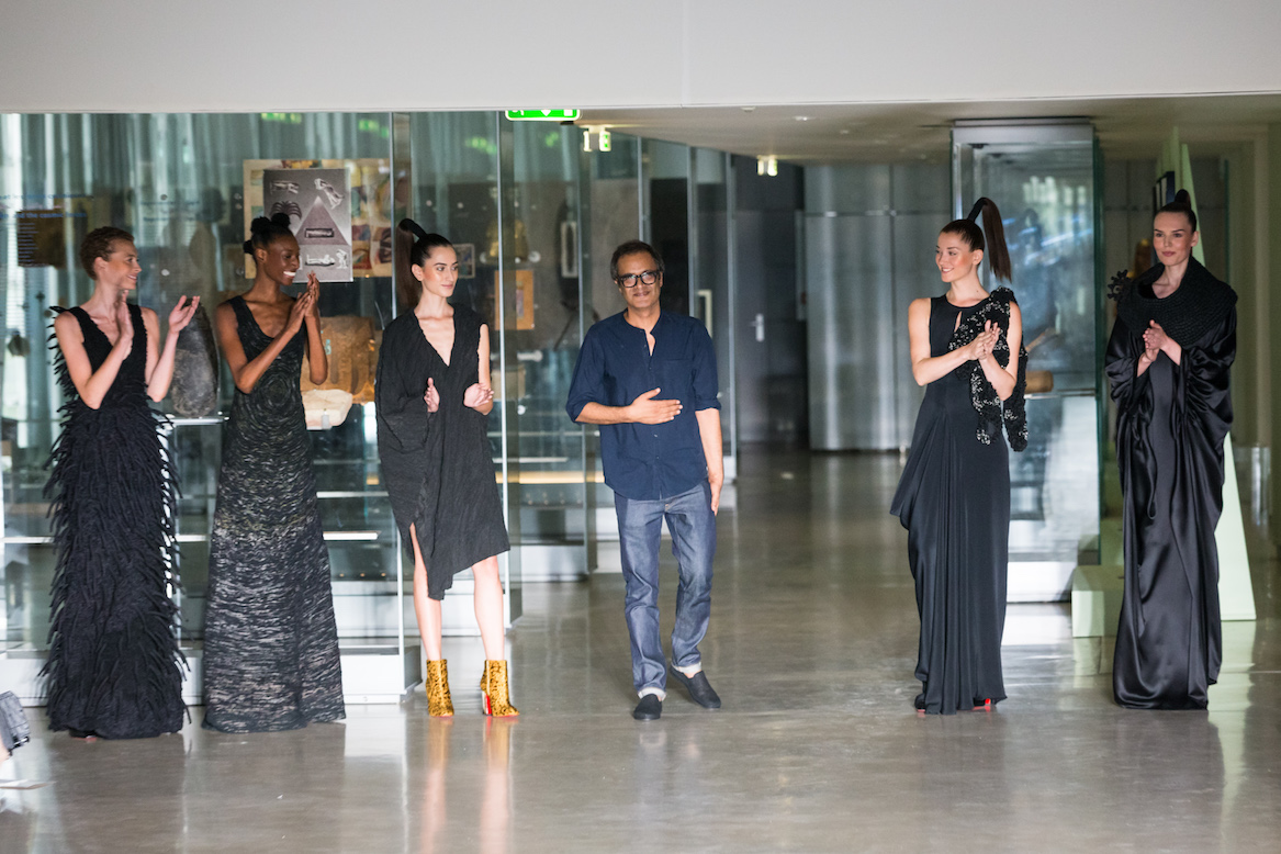 Une collection biopolitique ou bioéthique? Pour son retour sur les podiums haute-couture Maurizio Galente décide de travailler au carrefour des savoirs-faire- notamment en invitant une association d’aide aux enfants précaires (AMESIP). Intitulée “Rabat Cipango. Carnet de Voyage”, cette collection colorée souligne la richesse des hybridations culturelles. Après 13 ans à l’ombre des podiums, le créateur Franco-Italien fait un éloge à la lenteur. La femme se confond à une tige de blé, ou un brin d’herbe. Soit des éléments du décors, encore pures, encore intacts. Des éléments qui ne sont pas souillés par la technique et ses pesticides. En 2018 la femme passe de vénale à végétale ? Si la nature se détériore, il semble qu’il soit du rôle de la femme de l’entretenir. En 2018, Maurizio Galante ne choisit pas de la grimer en ménagère bonne jardinière, et remonte à quelque chose de plus ancien. Un temps ou la représentation de la femme en déesse de la nature était synonyme de pouvoir et non de domesticité.