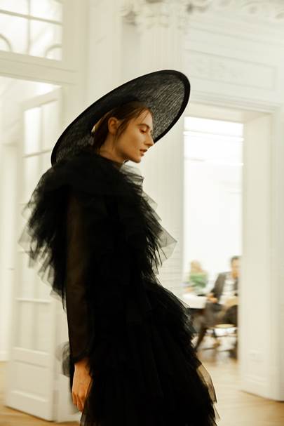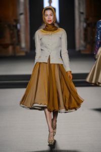 Du satin, du poudré, et des plumes : comme une parure rassurante face à un futur imprévisible. Un futur sans Paris, un futur sans argent ? Chanel, rend hommage à l’élégance Chanel. Celle de Coco, des années 20, de l’entre deux guerres. Un instant d’émancipation avant que Gabrielle ne doive plier boutique. Cette saison la haute-couture se répète à elle-même : oui je suis parisienne. Le socle de la haute-couture et ici, et il ne faudrait pas que les choses changent. Si pour une partie fortunée de la population la crise économique est dépassée, le profil des acheteurs a muté, et ce plus rapidement que les maisons de couture. Le retour de la haute-couture à l’élégance des années 20 peut se lire comme un refuge. Une période pleine d’ambivalences : » une simplification des vêtements liée à une nouvelle liberté, de nouvelles responsabilités professionnelles (…) mais également des exigences de 1918 qui imposent aux femmes le retour à la maison et à leur rôle d’épouses et de mères, l’entre-deux-guerres oscille entre l’énergie débordante et l’explosion de liberté des années folles, et le retour à un certain classicisme de formes durant les années 1930 » selon l’historienne Sophie Kurkjian. Le couplet petits métiers parisiens, élégantes passantes aux robes en dessous du genou: un chant rassurant entonné avec fougue par un Paris incertain. Le luxe n’est plus son monopole. Alors le passé devient un refuge et une réification de son aura : rien de nouveau à cela. Le passé auquel la couture se réfère informe des peurs du présent. Le sportwear, la vitesse technologique, la place des femmes ( de classes sociales nouvelles, de pays non Made in France) dans la sphère public, l’accès du luxe à de nouveaux publics…La haute-couture est-elle si conservatrice ?