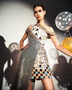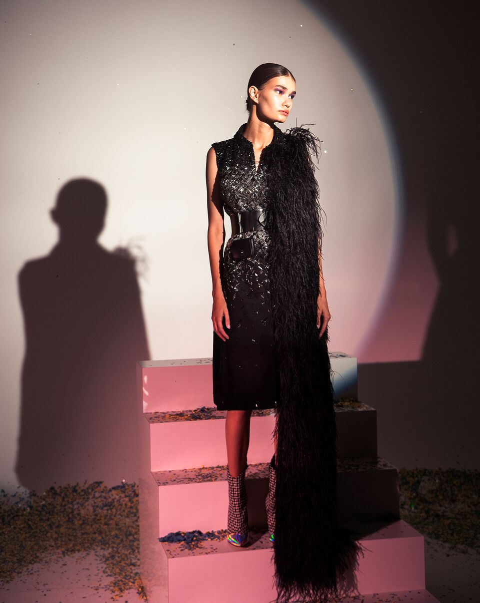 Un défilé qui questionne sur notre consommation des images. À l’heure ou le discours sur l’authenticité est devenu un doudou marketing réconfortant face à un monde qui se regarde via écran, Xuan propose de revenir à une époque dénuée d’écrans. La présentation tient de la performance : un dîner classique, ou les invités n’ont fort heureusement pas besoin de couverts. Ainsi ils ne lâchent pas leurs portables et dégustent chaque instant du défilé avec leurs followers. Au niveau des pièces, la collection explore de la garde-robe classique en la modernisant par des fleurs de tissus qui semblent tout droit inspirées de la réalité augmentée. Comme pour nous dire que ce monde d’écrans n’est pas un univers parallèle, mais une part de notre vie. Il change nos manières de nous vêtir, de dîner, mais aussi nos manières d’explorer le passé de la mode