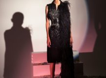 Après une dernière collection axée sur le sportwear, Rami Kadi explore un nouveau vestiaire.Le jeune libanais entre en collusion avec les préoccupations de la saison, mais pour des raisons totalement différentes. Il nous explique. »J’avais envie de travailler la veste masculine, de la découper, de la démonter pour en faire autre chose. Les motifs classiques pied- de-poule, vichy m’intéressent également. Je les aie travaillé avec de nouvelles techniques pour en faire les éléments d’une garde robe haute-couture moderne (…) On retrouve des éléments sportwear mais je ne me limite pas à cette inspiration ». Rami Kadi a su s’ extirper du classicisme du vestiaire féminin et l’a incorporé à son univers. Le travail apporté à chaque pièce pousse à l’admiration. Jeux de lumières, combinaison de plumes, de cuir et de néophrène « pour certaines pièces, ce sont 400 heures de travaux qui ont été requis ». Un bel hommage libanais à la haute-couture.